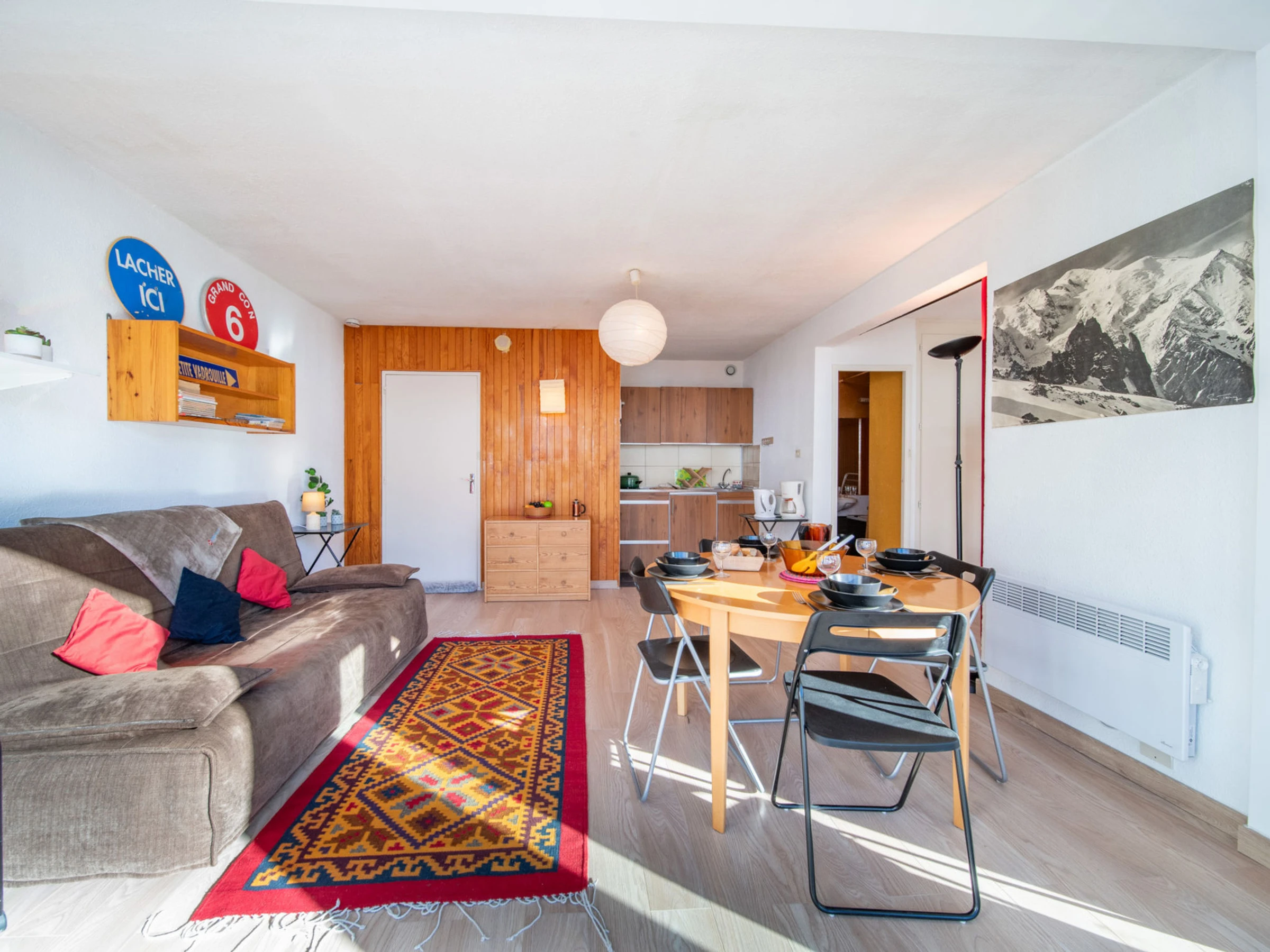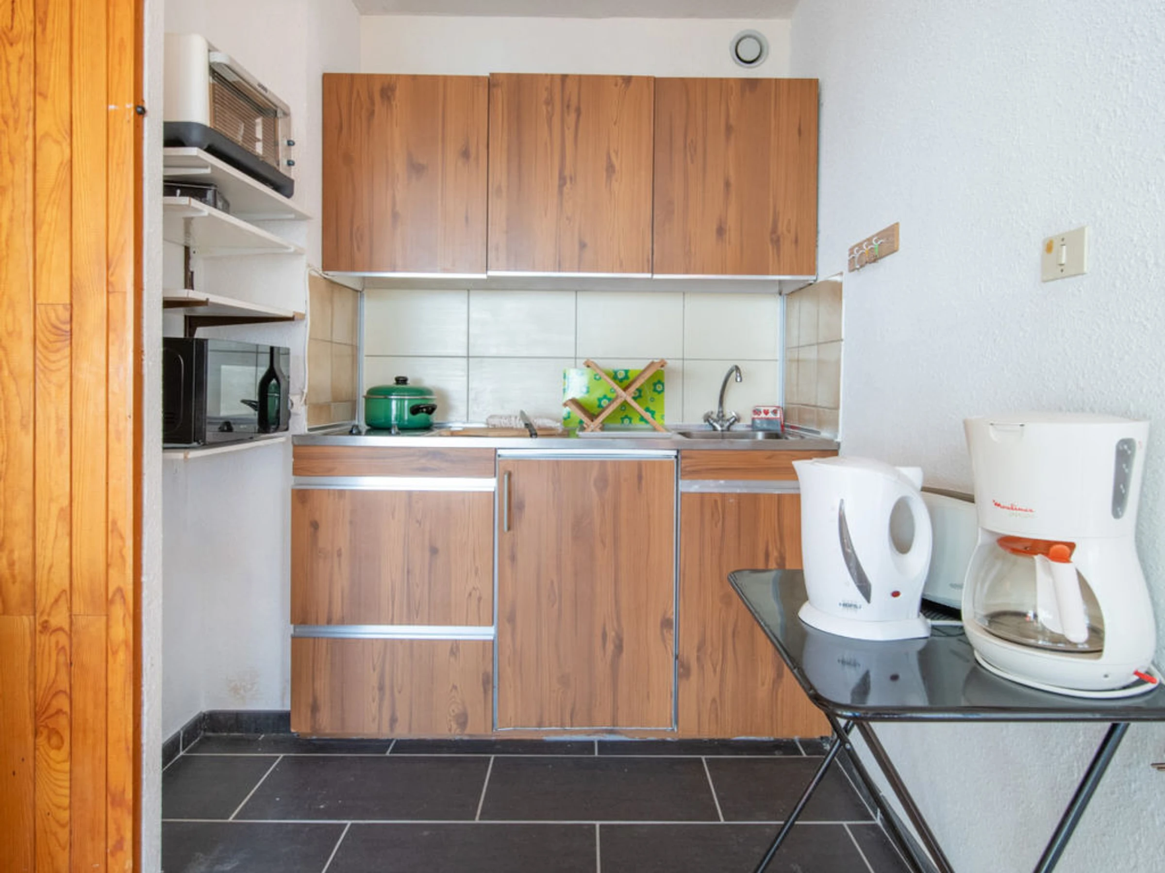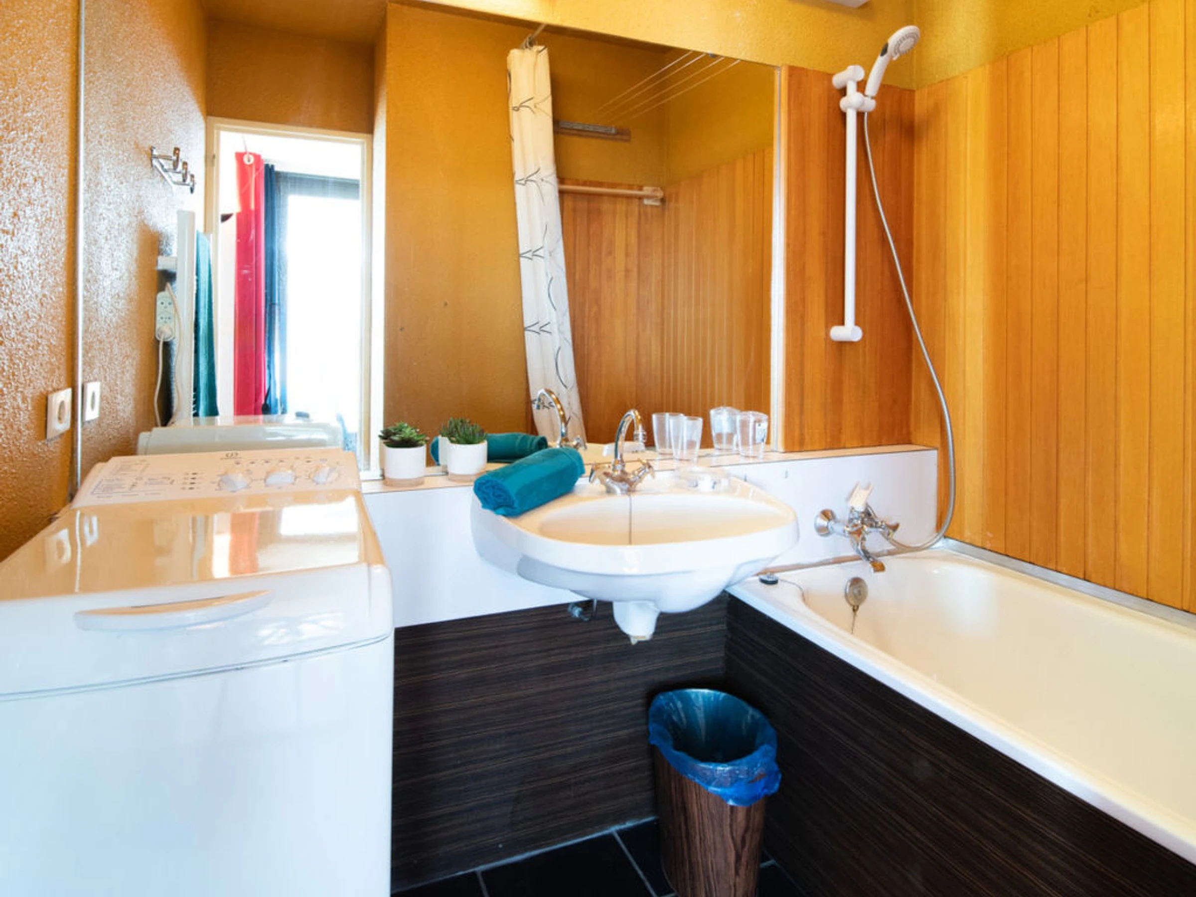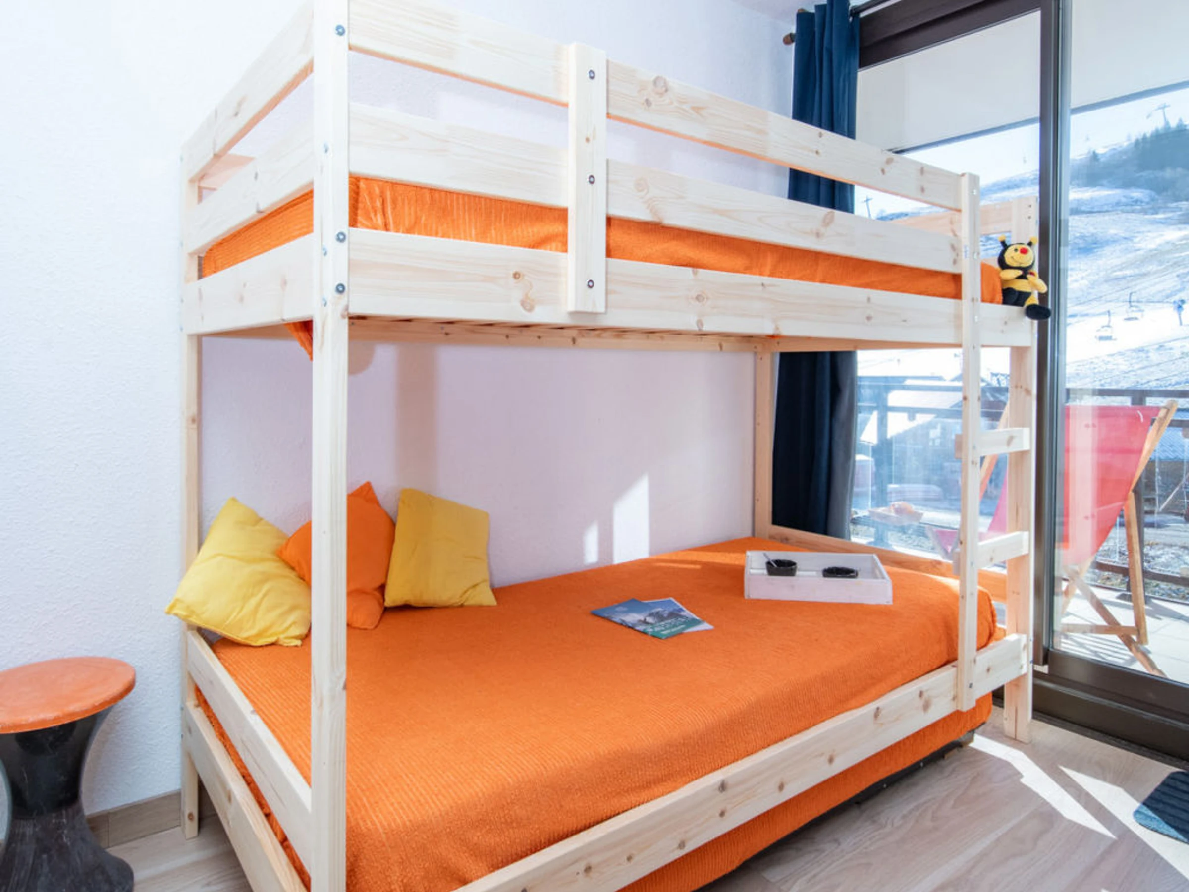 Estudio 34 m2 en el 3° piso. Con mobiliario sencillo: salón-dormitorio con 1 sofá-cama doble (140 cm, 190 cm de longitud), TV (pantalla plana). Salida al balcón. Rincón-dormitorio con cortina con 1 x 2 literas (90 cm, 190 cm de longitud). Rincón-cocina (horno, 2 placas de vitrocerámica, tostadora, hervidor de agua eléctrico, microondas, cafetera eléctrica). Baño. Calefacción eléctrica. Suelo de parquet. Balcón grande 10 m2, orientación sur. Vista bonita a la pista de esquí. El alojamiento dispone de: lavadora. Internet (Wifi, extra). A tener en cuenta: apartamento para no fumadores. Detector de humo. En lugar de un dormitorio cerrado, algunos espacios para dormir están situados en una zona diáfana (galería, alcoba, etc.). Oferta de un particular según el art. 155, IV del CGI.