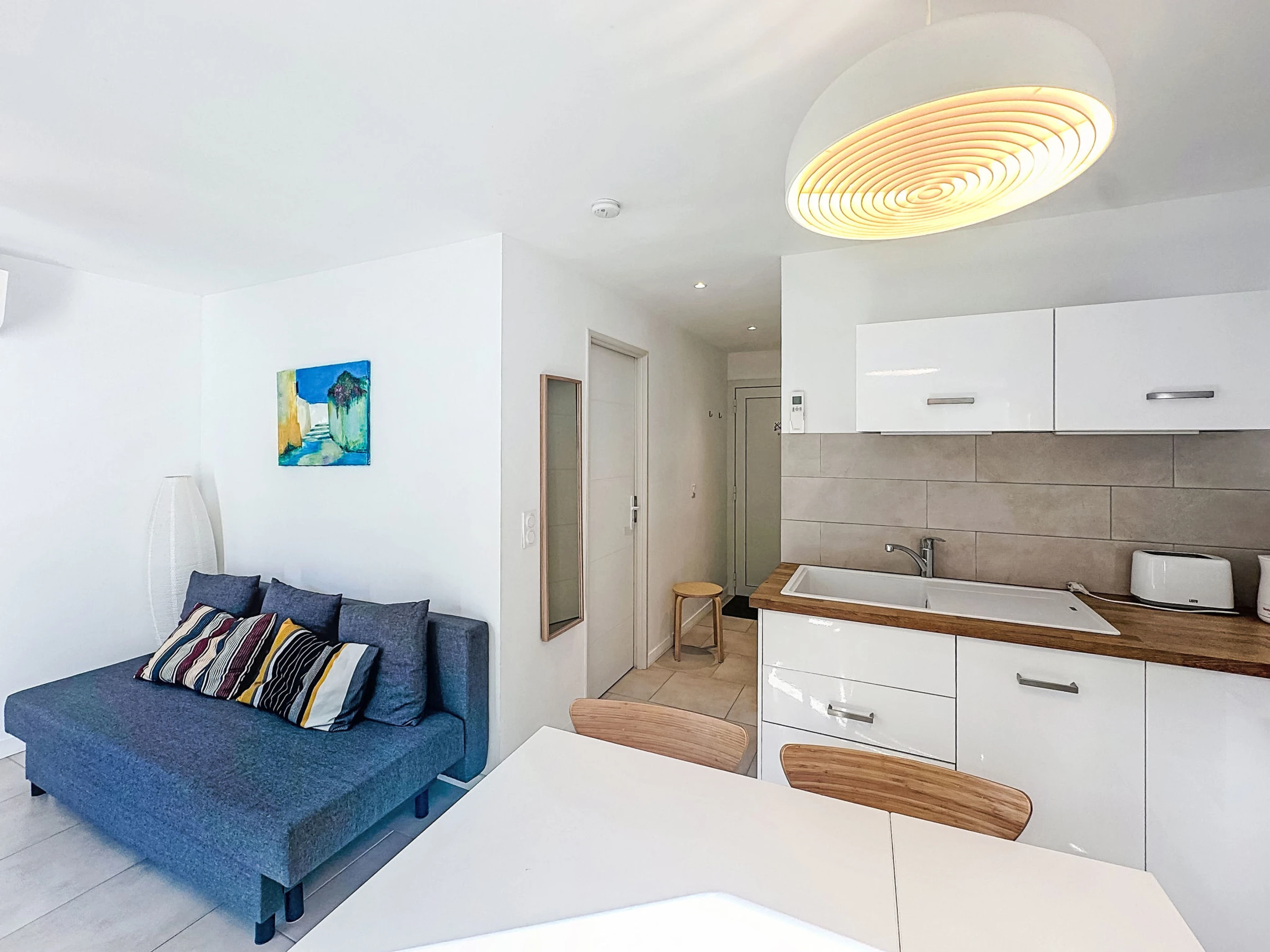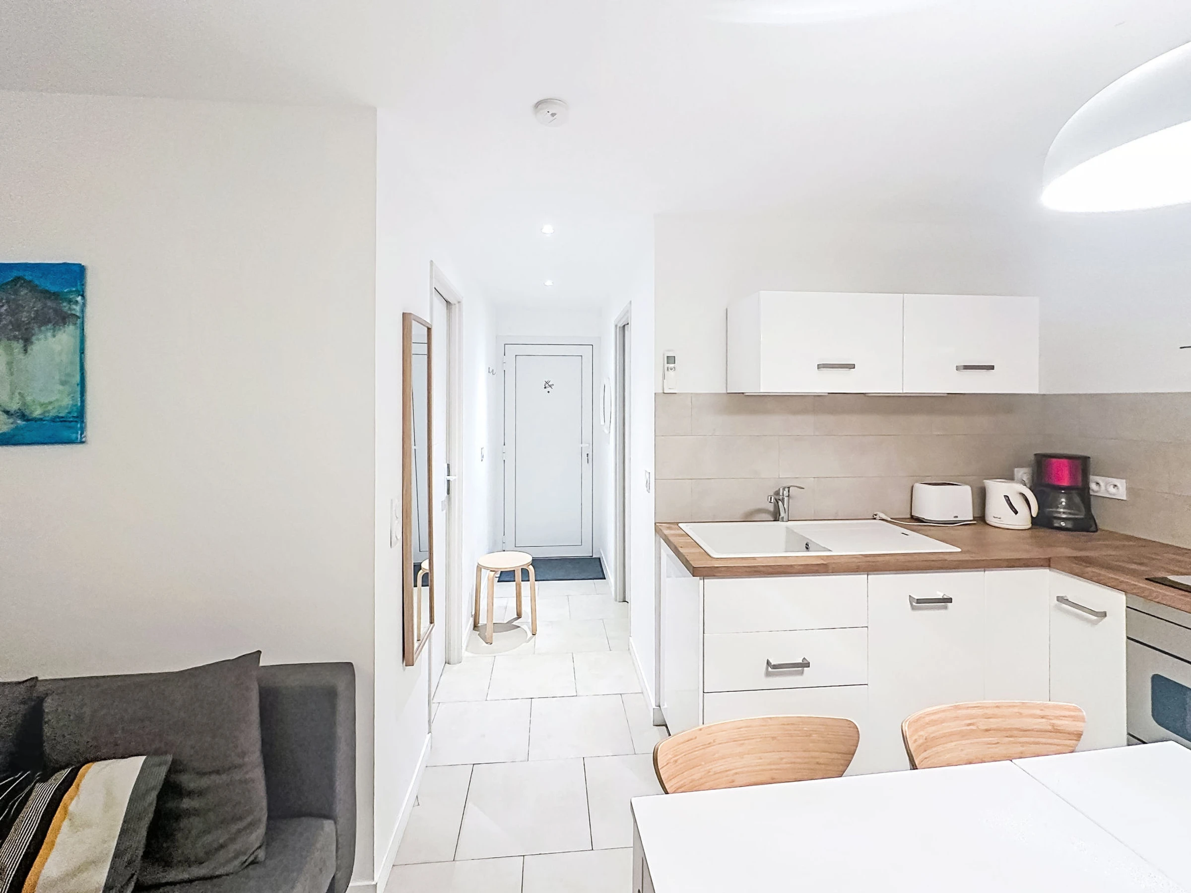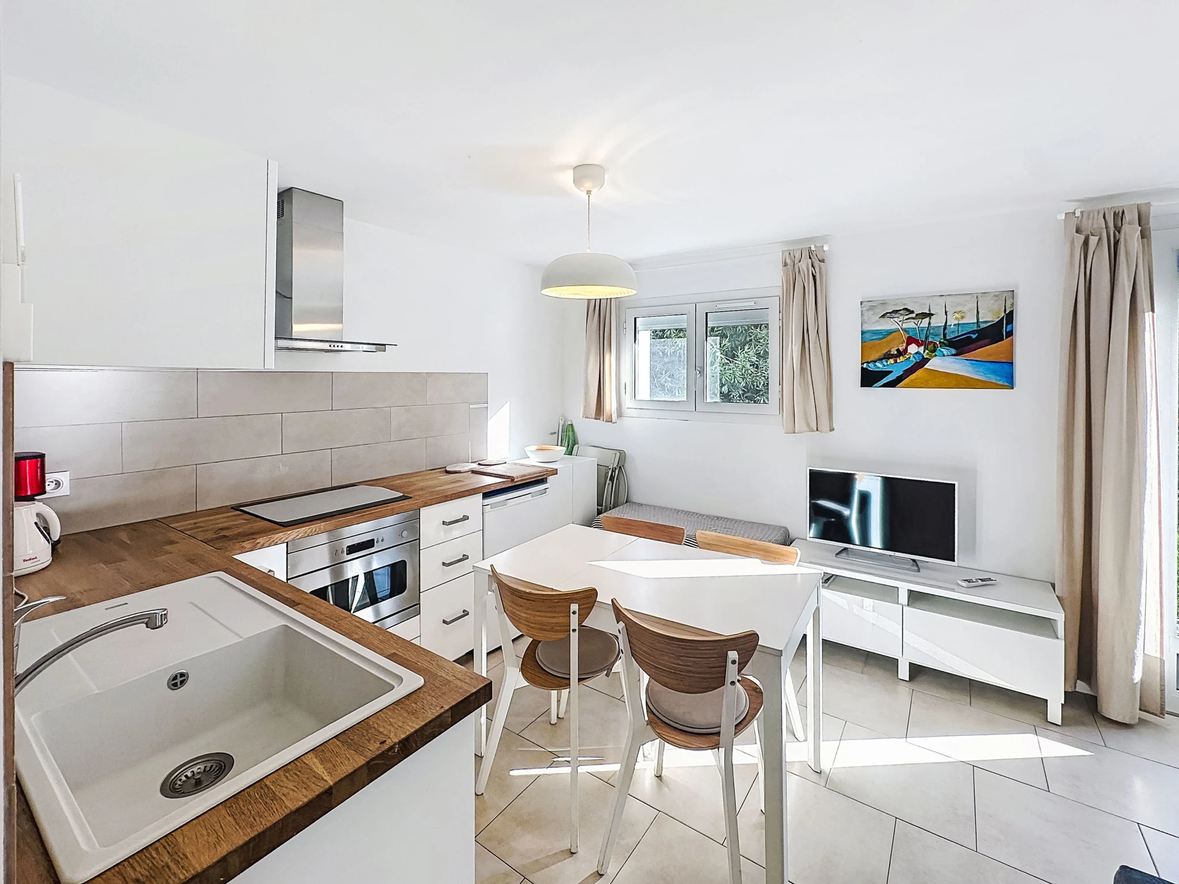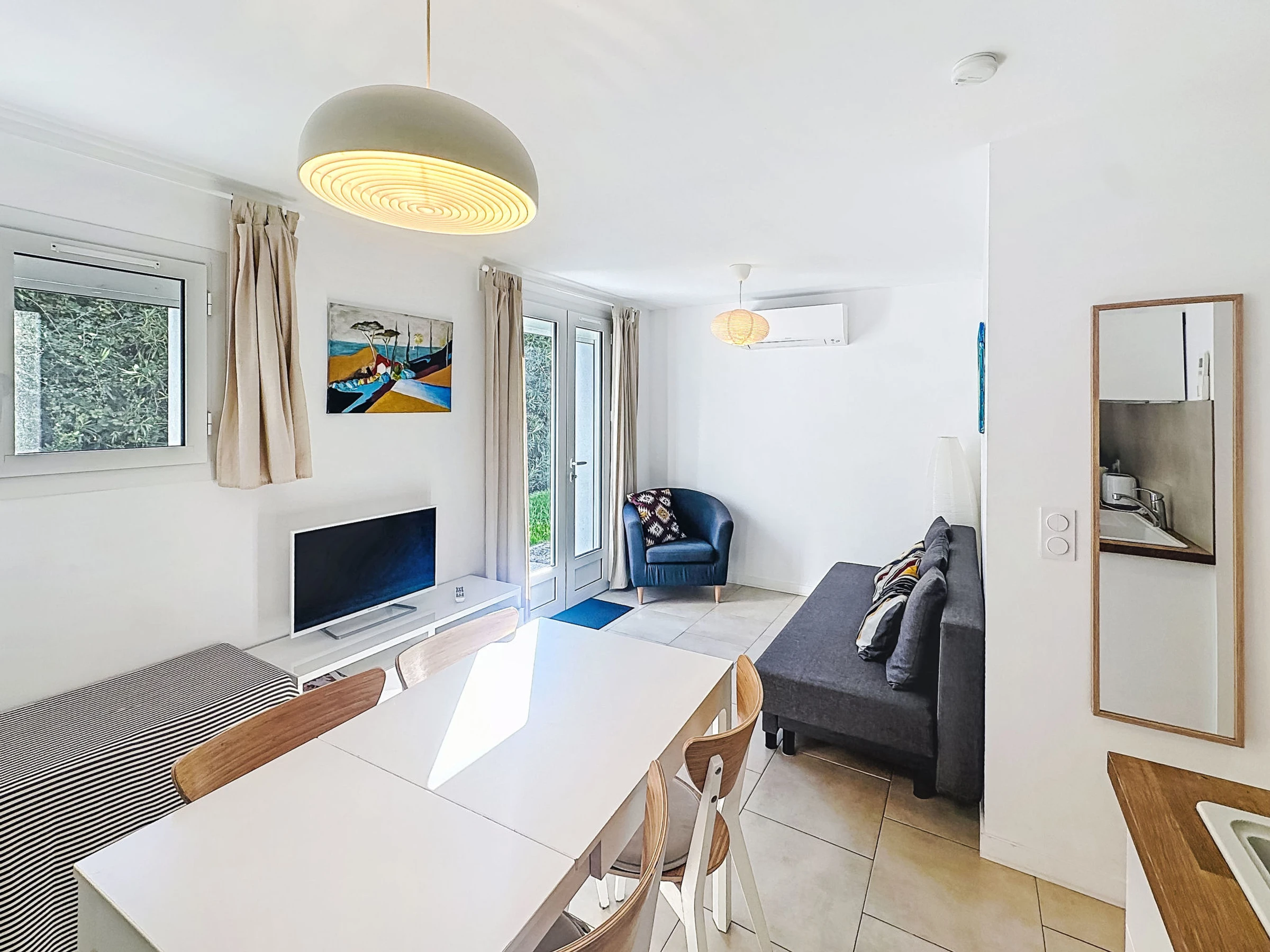 "Classé 3 étoiles", apartamento de 2 estancias 31 m2, en la planta baja, orientación noreste. Con mobiliario confortable: salón con 1 sofá-cama doble (140 cm, 190 cm de longitud), TV (pantalla plana), aire acondicionado. Salida al jardín. 1 dorm. con 1 cama de matrimonio (140 cm, 190 cm de longitud), aire acondicionado. Salida al jardín. Rincón-cocina (lavavajillas, 4 Placas de inducción, tostadora, hervidor de agua eléctrico, microondas, cafetera eléctrica) con mesa de comedor. Ducha/WC. Aire acondicionado. Terraza pequeña, orientación noreste. El alojamiento dispone de: lavadora, plancha, secador de pelo. Internet (Wifi, extra). A tener en cuenta: apartamento para no fumadores. TV solamente FR. Detector de humo. Oferta de un particular según el art. 155, IV del CGI. [hidden]