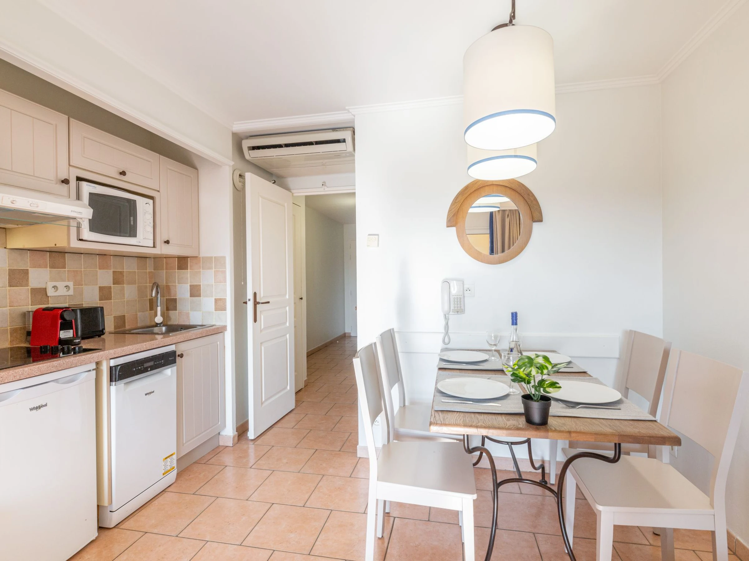 Apartamento de 2 estancias 27 m2 en el 3° piso, orientación suroeste. Luminoso, con mobiliario bonito y agradable: salón-comedor con 1 sofá-cama (140 cm, 190 cm de longitud), TV (pantalla plana). Salida a la terraza. 1 dorm. con 1 cama doble (1 x 140 cm, 190 cm de longitud). Cocina abierta (lavavajillas, 4 placas de vitrocerámica, tostadora, hervidor de agua eléctrico, cafetera eléctrica, microondas/grill). Baño, WC separado. Calefacción, aire acondicionado. Terraza 8 m2. Muebles de terraza. Vista bonita al mar y a la piscina. El alojamiento dispone de: lavadora. Internet (Wifi, extra). Plaza de aparcamiento, altura 190 cm, ancho 250 cm. A tener en cuenta: apartamento para no fumadores. Permitido máximo 1 mascota / perro. Detector de humo. [hidden]