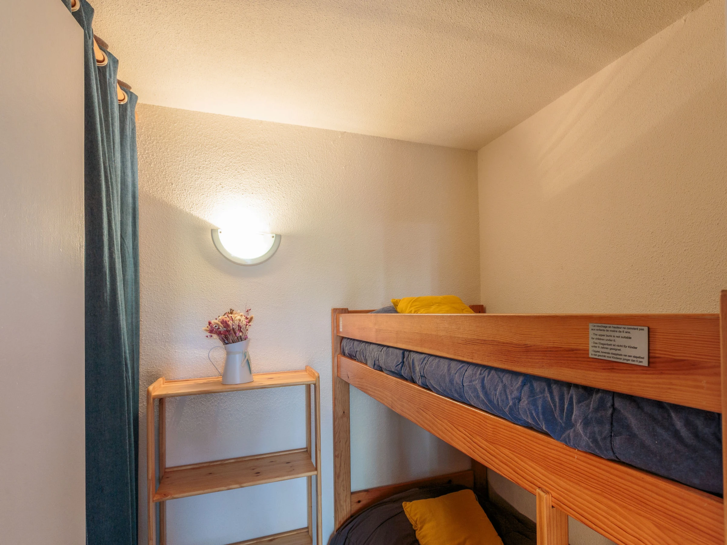 Apartamento de 2 estancias 28 m2, en la planta baja, orientación este. Salón-comedor con TV (pantalla plana). Salida a la terraza. 1 dorm. con 1 cama de matrimonio (140 cm, 190 cm de longitud). Cabina con 1 x 2 literas (90 cm, 190 cm de longitud). Rincón-cocina (horno, 2 placas de vitrocerámica, tostadora, hervidor de agua eléctrico, microondas, cafetera eléctrica). Ducha, WC separado. Calefacción eléctrica. Muebles de terraza. El alojamiento dispone de: Internet (Wifi, extra). Plaza de aparcamiento. A tener en cuenta: 1 mascota pequeña / perro. Detector de humo. En lugar de un dormitorio cerrado, algunos espacios para dormir están situados en una zona diáfana (galería, alcoba, etc.). Oferta de un particular según el art. 155, IV del CGI.