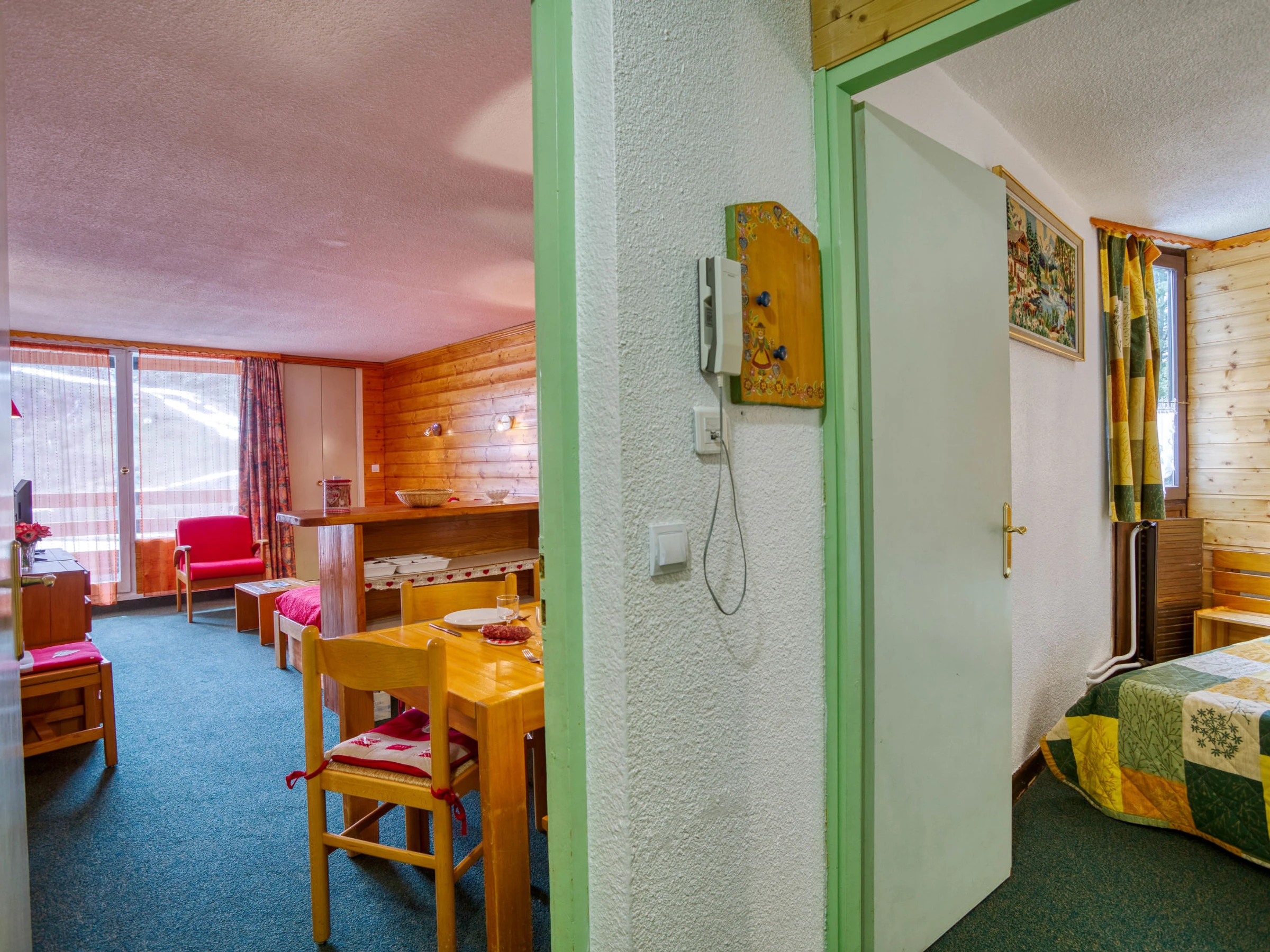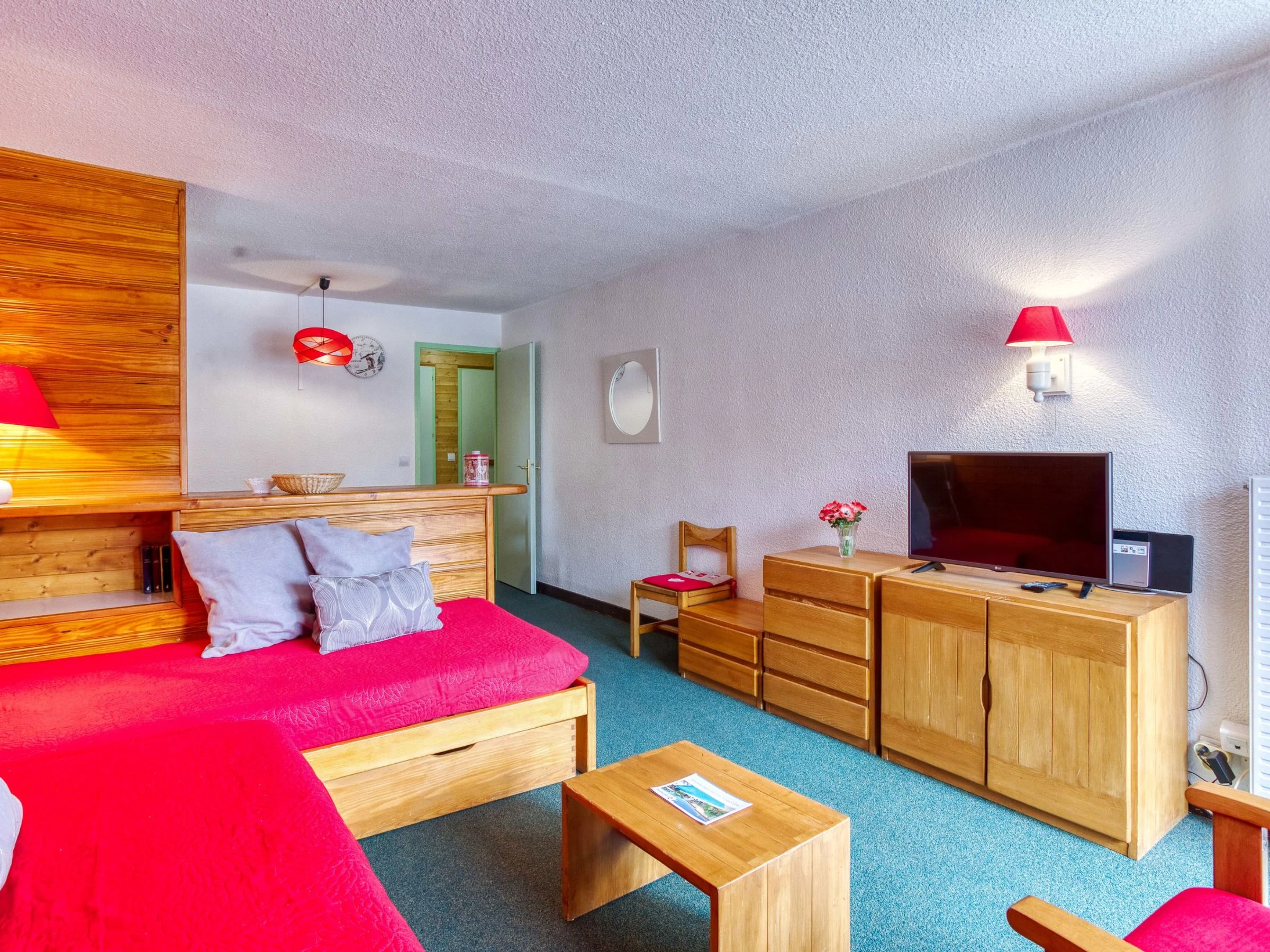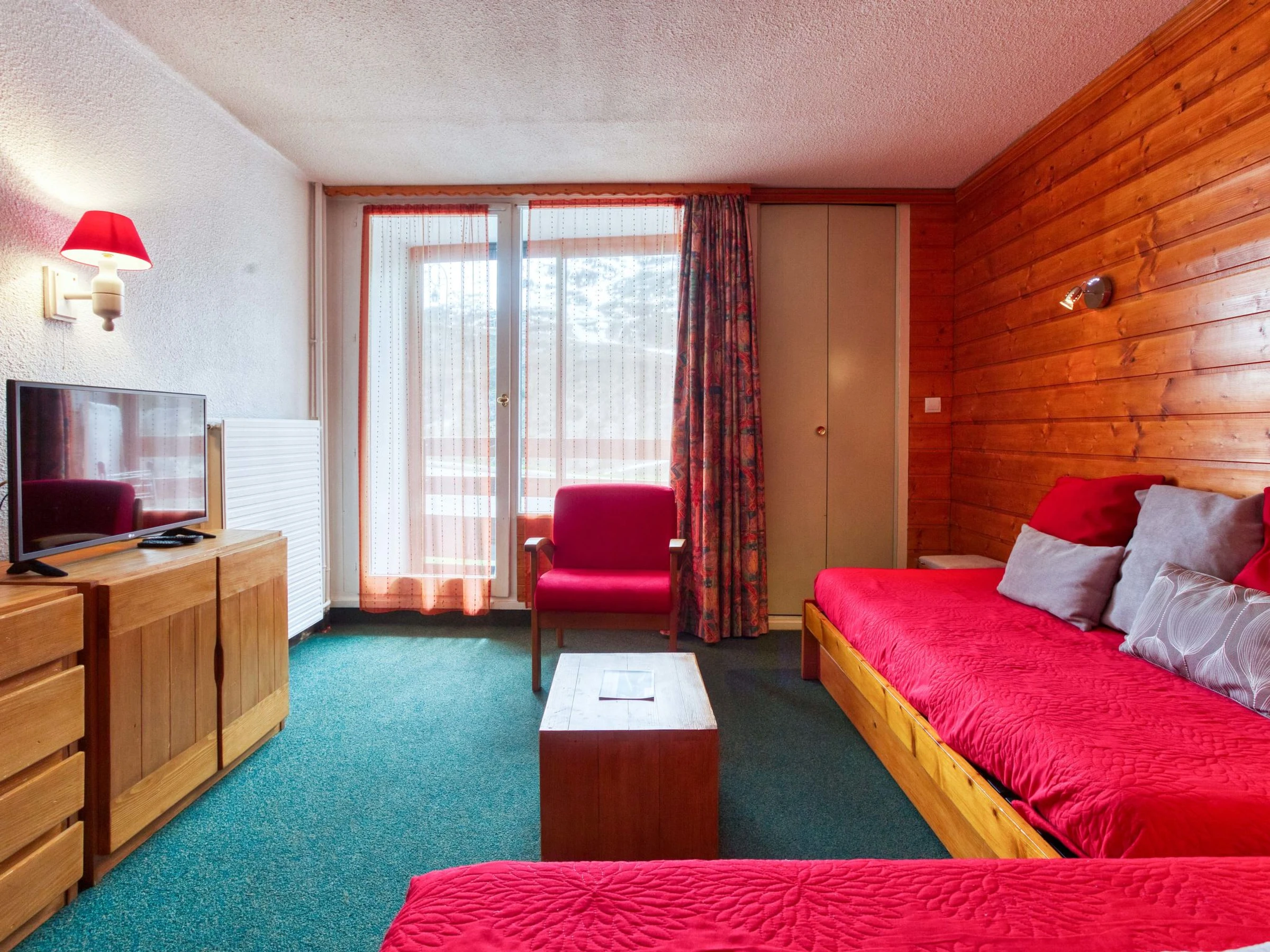 "Chanteneige 201", apartamento de 2 estancias 45 m2 en el 2° piso, orientación suroeste. Con mobiliario confortable y bonito: salón-comedor grande con 1 cama (90 cm, 190 cm de longitud), 1 cama-nido (2 pers. 2 x 90 cm, 190 cm de longitud), TV (pantalla plana). 1 dorm. con 2 camas (90 cm, 190 cm de longitud). Pequeña cocina (horno, lavavajillas, 4 placas de vitrocerámica, hervidor de agua eléctrico, microondas, cafetera eléctrica). Baño, WC separado. Porche. Vista bonita a las montañas. El alojamiento dispone de: lavadora. Internet (Wifi, extra). A tener en cuenta: apartamento para no fumadores. Detector de humo. [hidden]