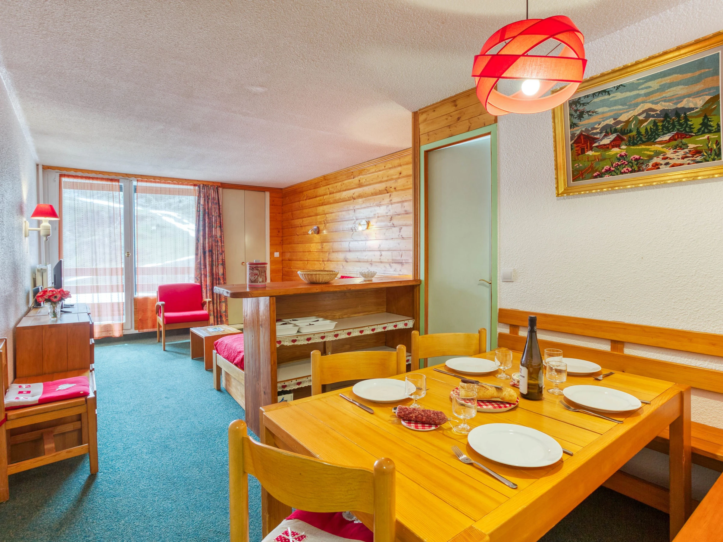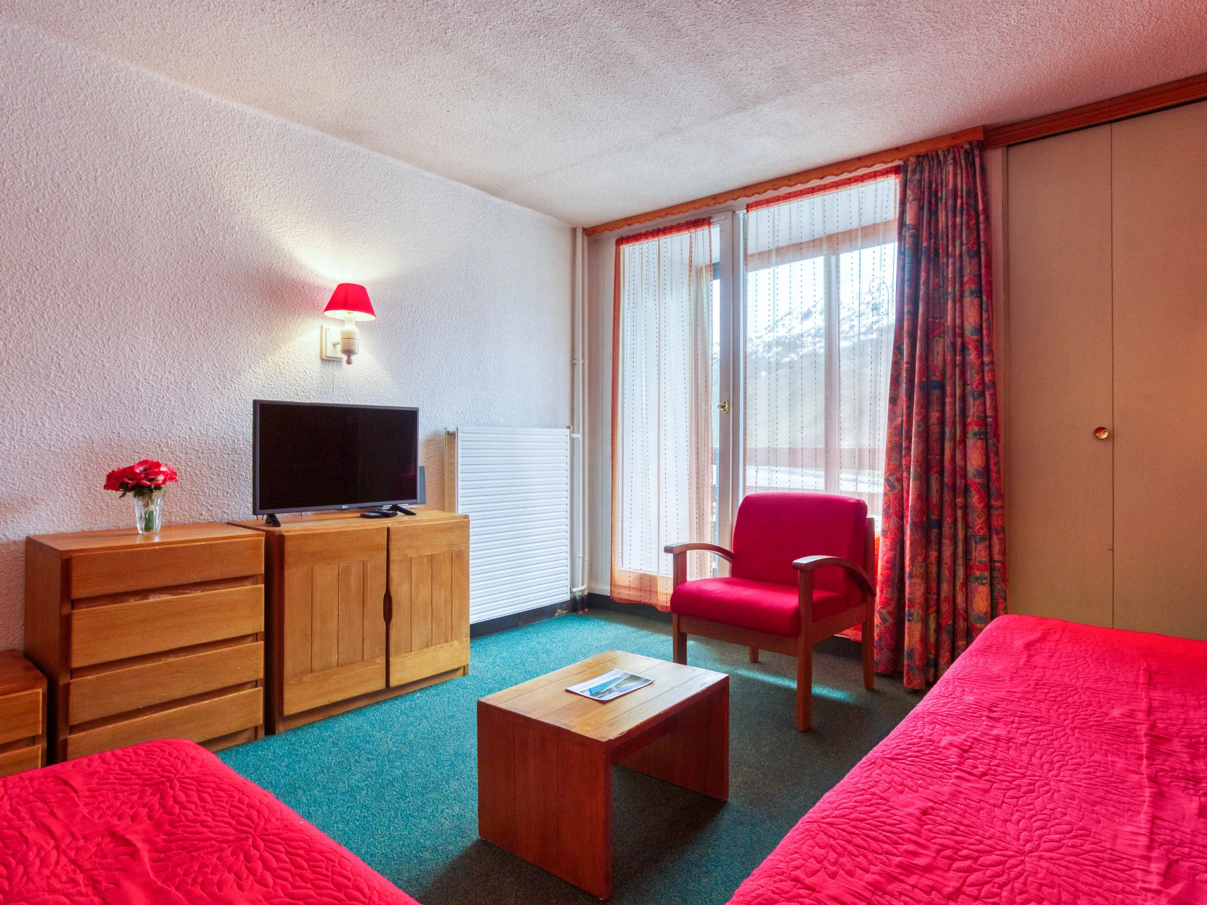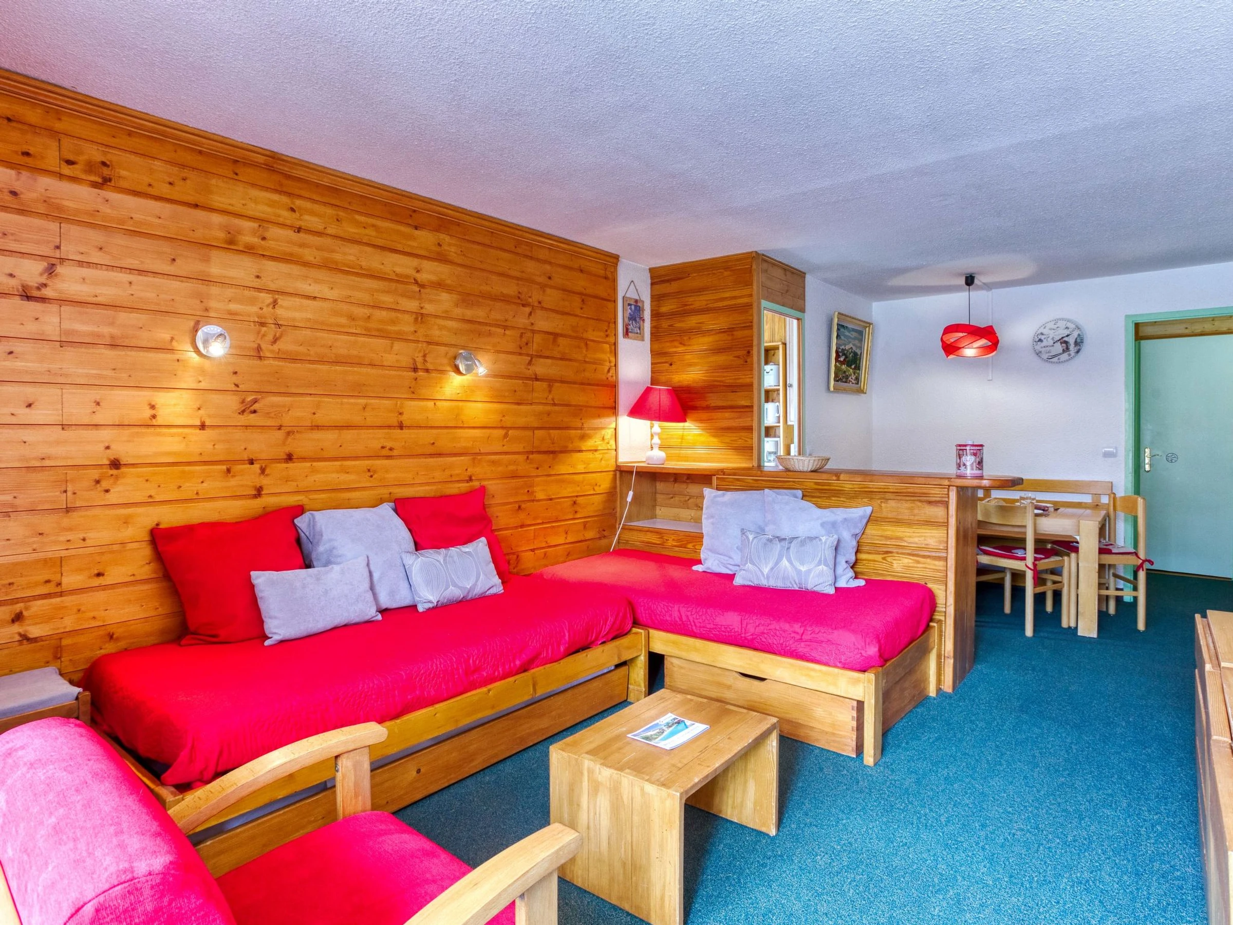 "Chanteneige 201", apartamento de 2 estancias 45 m2 en el 2° piso, orientación suroeste. Con mobiliario confortable y bonito: salón-comedor grande con 1 cama (90 cm, 190 cm de longitud), 1 cama-nido (2 pers. 2 x 90 cm, 190 cm de longitud), TV (pantalla plana). 1 dorm. con 2 camas (90 cm, 190 cm de longitud). Pequeña cocina (horno, lavavajillas, 4 placas de vitrocerámica, hervidor de agua eléctrico, microondas, cafetera eléctrica). Baño, WC separado. Porche. Vista bonita a las montañas. El alojamiento dispone de: lavadora. Internet (Wifi, extra). A tener en cuenta: apartamento para no fumadores. Detector de humo. [hidden]