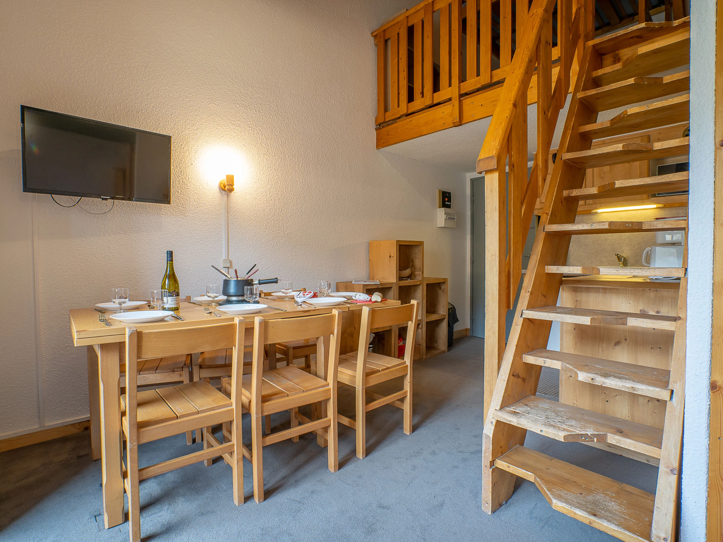 "Jettay Choucas 127", apartamento de 3 estancias 50 m2 en 2 plantas en el 2° piso. Salón-comedor con TV (pantalla plana). Salida al balcón. 1 dorm. con 1 sofá-cama doble (1 x 140 cm, 190 cm de longitud). Rincón-cocina (horno, lavavajillas, 2 placas de vitrocerámica, microondas, cafetera eléctrica). Baño, WC separado. Calefacción. Planta superior: 1 dorm. con 1 cama de matrimonio (140 cm, 190 cm de longitud). Altillo con 1 cama-nido (2 x 80 cm, 190 cm de longitud), WC separado. Balcón, orientación oeste. Vista bonita a las montañas. El alojamiento dispone de: secador de pelo. Internet (Wifi, extra). A tener en cuenta: permitido máximo 1 mascota / perro. Detector de humo. Atención: el altillo con cama de matrimonio es abuhardillado, accesible por una escala. Entrada Choucas. En lugar de un dormitorio cerrado, algunos espacios para dormir están situados en una zona diáfana (galería, alcoba, etc.). [hidden]