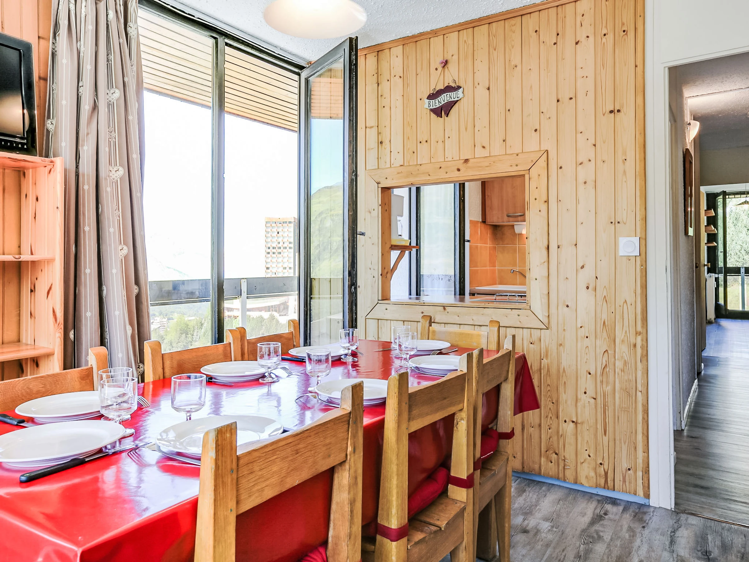 "Pelvoux 101", apartamento de 3 estancias 55 m2 en el 10° piso. Con mobiliario bonito: salón-comedor con 1 cama-nido (2 x 80 cm, 190 cm de longitud), TV (pantalla plana). Salida al balcón, orientación sur. 1 dorm. con 1 x 2 literas (80 cm, 190 cm de longitud). Salida al balcón, orientación norte. 1 dorm. con 1 cama (80 cm), 1 x 2 literas (80 cm). Salida al balcón, orientación norte. Pequeña cocina abierta (lavavajillas, 3 Placas de inducción, hervidor de agua eléctrico, cafetera eléctrica, horno Raclette, microondas/grill). Salida al balcón, orientación oeste. Baño, WC separado. Vista muy bonita a las montañas y a la pista de esquí. El alojamiento dispone de: secador de pelo. Internet (Wifi, extra). A tener en cuenta: permitido máximo 1 mascota / perro. Detector de humo. [hidden]