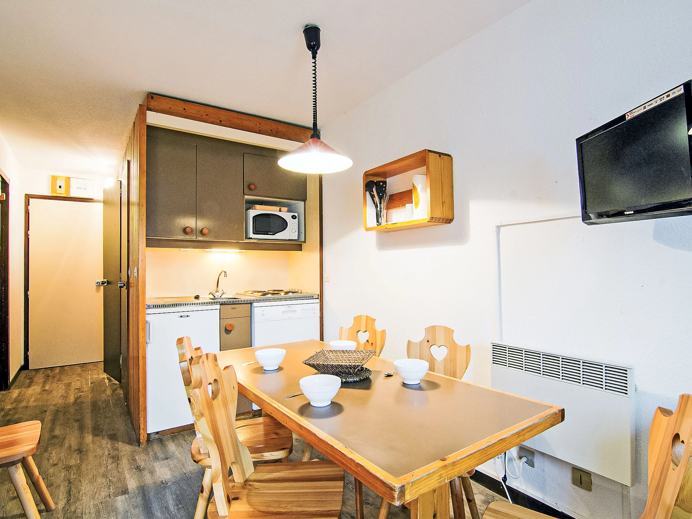 "Villaret 317", apartamento de 2 estancias 32 m2 en el 3° piso. Salón-comedor con 1 cama-nido (2 pers. 2 x 80 cm, 190 cm de longitud), TV (pantalla plana). 1 dorm. con puerta corredera con 1 cama de matrimonio (140 cm, 190 cm de longitud). Salida al balcón. Cabina con 1 x 2 literas (80 cm, 190 cm de longitud). Rincón-cocina (4 fogones, lavavajillas, hervidor de agua eléctrico, microondas, cafetera eléctrica). Ducha, WC separado. Calefacción eléctrica. Balcón, orientación este. Vista a la pista de esquí. El alojamiento dispone de: Internet (Wifi, extra). A tener en cuenta: permitido máximo 1 mascota / perro. Detector de humo. En lugar de un dormitorio cerrado, algunos espacios para dormir están situados en una zona diáfana (galería, alcoba, etc.). [hidden]