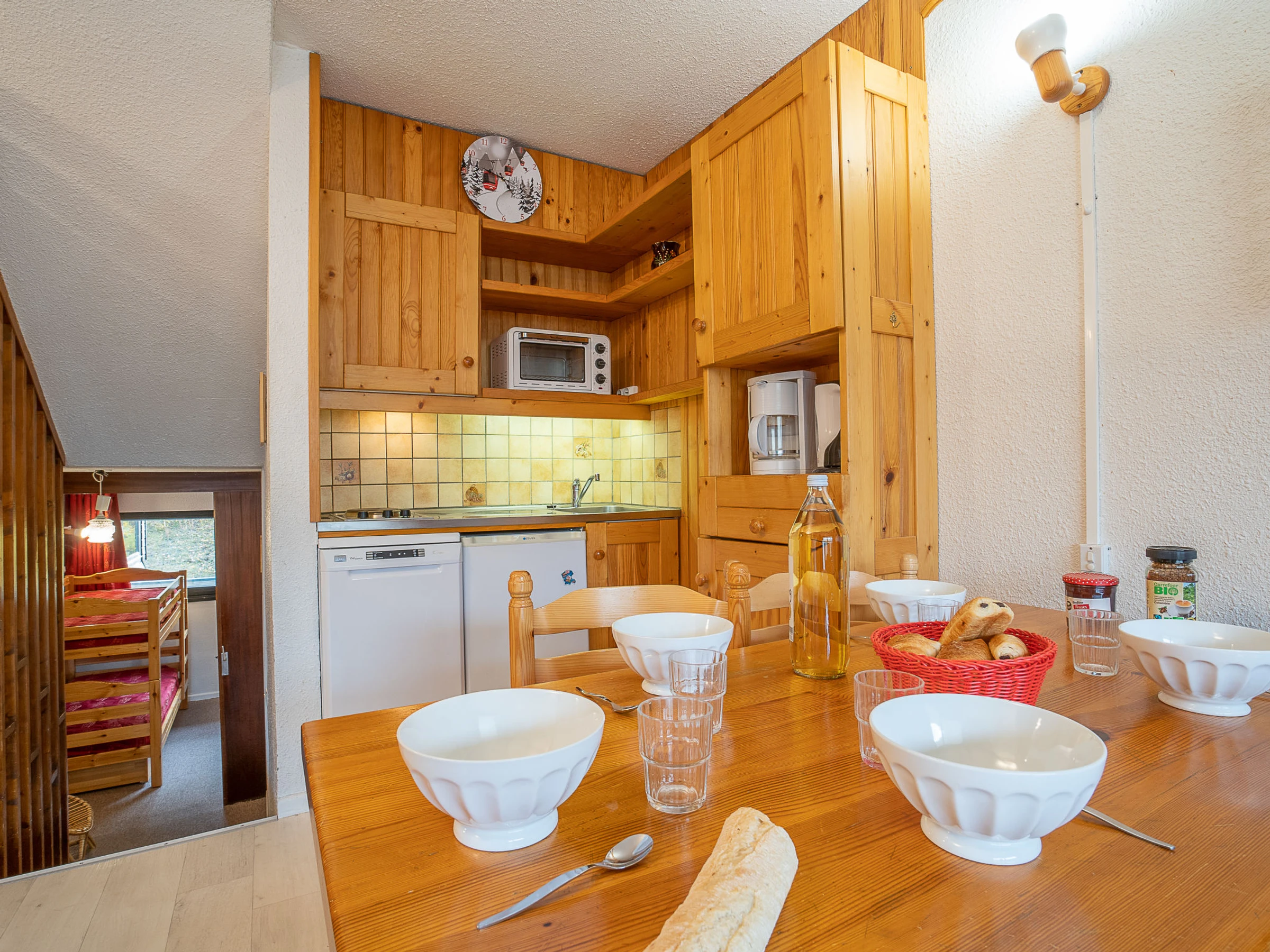 "Brelin Evons 409", apartamento de 2 estancias 39 m2 en 2 plantas. Salón-comedor con 1 cama-nido (2 pers. 2 x 90 cm, 190 cm de longitud), TV (pantalla plana). Salida al balcón. Rincón-cocina (2 fogones, horno, lavavajillas, microondas, cafetera eléctrica). En planta inferior: 1 dorm. con 1 x 2 literas (80 cm, 190 cm de longitud), 1 cama de matrimonio (140 cm, 190 cm de longitud). Baño/WC. Calefacción. Balcón, orientación sur. Vista muy bonita a las montañas y a la pista de esquí. El alojamiento dispone de: Internet (Wifi, extra). A tener en cuenta: permitido máximo 1 mascota / perro. Detector de humo. [hidden]
