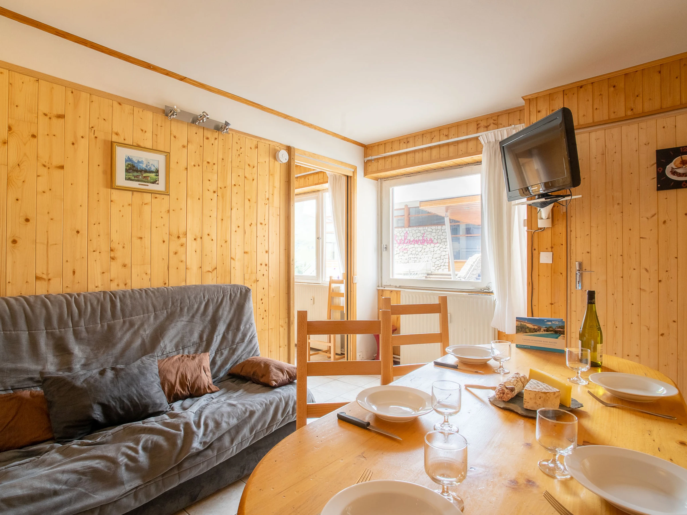 "Les Lauzes A1", apartamento de 2 estancias 31 m2, orientación oeste. Salón-comedor con 1 sofá-cama doble (140 cm, 190 cm de longitud), TV (pantalla plana). 1 dorm. con 1 cama (90 cm, 190 cm de longitud), 1 x 2 literas (90 cm, 190 cm de longitud), ducha/WC. Rincón-cocina en la entrada (4 fogones, lavavajillas, microondas, cafetera eléctrica, horno Raclette, set de Fondue (queso)). El alojamiento dispone de: Internet (Wifi, extra). A tener en cuenta: permitido máximo 1 mascota / perro. Detector de humo. [hidden]