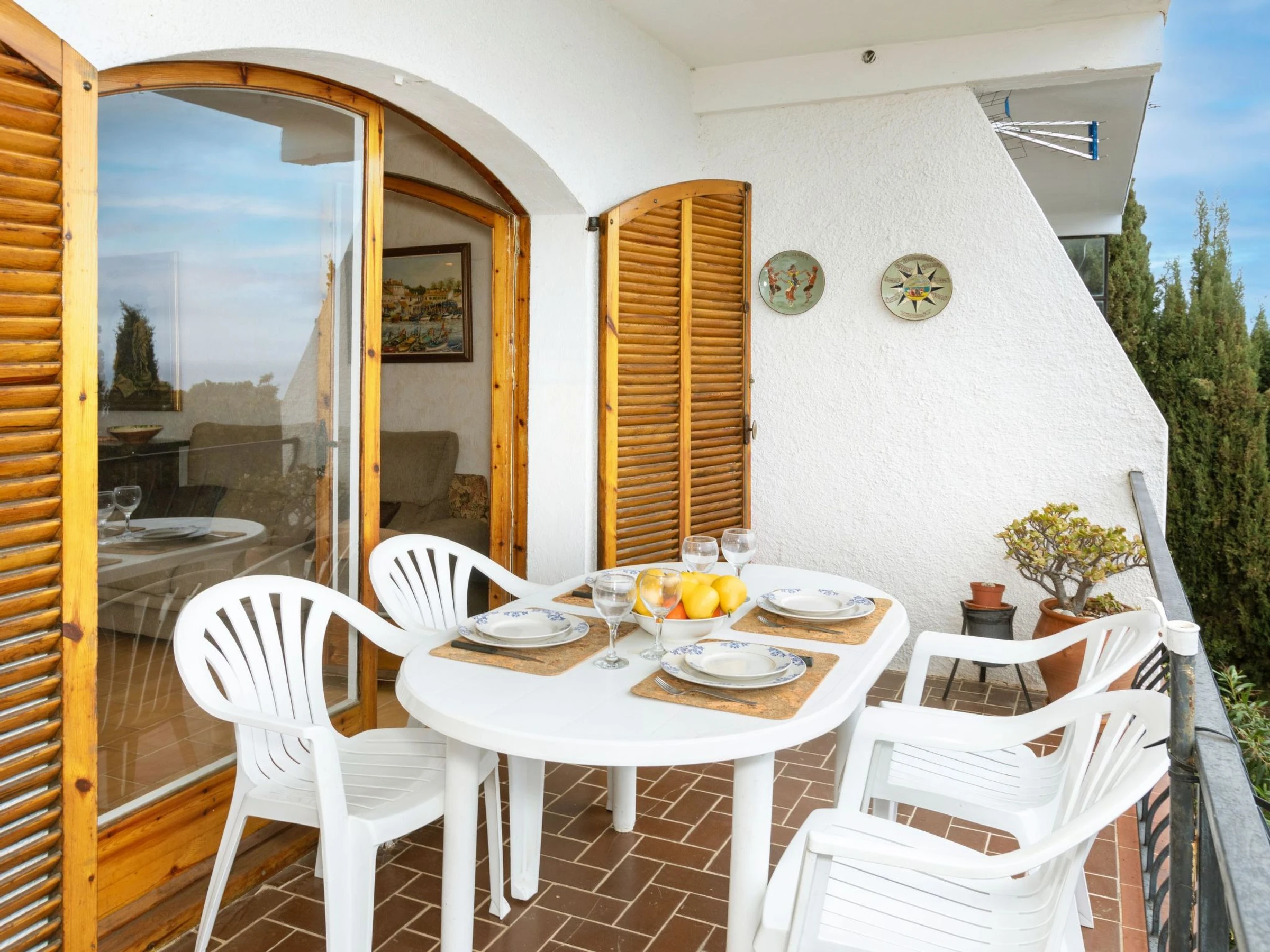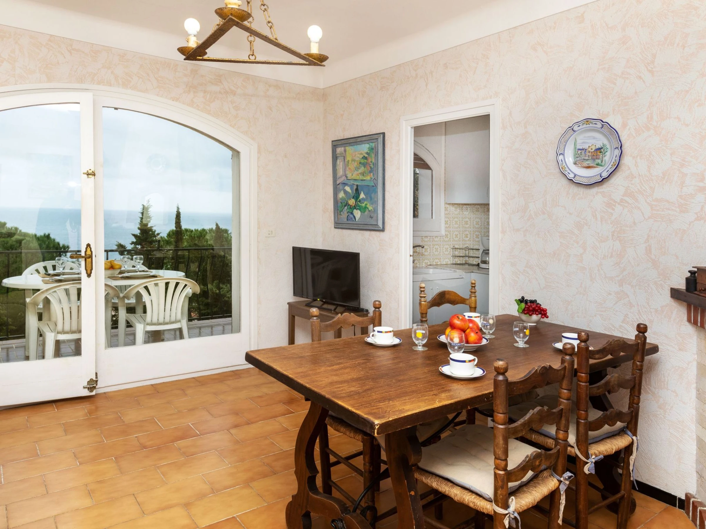 "Cathy", apartamento de 3 estancias 50 m2, en planta baja elevada. Con mobiliario sencillo y funcional: salón-comedor con mesa de comedor, TV digital y pantalla plana. Salida a la terraza. Cocina (horno, 3 placas de vitrocerámica, cafetera eléctrica, microondas/grill). Media bañera/WC. Planta superior: 1 dorm. con 1 cama de matrimonio (1 x 135 cm). 1 dorm. con 2 camas (90 cm). Terraza 12 m2. Muebles de terraza, tumbonas (3). Vista panorámica muy bonita al mar. El alojamiento dispone de: lavadora. A tener en cuenta: permitido máximo 1 mascota / perro. TV solamente ES, FR. Sin ascensor. [hidden] // Reg. Nr.: ESFCTU00001702000028622800000000000000000[hidden]7
