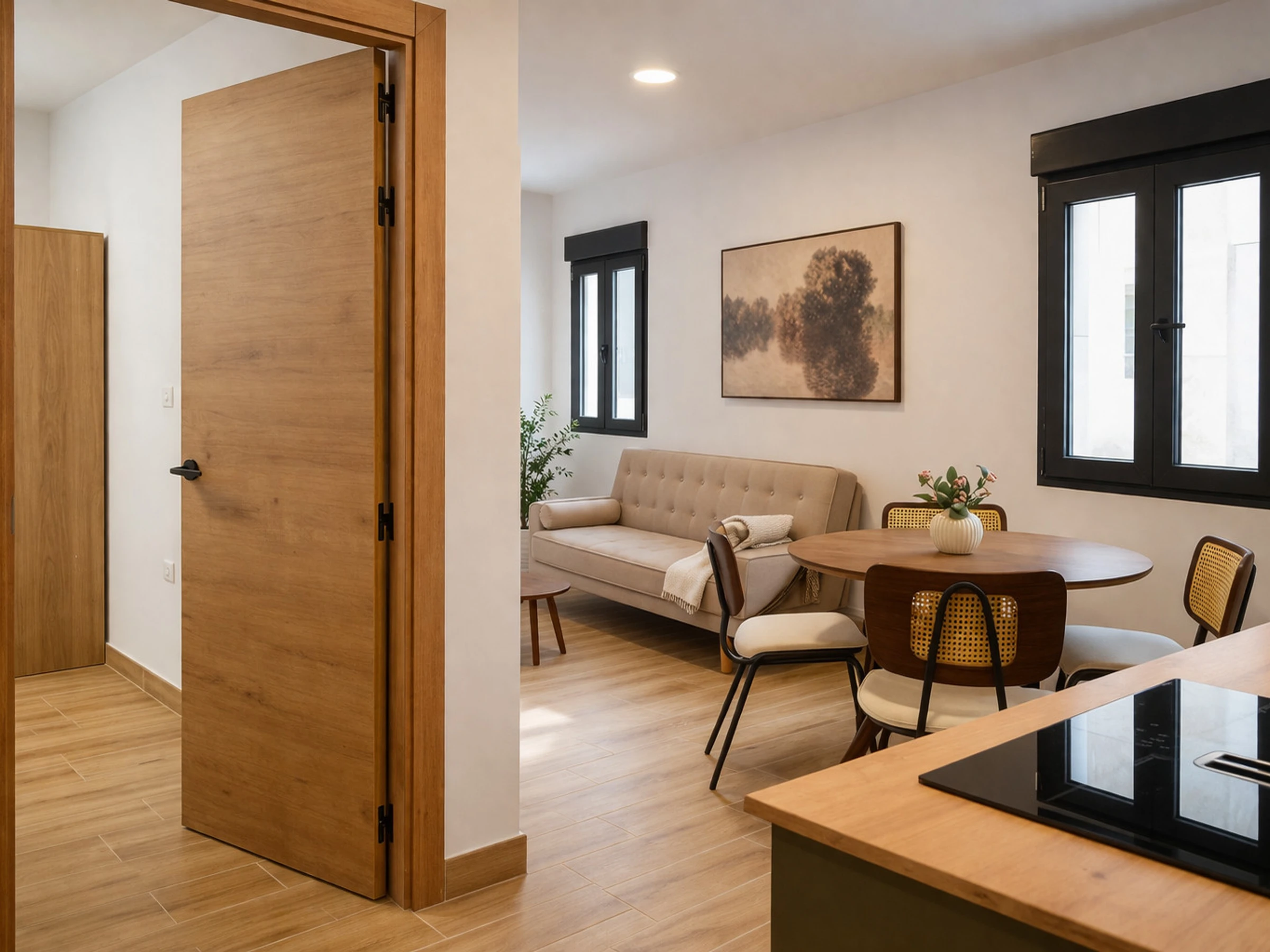 Disfrute de la sofisticación y el confort en este exclusivo refugio de 50 m² ubicado a pasos de la emblemática Plaza de Toros de Las Ventas, la elección perfecta para quienes buscan sumergirse en la autenticidad de Madrid sin renunciar al bienestar moderno. Este luminoso apartamento, diseñado para alojar cómodamente a 2 personas, ofrece una experiencia de estancia superior gracias a su climatización inteligente con bomba de calor y aire acondicionado, garantizando el clima ideal en cualquier estación. Conéctese con el mundo mediante su acceso WiFi de alta velocidad o relájese frente a la televisión tras un día de exploración urbana. La cocina americana de inducción, perfectamente integrada y equipada con microondas, nevera y menaje completo, le invita a saborear la gastronomía local a su ritmo, mientras que detalles como el secador de pelo aseguran una logística sin complicaciones. Viva la combinación perfecta entre ubicación estratégica y diseño funcional en un espacio pensado para maximizar su descanso en la capital.