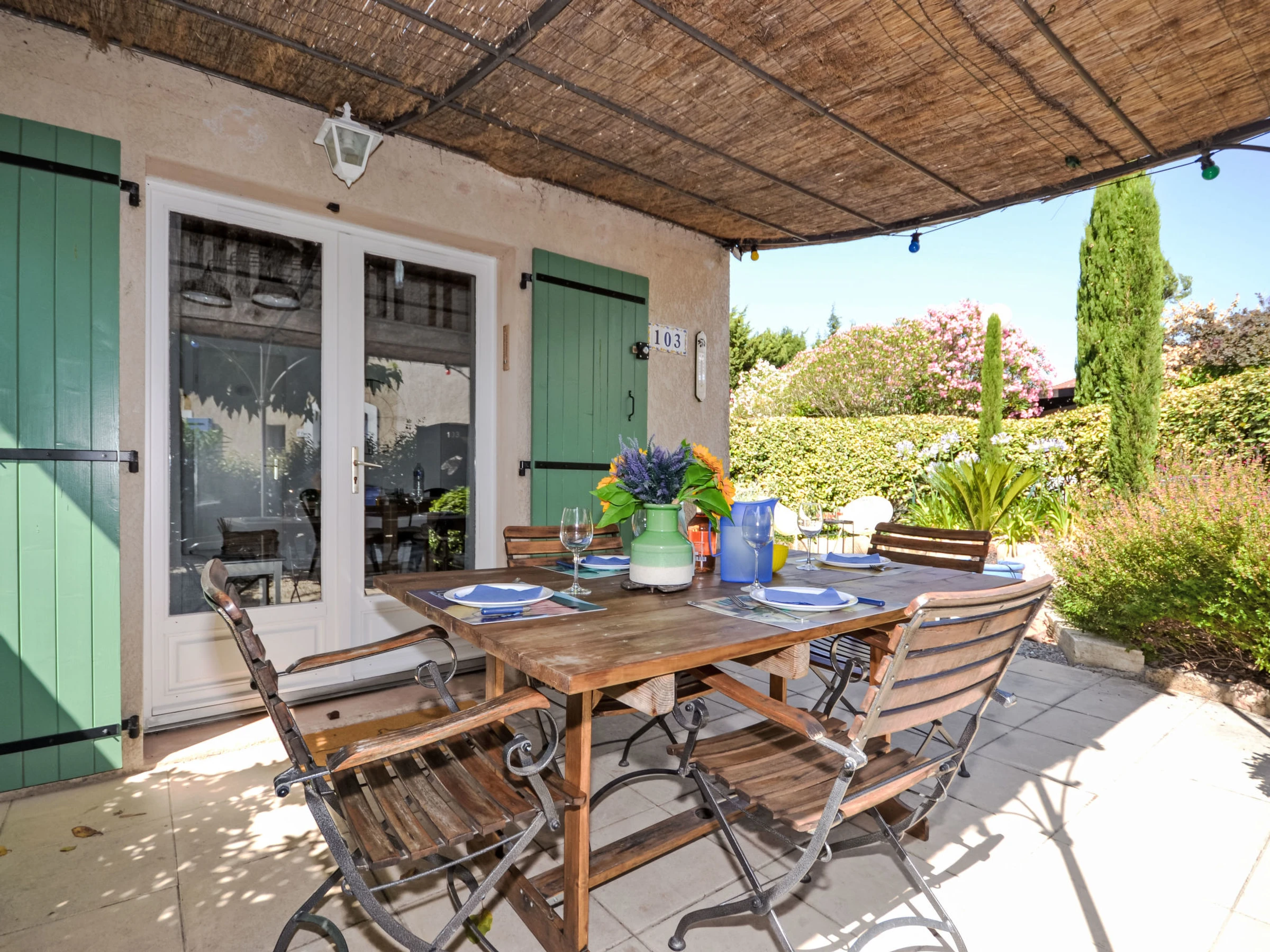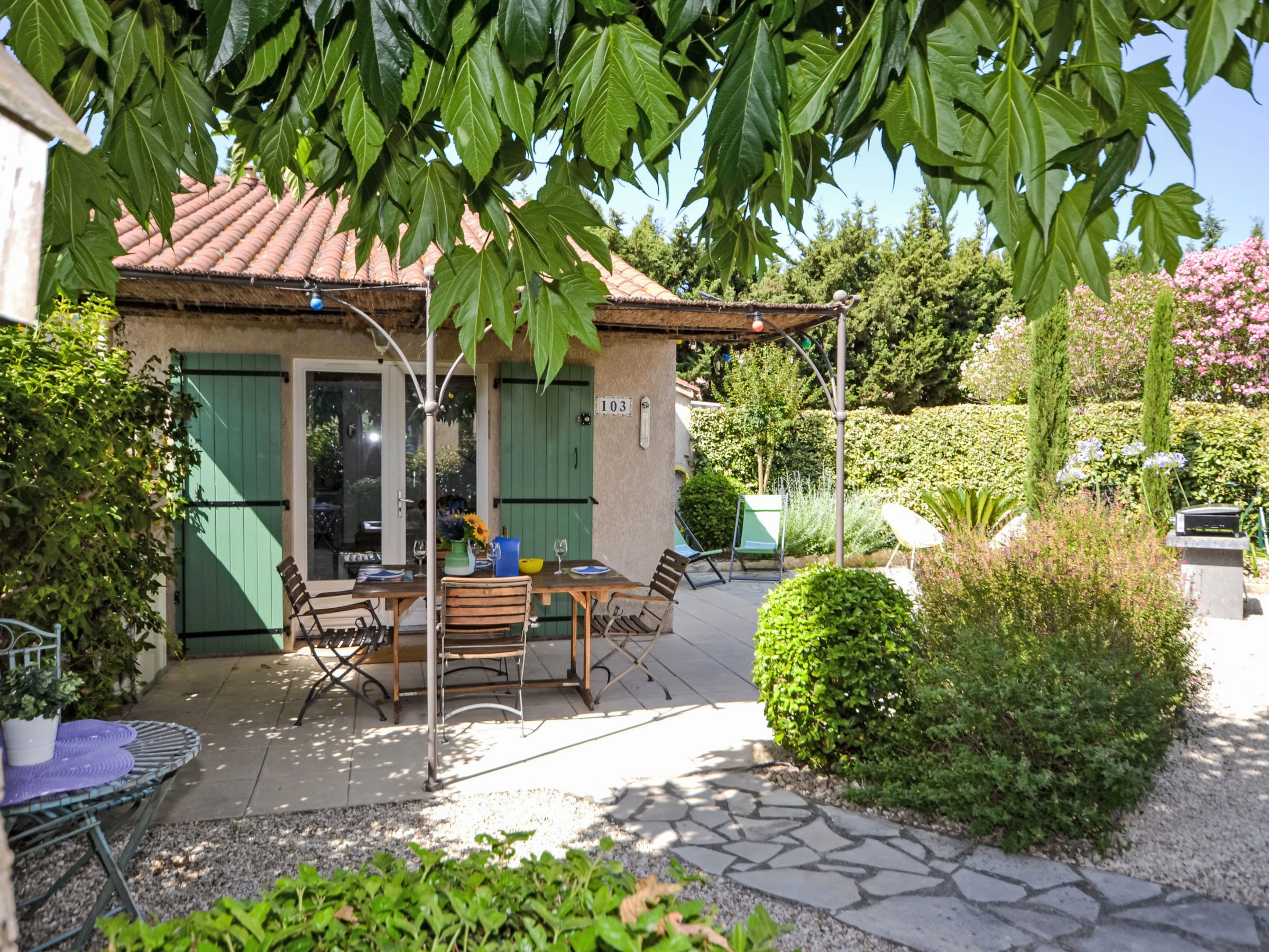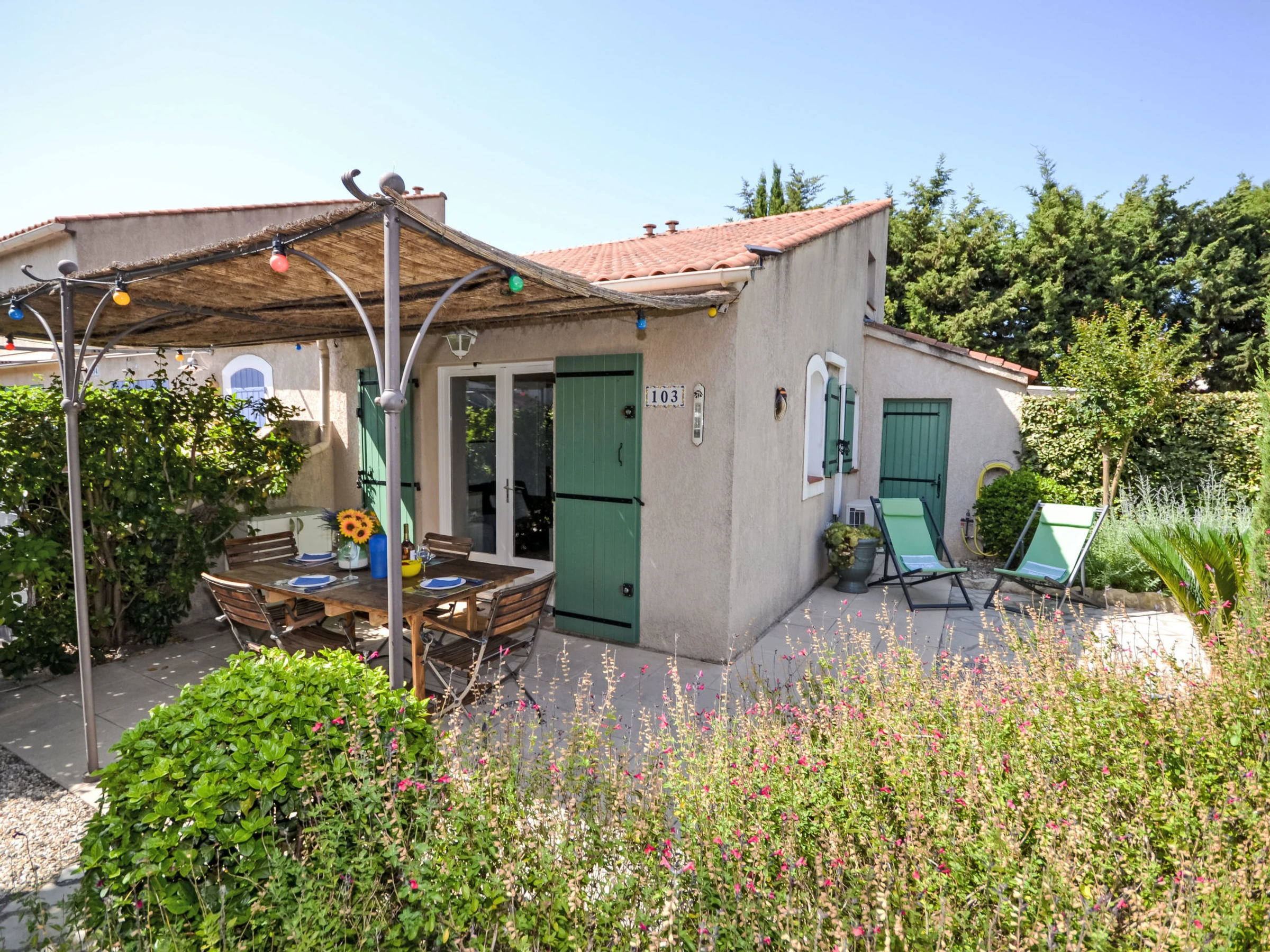 Pueblo vacacional "Val d'Alpilles". 103 casas en la residencia. Comunitario: piscina (10 x 5 m, Disponible por temporada: [hidden] y [hidden] horario piscina: 09:00-19:00). Ducha/WC en zona de piscina, tenis, petanca, mantenimiento de la piscina a través del propietario/jardinero. Privado: jardín pequeño, cuidado 150 m2 (vallado), Aparcamiento n. 103 junto a la casa a 50 m. Tienda, tienda de comestibles 300 m, supermercado 500 m, restaurante 300 m, panadería 350 m, parada autobús "Le Stade" 750 m. Atracciones en los alrededores: Maussane Les Alpilles 300 m, Les Baux de Provence 2 km, Saint Rémy de Provence 10 km, Aix en Provence 70 km. A tener en cuenta: coche recomendable.