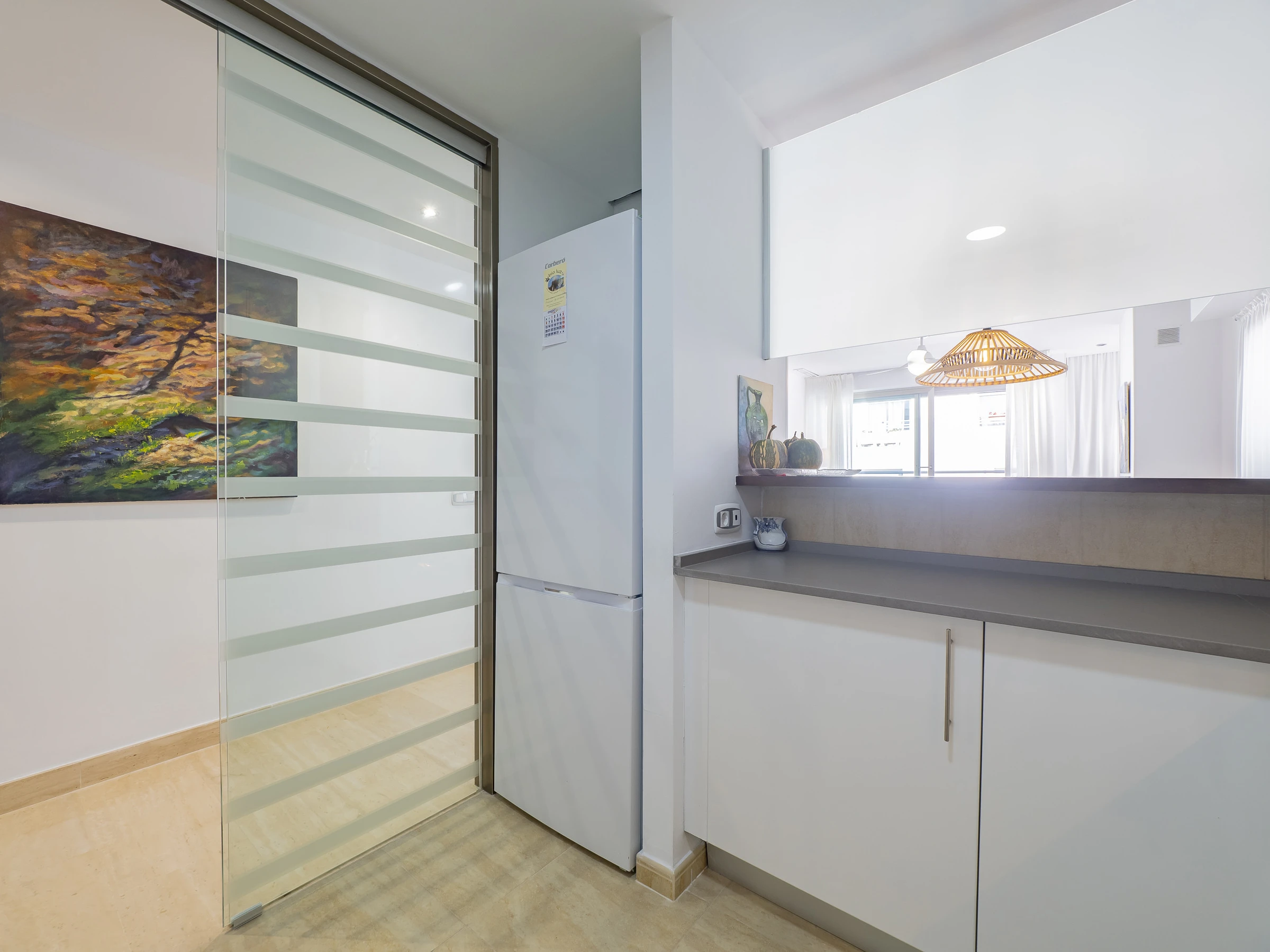 El apartamento ofrece un salón comedor espacioso, dividido en área de estar y comedor, con acceso a dos terrazas que invitan a disfrutar del aire fresco y momentos en familia. La cocina americana está completamente equipada con electrodomésticos modernos, incluyendo nevera, microondas, horno, lavavajillas y todos los utensilios necesarios para preparar deliciosas comidas. Además, supermercados cercanos y una variada oferta gastronómica local completan la experiencia culinaria.