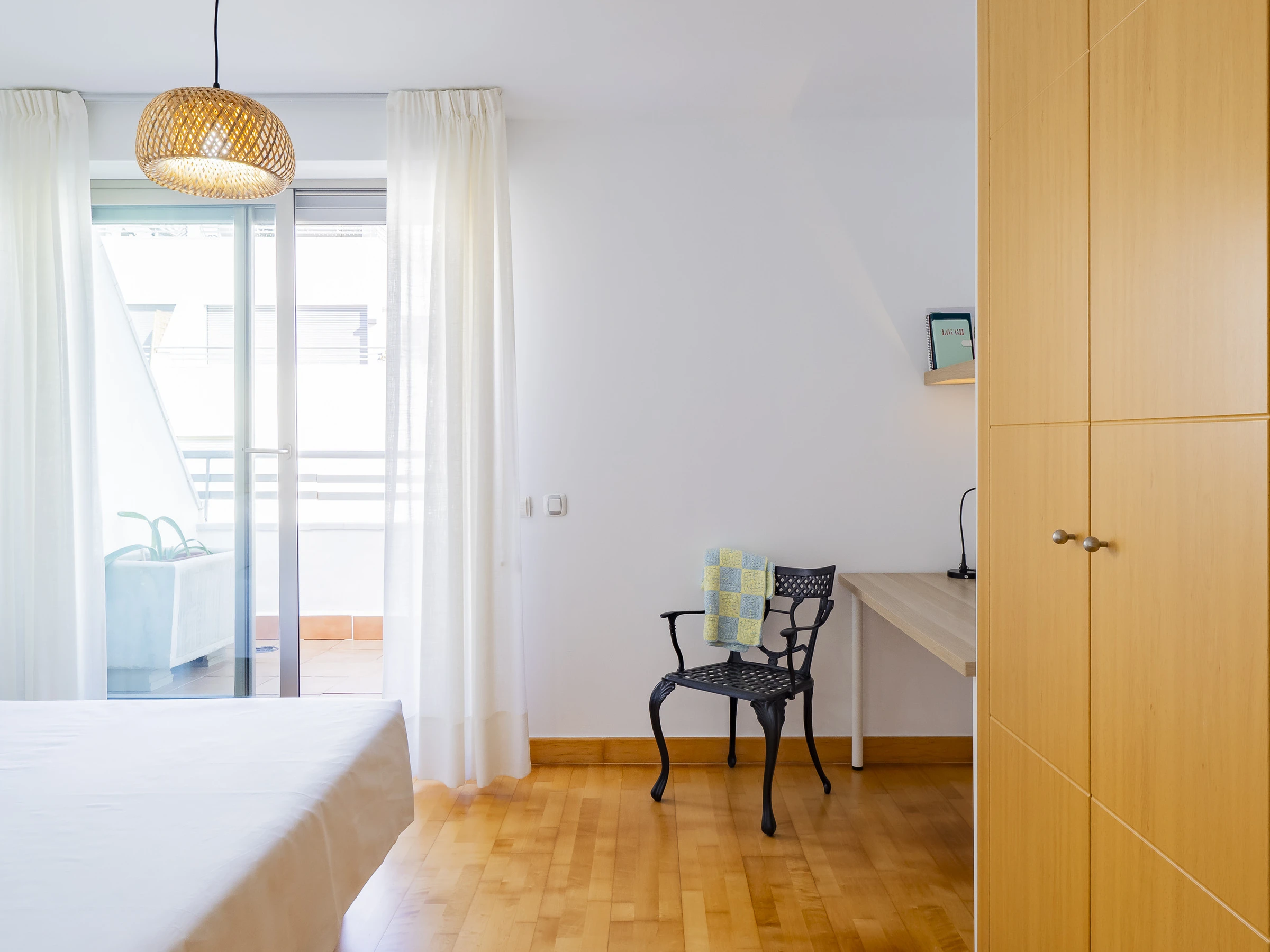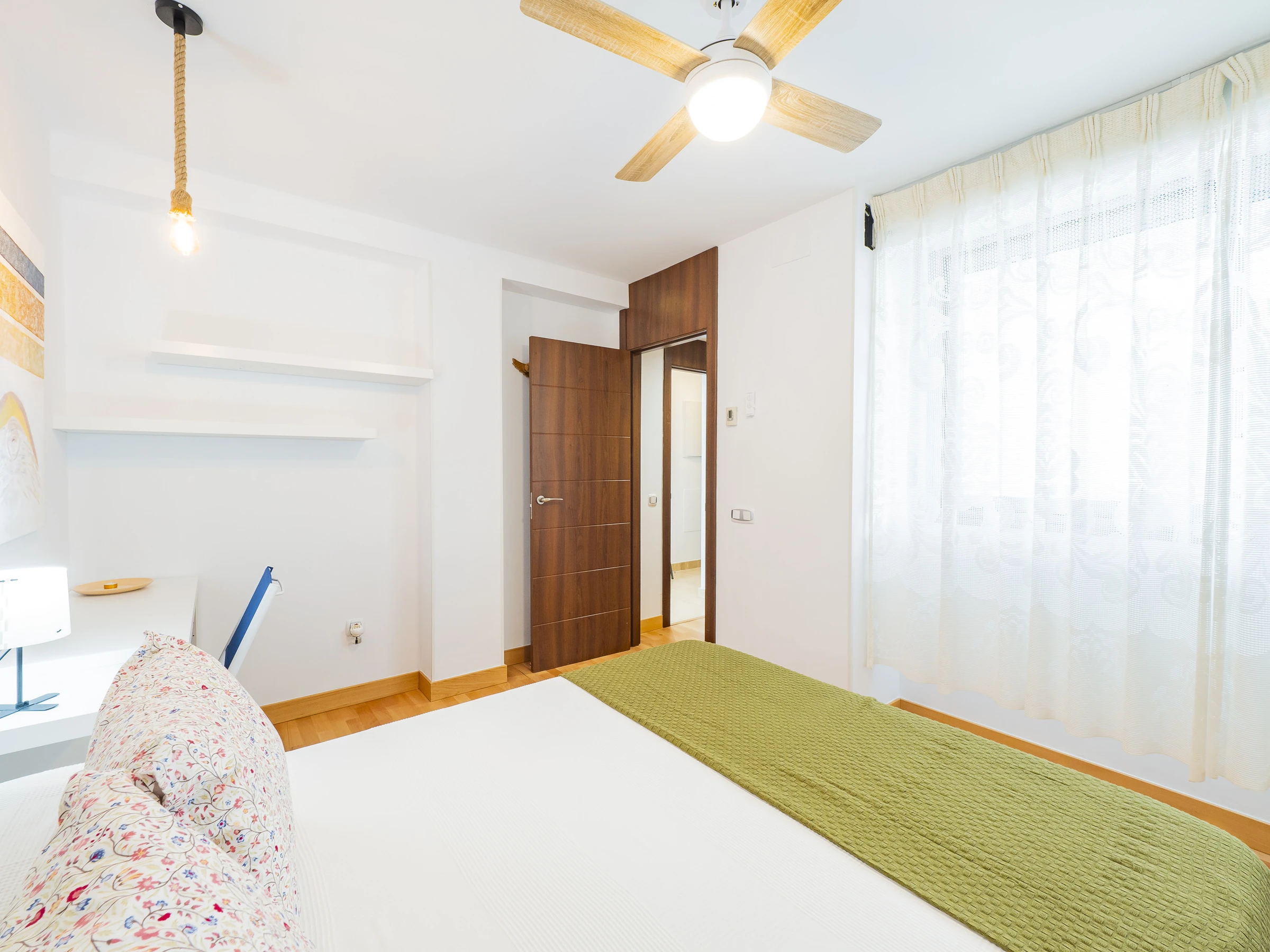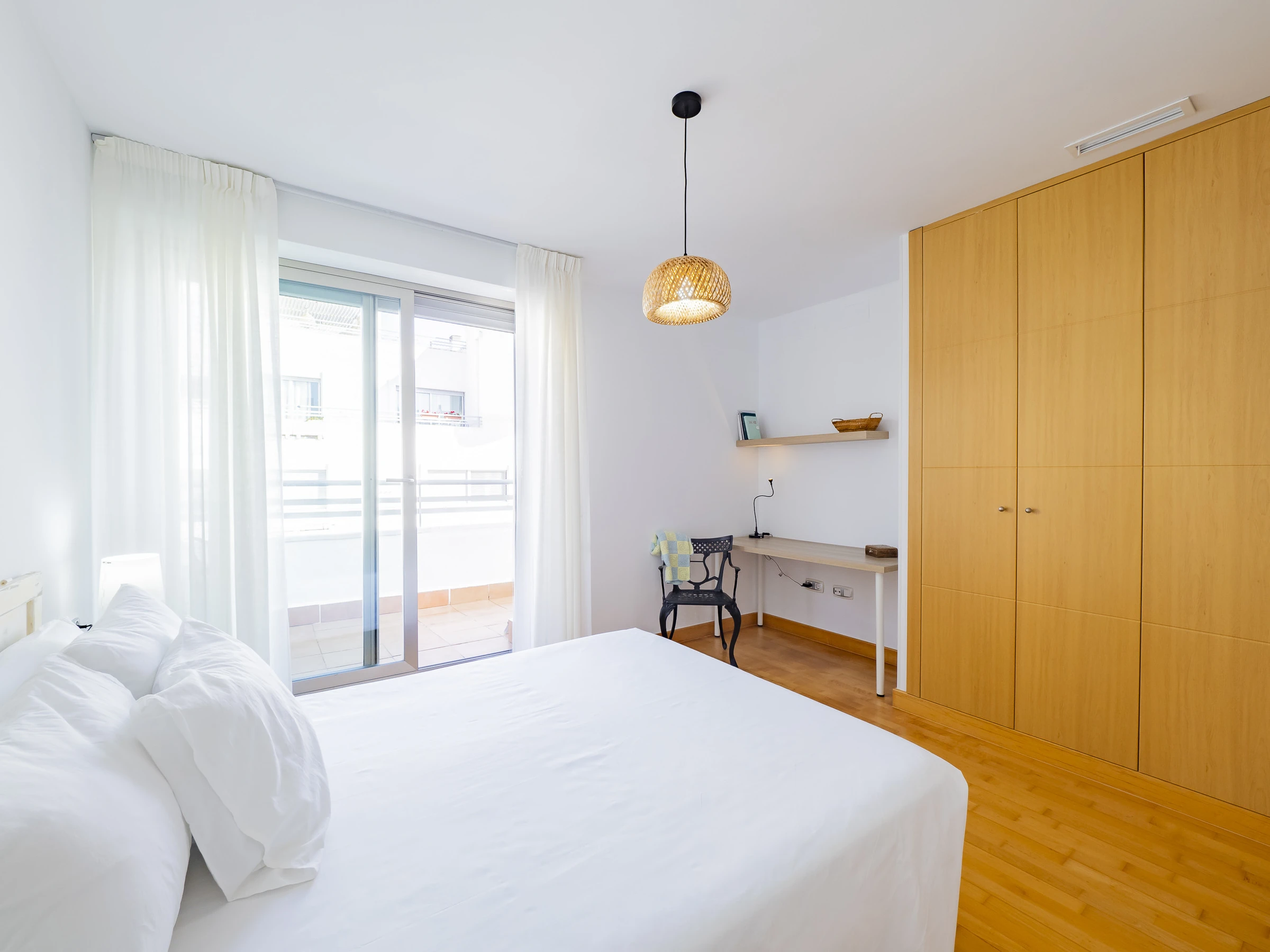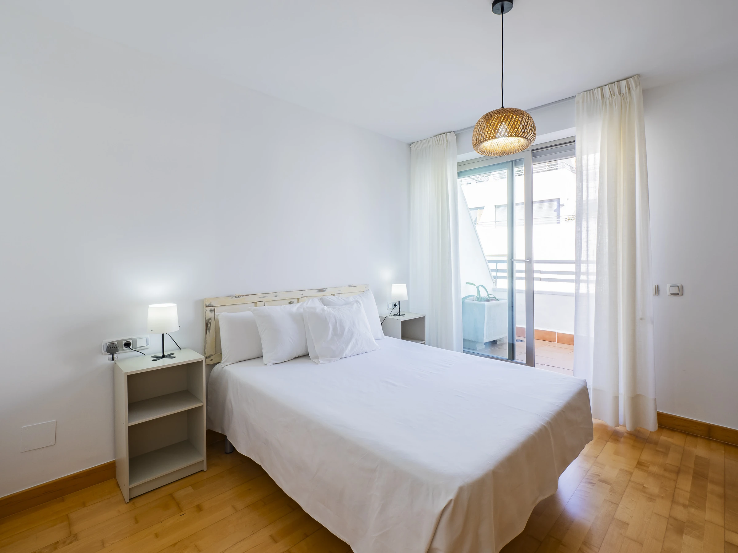Para el descanso, dispone de dos dormitorios con camas de matrimonio, espacio de almacenamiento y ventanas al exterior, uno de ellos con acceso a terraza. La climatización centralizada con aire acondicionado y calefacción asegura el confort en cualquier época del año.