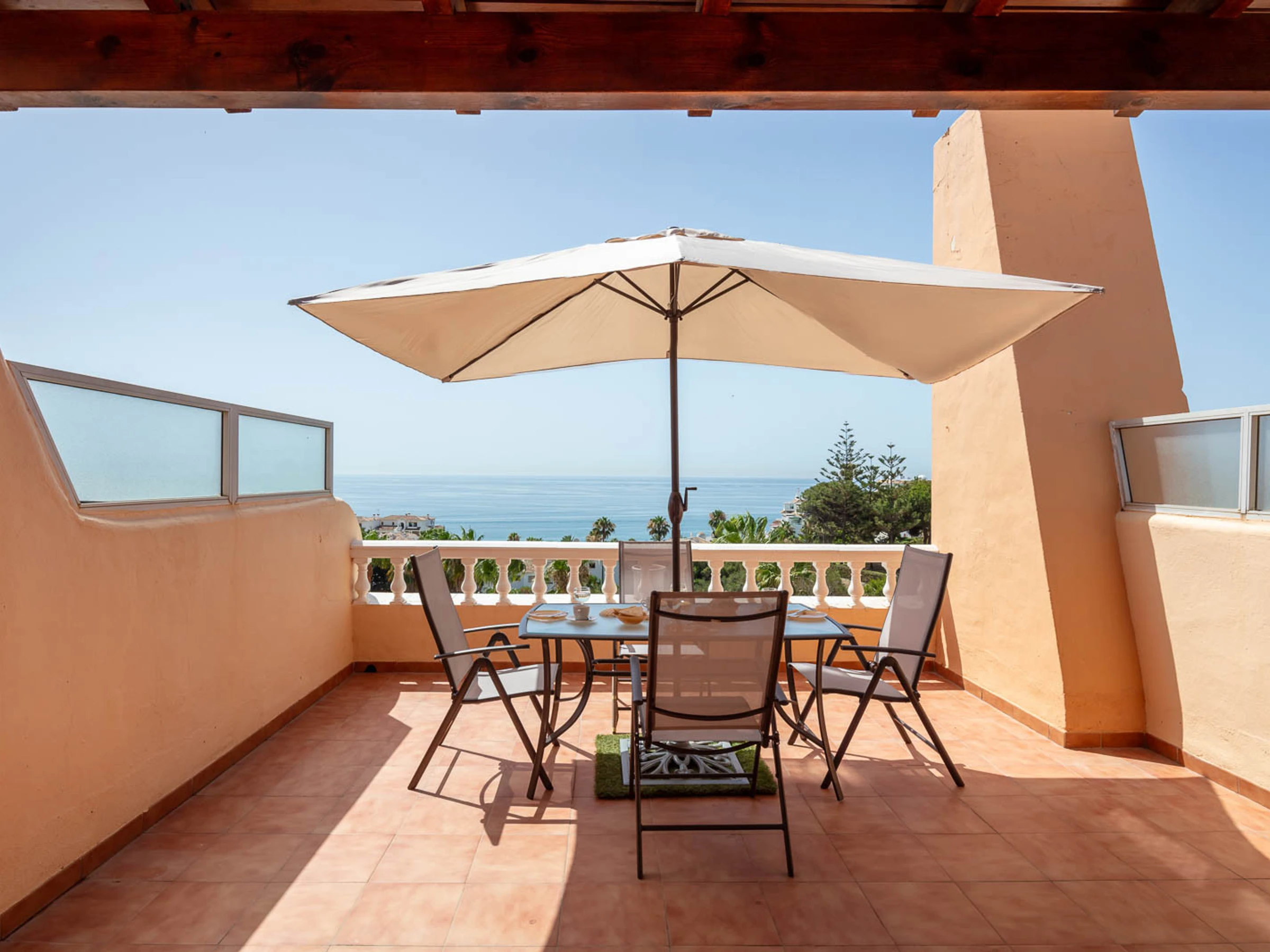 El estudio en Mijas Costa posee 1 dormitorio(s) y capacidad para 3 personas. Alojamiento de 81 m² bonito y totalmente equipado, situado en primera línea de playa, con vistas al mar. Se encuentra a 450 m de la playa de arena "Playa Peñón del Cura", 450 m de la playa de roca "Playa Peñón del Cura", 1 km del supermercado, 3 km del campo de Golf "El Chaparral", 3 km de la ciudad "Fuengirola", 10 km de la estación de tren, 40 km del aeropuerto y está ubicado en una zona ideal para familias y dentro de una urbanización.Dispone de mobiliario jardín, 11 m² de terraza, lavadora, barbacoa, plancha, acceso internet (wifi), secador, zona infantil, pista de tenis, alarma, calefacción bomba de calor, aire acondicionado, piscina comunitaria+infantil, piscina climatizada comunitaria, parking cubierto en mismo edificio, 1 Televisor, tv satelite (Idiomas: Español, Inglés, Alemán, Francés), [hidden] cocina independiente, de vitrocerámica, está equipada con nevera, microondas, horno, congelador, vajilla/cubertería, utensilios/cocina, cafetera, tostadora, hervidor de agua y exprimidor.