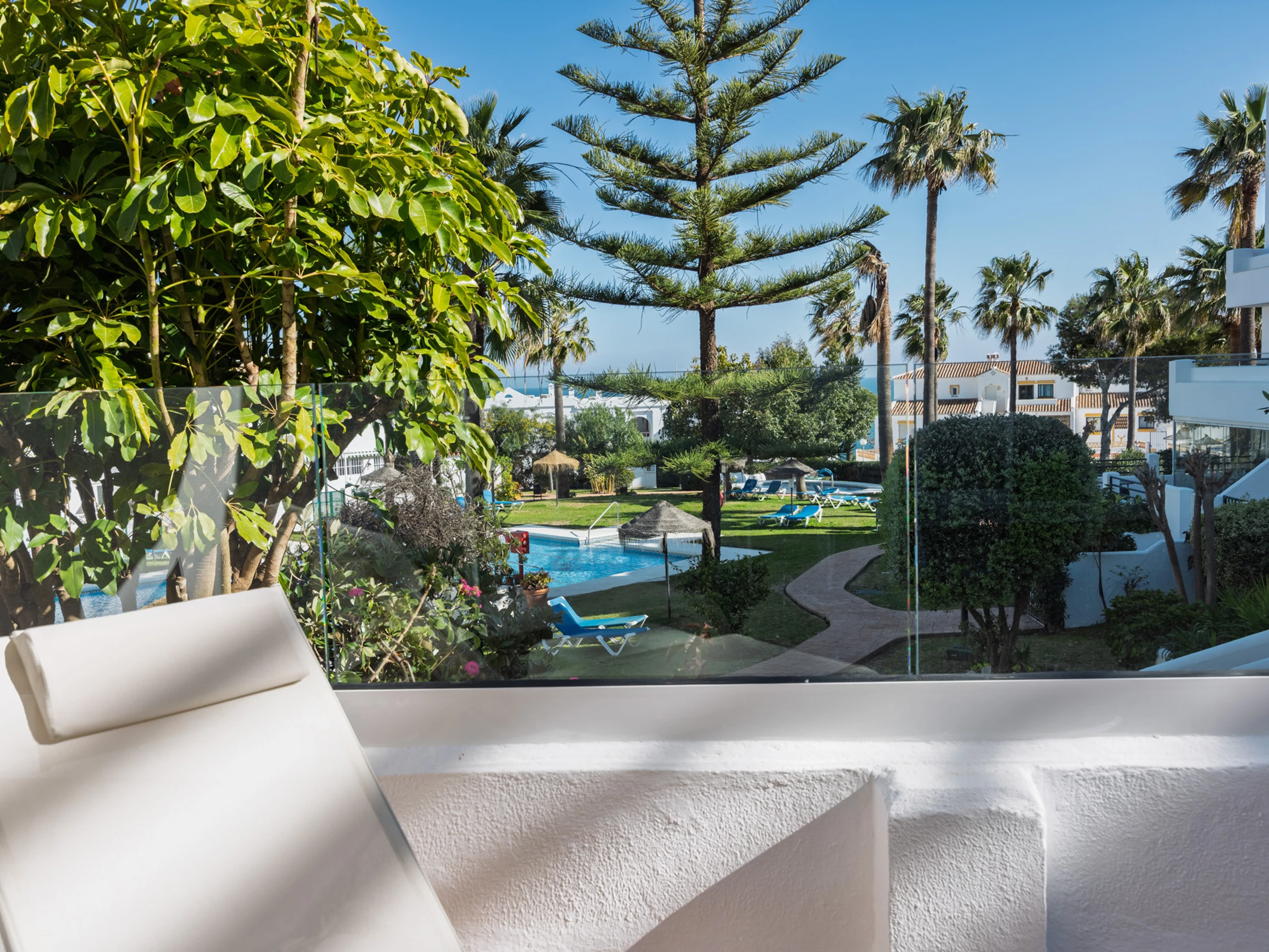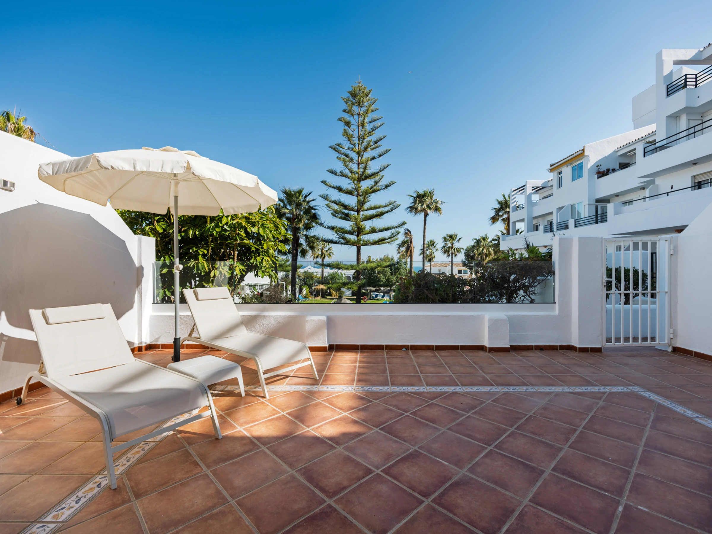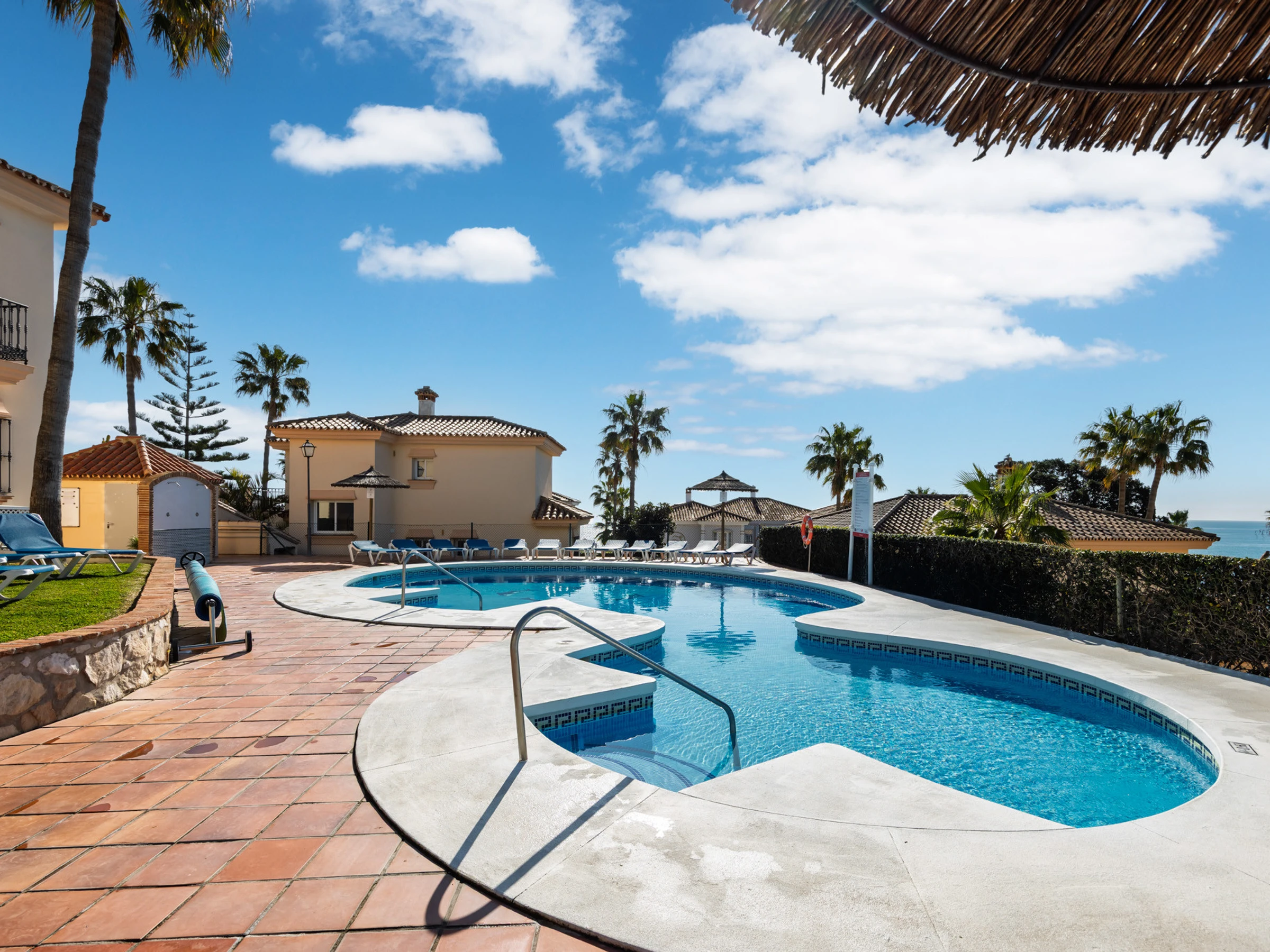 Además, podrás disfrutar de las instalaciones compartidas, como dos piscinas (una de ellas climatizada) y pistas de tenis y pádel. El apartamento también cuenta con aparcamiento privado cubierto.