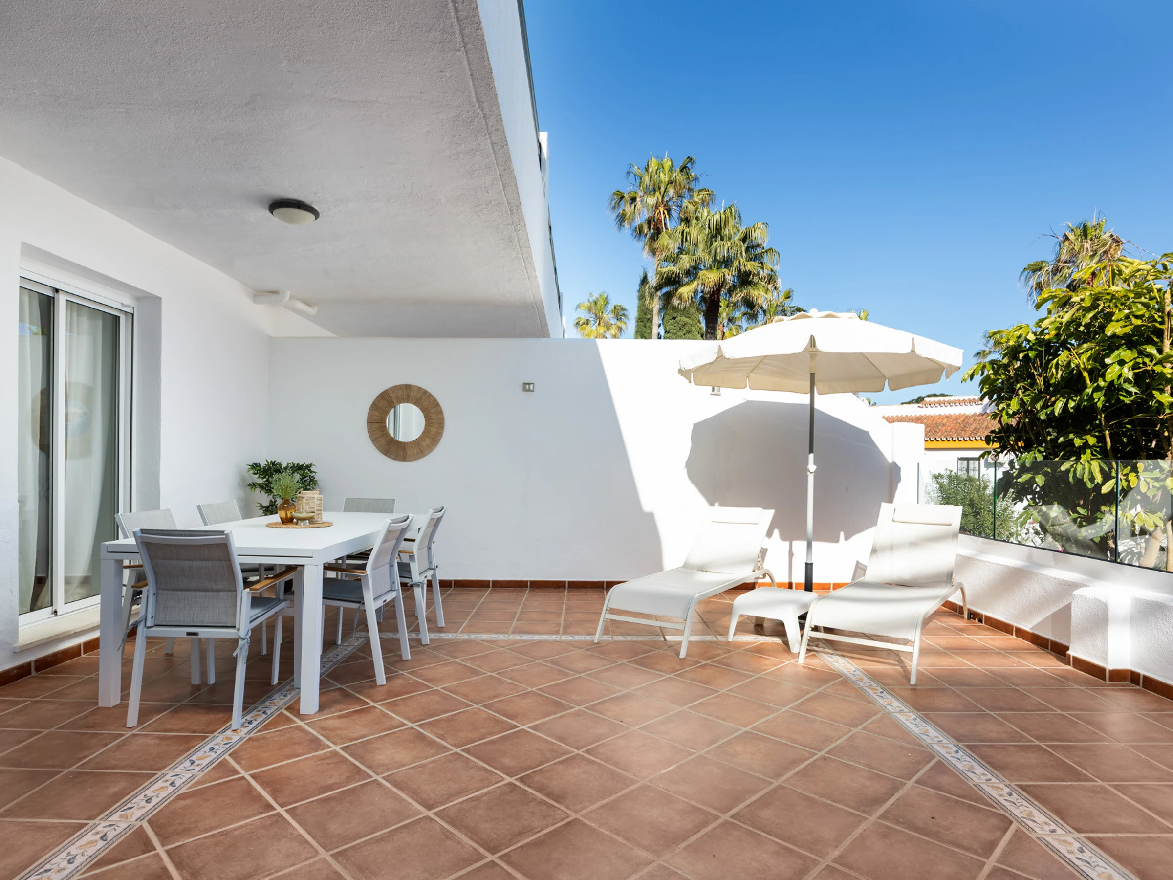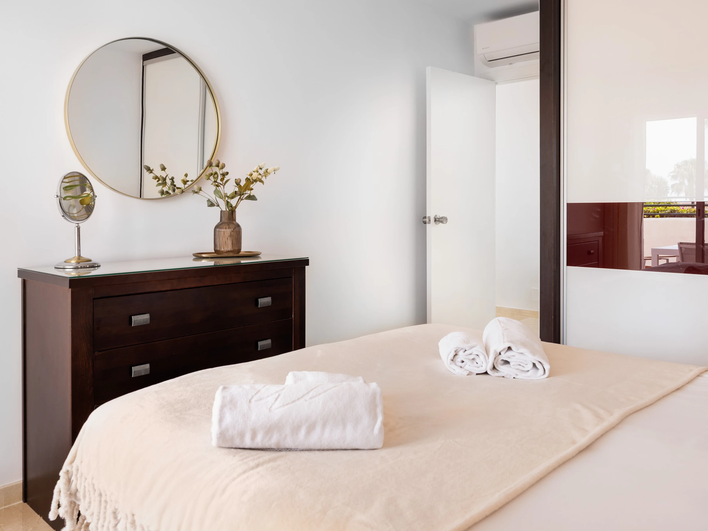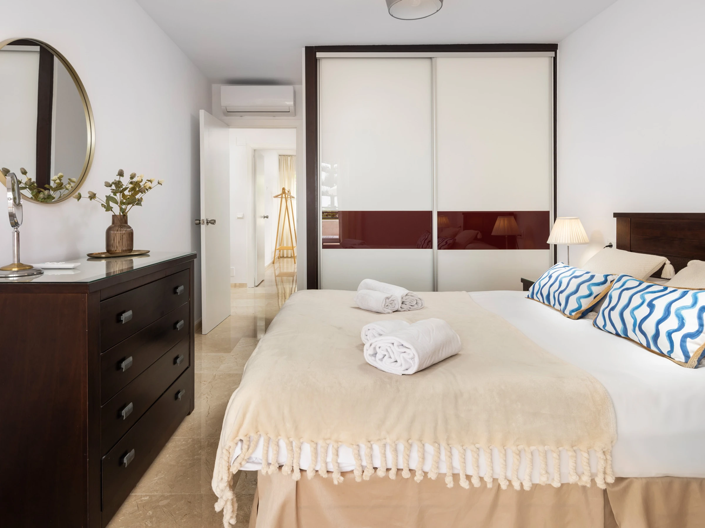 Además, podrás disfrutar de las instalaciones compartidas, como dos piscinas (una de ellas climatizada) y pistas de tenis y pádel. El apartamento también cuenta con aparcamiento privado cubierto.