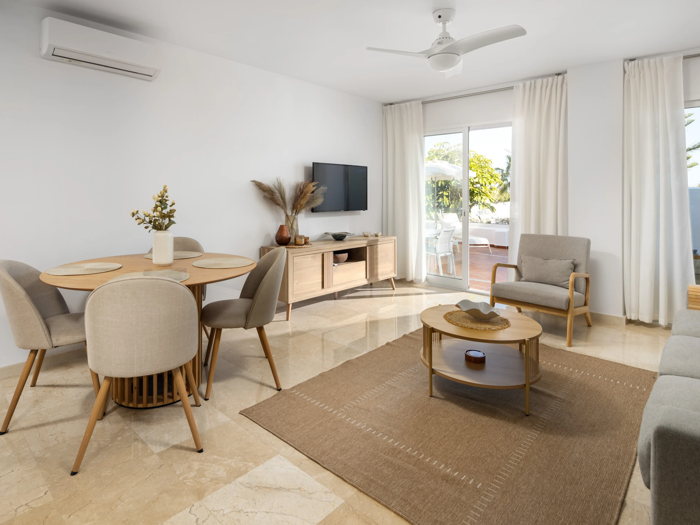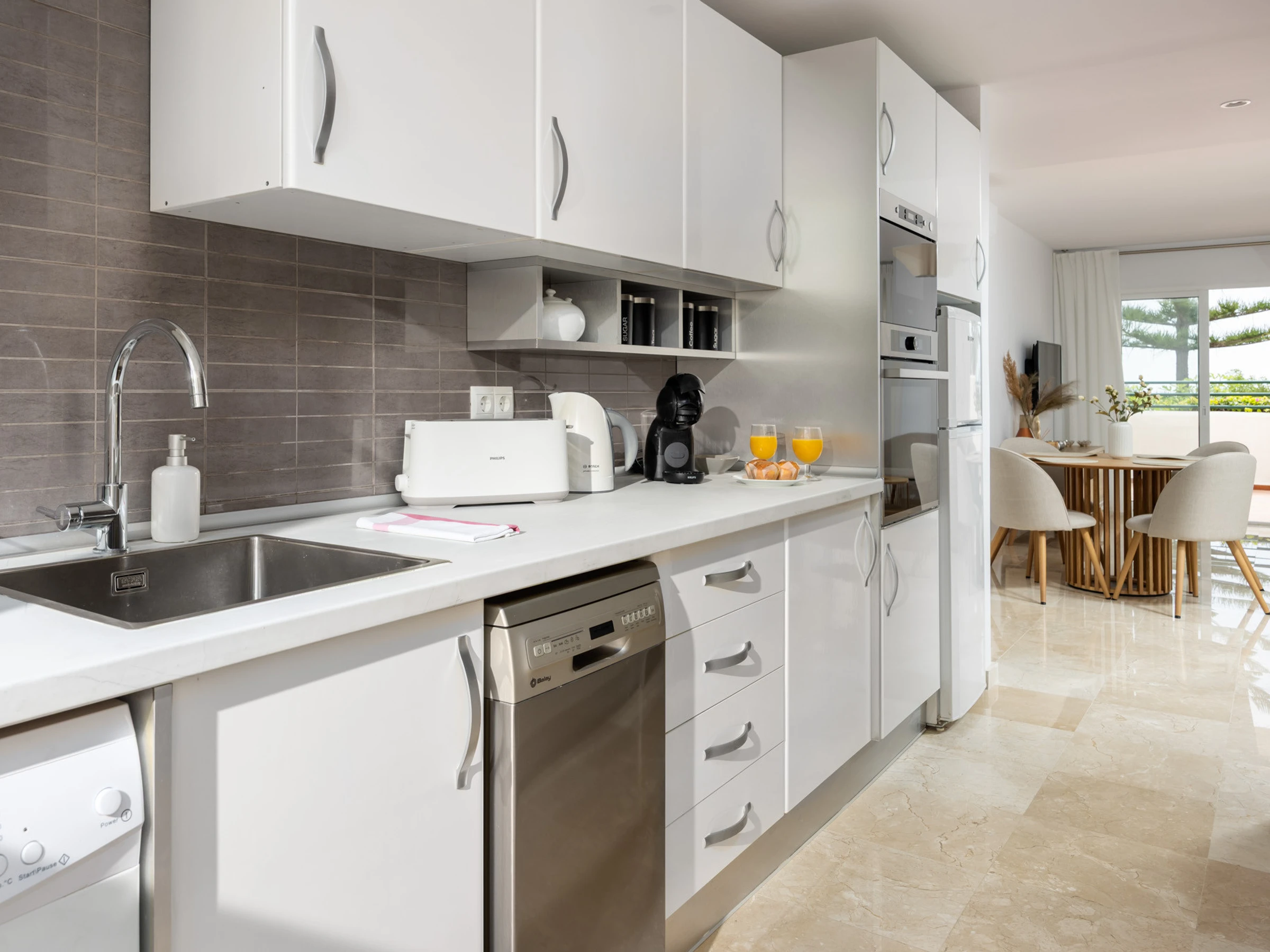 El apartamento dispone de 2 dormitorios y 1 baño con bañera. Está totalmente equipado con todo lo necesario para que te sientas como en casa, incluyendo cocina independiente con electrodomésticos, WiFi, TV con canales en español, inglés, alemán y francés, y zona de juegos para niños.