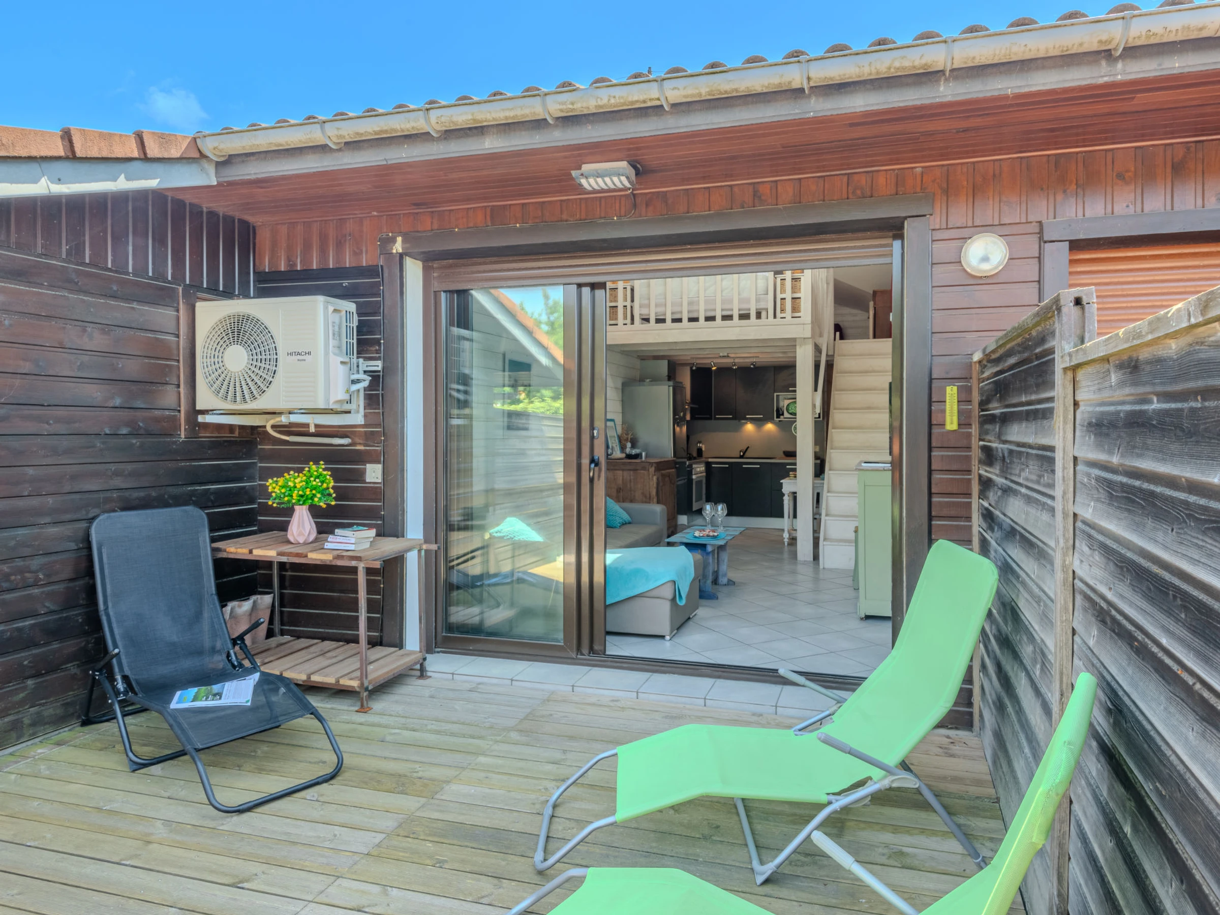 Apartamento de 2 estancias 28 m2, orientación noroeste. Con mobiliario sencillo: salón-comedor con TV (pantalla plana). Salida a la terraza. Cocina abierta (lavavajillas, 1 placas de vitrocerámica, 3 fuegos, tostadora, hervidor de agua eléctrico, microondas, congelador, cafetera eléctrica). Ducha, WC separado. Calefacción, aire acondicionado. Planta superior: (escalera empinada) altillo abuhardillado, abierto, altura de techo 220 - 100 cm, sin ventanas con 1 sofá-cama (120 cm, 190 cm de longitud), 1 cama de matrimonio (1 x 140 cm, 190 cm de longitud). Suelo de madera. Terraza 15 m2. Muebles de terraza. El alojamiento dispone de: lavadora, secador de pelo. Internet (Wifi, extra). Plaza de aparcamiento (1 coche). A tener en cuenta: apartamento para no fumadores. Permitido máximo 1 mascota / perro. Detector de humo. Oferta de un particular según el art. 155, IV del CGI.