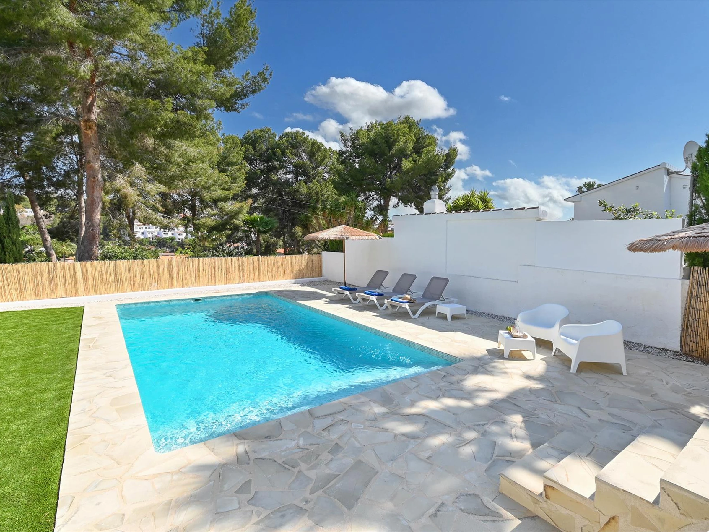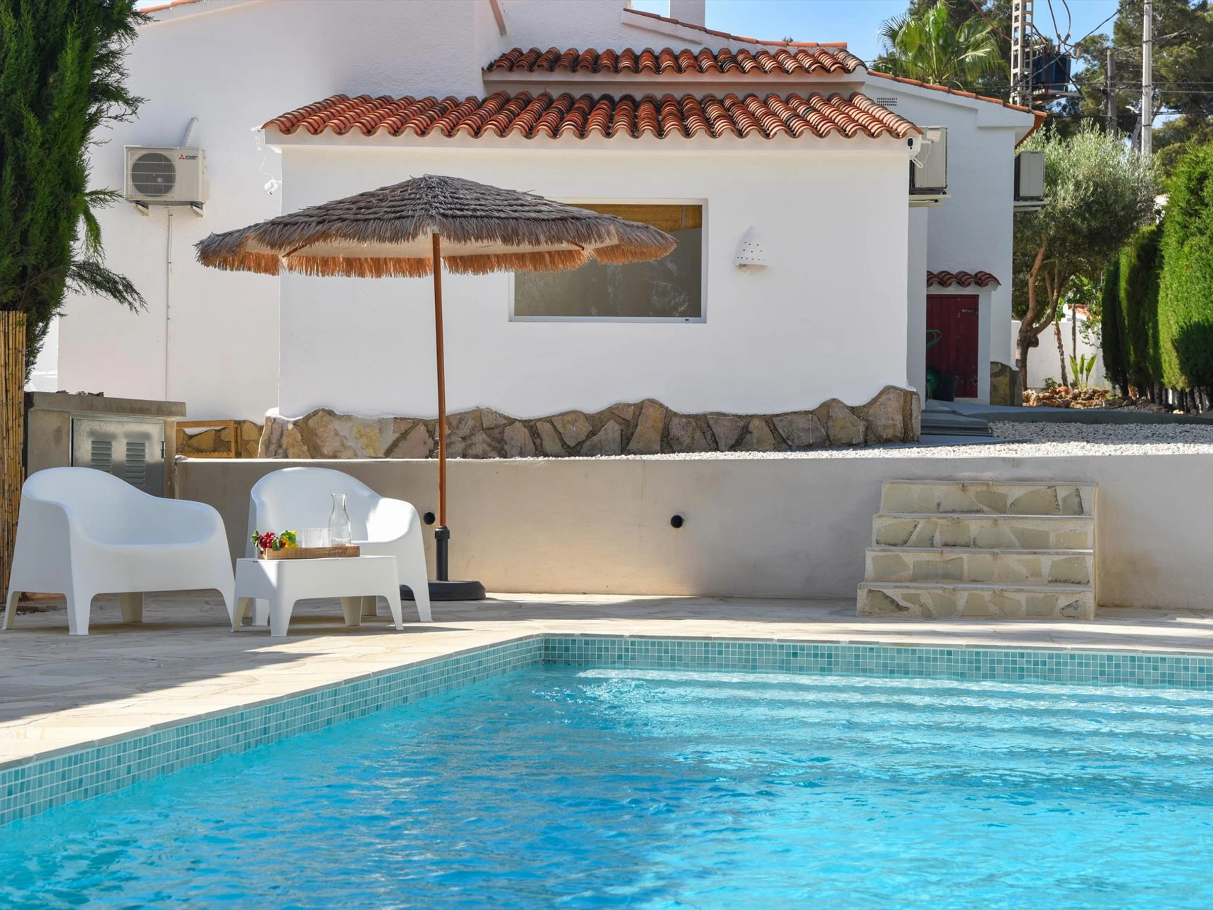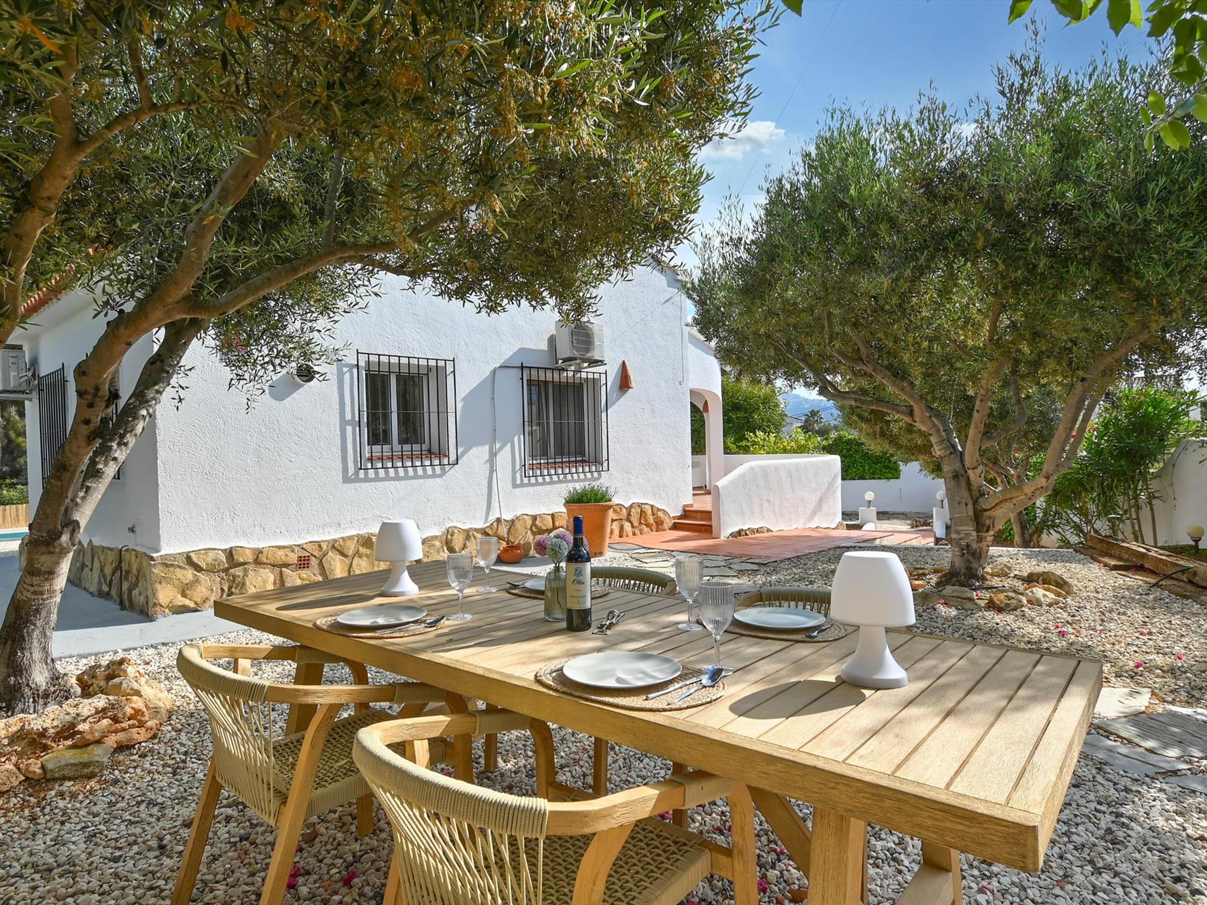 Maravillosa y clásica villa con piscina privada en Moraira, Costa Blanca, España para 4 personas. La casa está situada en una zona costera y residencial, cerca de tiendas, a 1 km de la playa de les Platgetes y a 1 km del Mar Mediterráneo.