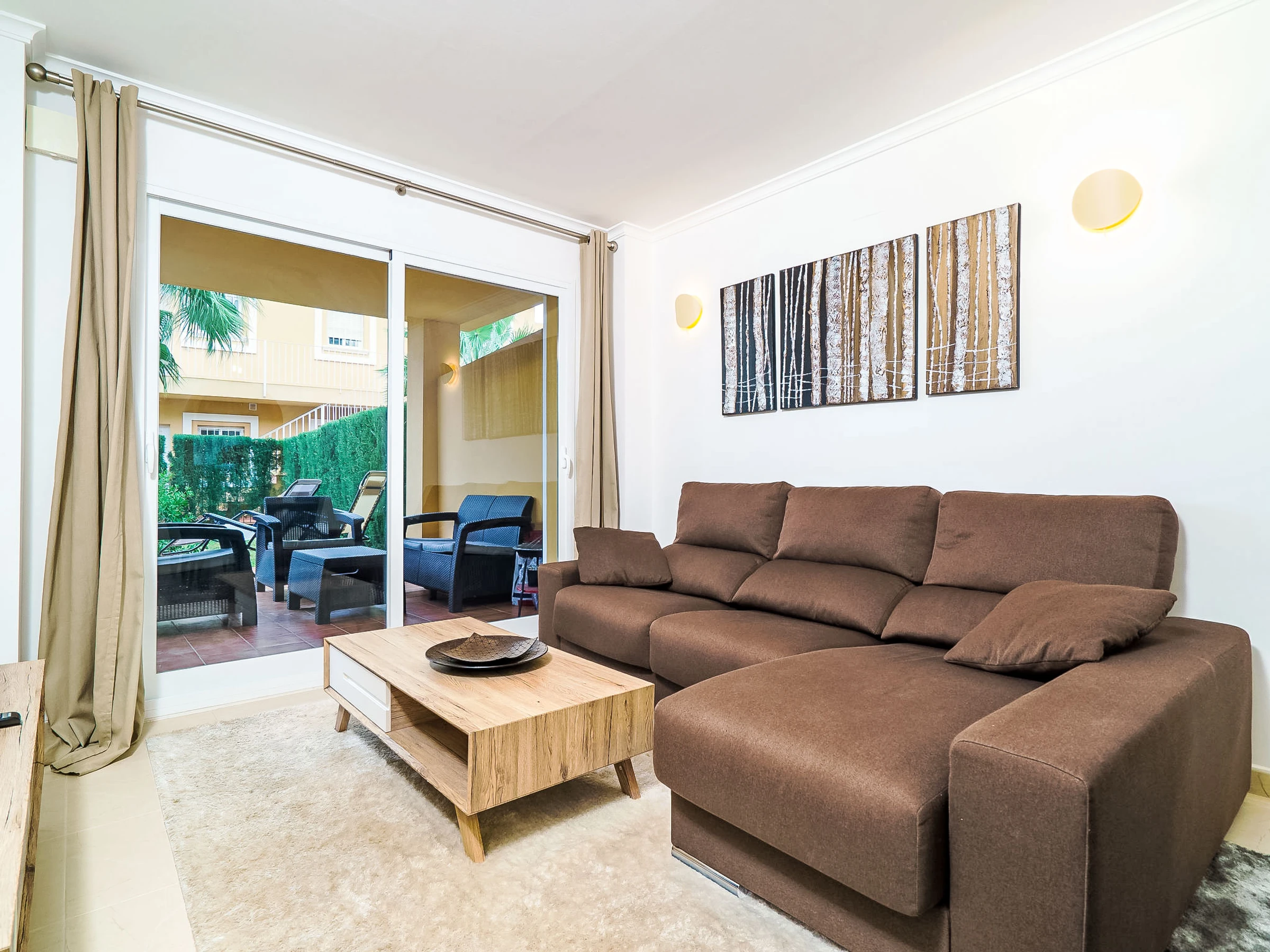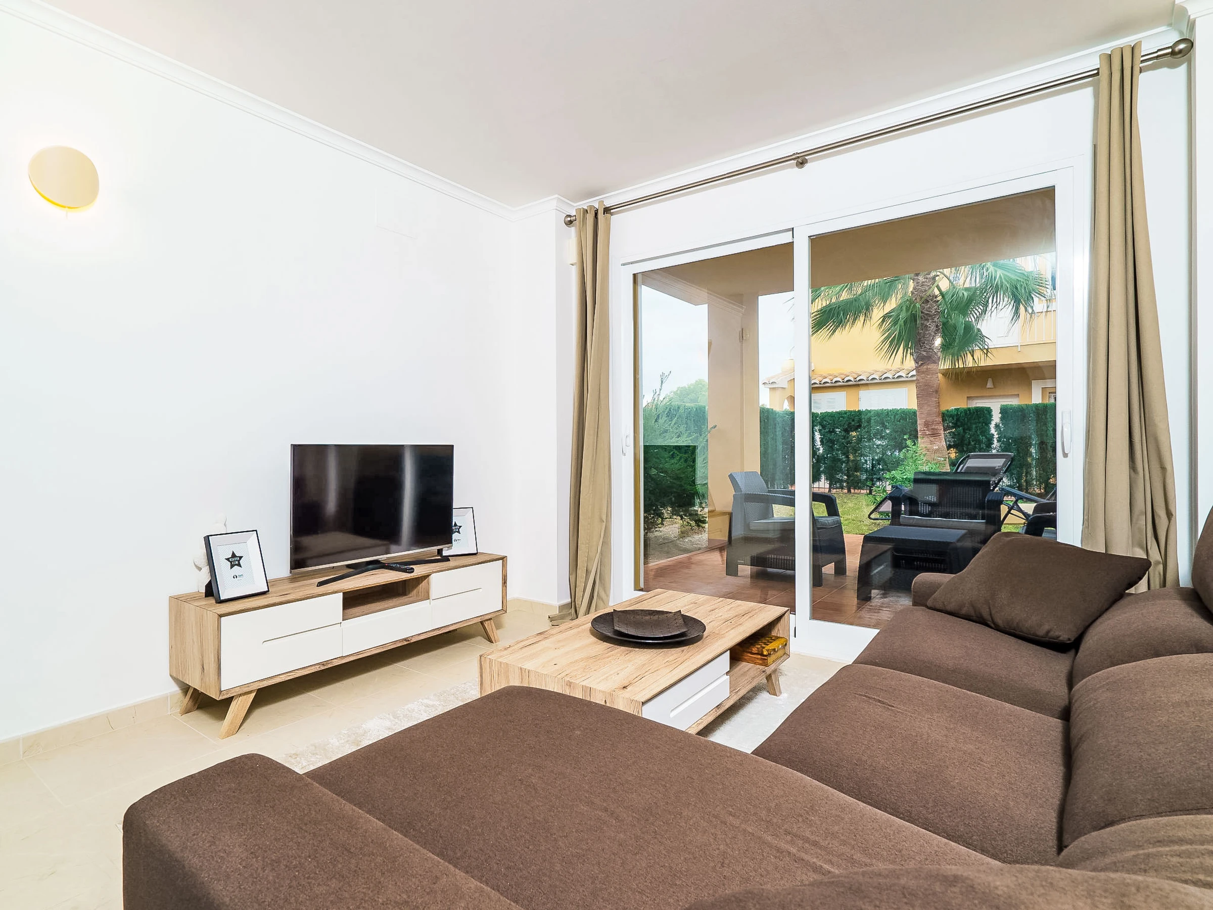 "Pinazo", apartamento de 3 estancias 55 m2. Con mobiliario muy bonito y de buen gusto: salón-comedor con canales internacionales, pantalla plana y aire acondicionado. Salida al jardín, a la terraza-jardín. 1 dorm. con 2 camas y aire acondicionado. 1 dorm. doble con 1 cama doble (1 x 160 cm, 200 cm de longitud), aire acondicionado. Cocina abierta (horno, lavavajillas, microondas, congelador, cafetera eléctrica). Baño/WC. Calefacción, aire caliente. Calefacción no en todas las estancias. Terraza parcialmente cubierta, terraza-jardín, césped. Muebles de terraza, tumbonas. El alojamiento dispone de: lavadora. Internet (Wifi, gratis). A tener en cuenta: adecuado para familias. Apartamento para no fumadores. [hidden] // Reg. Nr.: ESFCTU00000303800092525900000000000000000[hidden]5