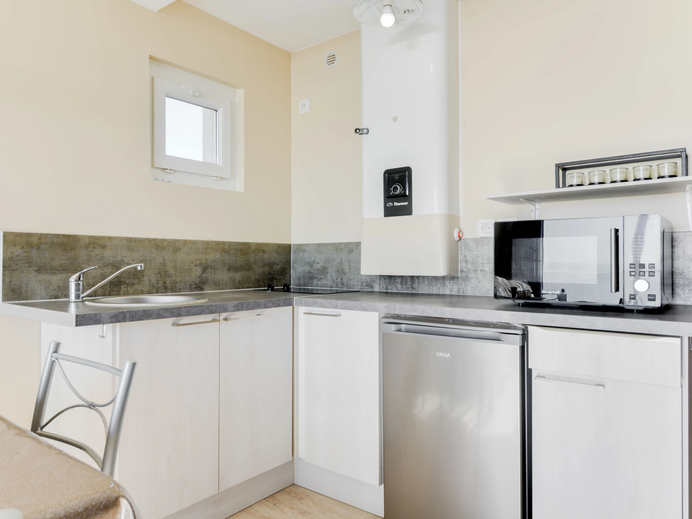 Apartamento de 2 estancias 26 m2 en el 3° piso. Con mobiliario confortable: salón-comedor con 1 sofá-cama doble (140 cm, 190 cm de longitud), TV y pantalla plana. Salida al balcón. 1 dorm. con 1 cama de matrimonio (1 x 140 cm, 190 cm de longitud). Rincón-cocina (2 placas de vitrocerámica, microondas/grill). Ducha/WC. Calefacción eléctrica. Balcón pequeño 3 m2, orientación sureste. Muebles de balcón. Vista bonita al mar. El alojamiento dispone de: Internet (Wifi, extra). A tener en cuenta: permitido máximo 1 mascota pequeña / perro. Detector de humo. Oferta de un particular según el art. 155, IV del CGI.