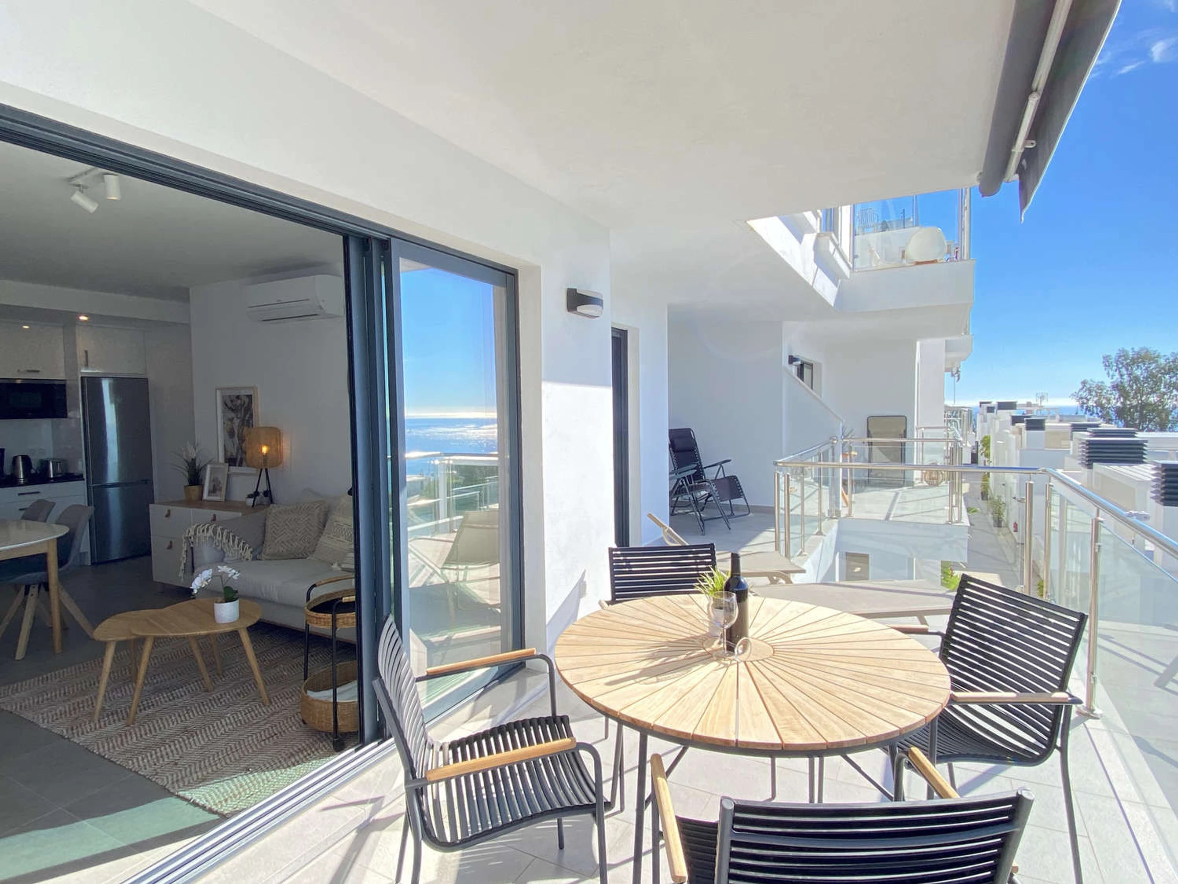 Saborea el máximo lujo y relajación en nuestro espectacular apartamento con incomparables vistas al mar. Disfruta de las hermosas vistas desde la amplia terraza, con barbacoa y tumbonas.