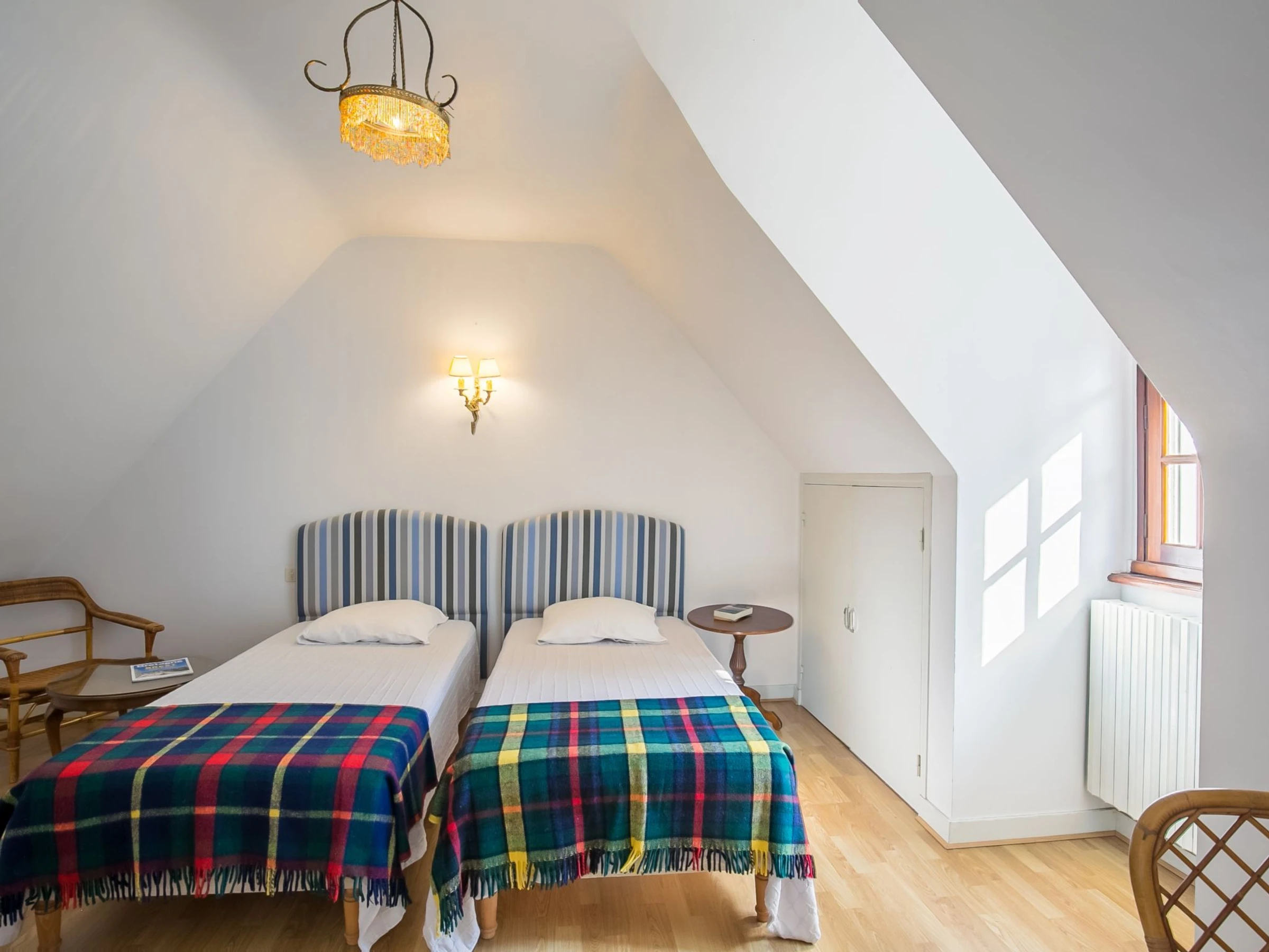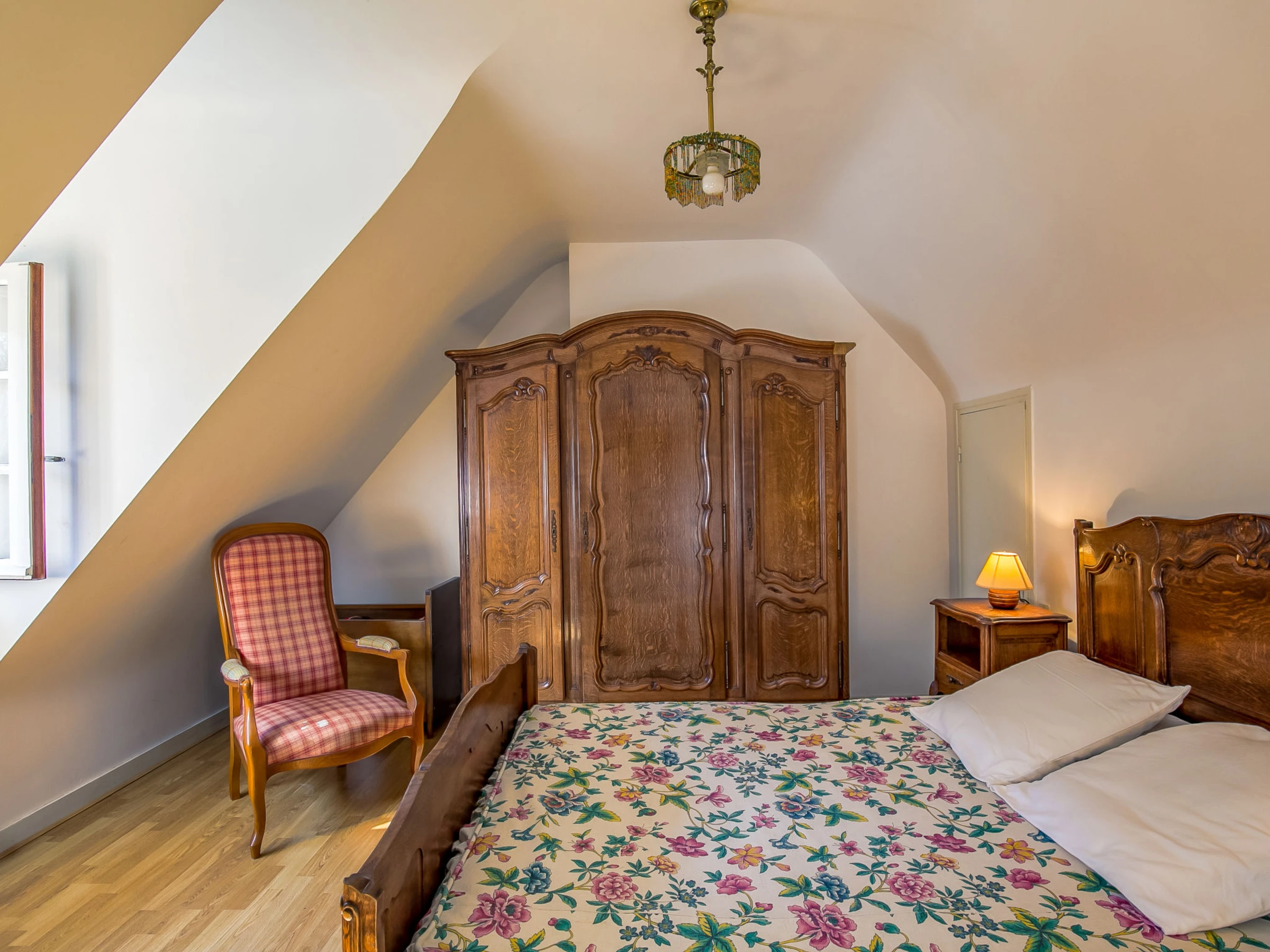 "Saint Nicolas", casa 4 estancias 110 m2 en 2 plantas. Espacioso, con mobiliario rústico y antiguo: salón-comedor 40 m2 con chimenea, mesa de comedor y TV (pantalla plana). Salida al jardín, a la terraza. 1 dorm. con 2 camas (100 cm, 190 cm de longitud), ducha/WC. Cocina abierta (4 fogones, horno, lavavajillas, hervidor de agua eléctrico, microondas, congelador, cafetera eléctrica). WC separado. Planta superior: habitación de paso abuhardillada. 1 dorm., abuhardillado con 1 cama de matrimonio (140 cm, 190 cm de longitud). 1 dorm., abuhardillado con 3 camas (90 cm, 190 cm de longitud). Ducha, WC separado. Calefacción gasóleo. Terraza 20 m2, orientación suroeste terraza 20 m2, orientación norte. Muebles de terraza, barbacoa (portátil), tumbonas (3). El alojamiento dispone de: lavadora, plancha, trona, cuna hasta 2 años. Internet (Wifi, gratis). Plaza de aparcamiento (vallada, 2 Coches), garaje (1 coche). A tener en cuenta: adecuado para familias. Detector de humo. La disponibilidad de las camas es flexible. Aunque haya más camas disponibles que la ocupación máxima, esta no se puede exceder. Oferta de un particular según el art. 155, IV del CGI.