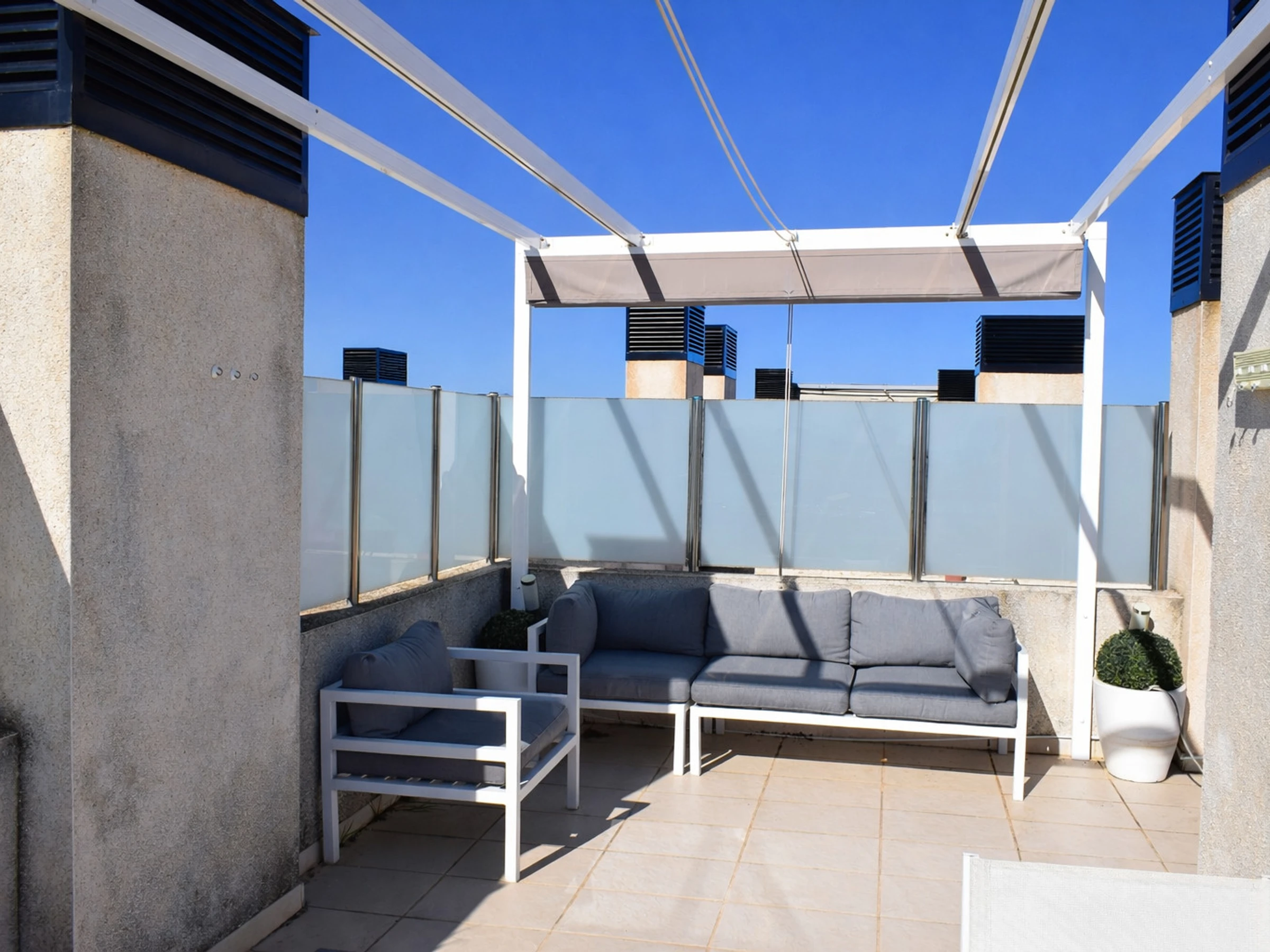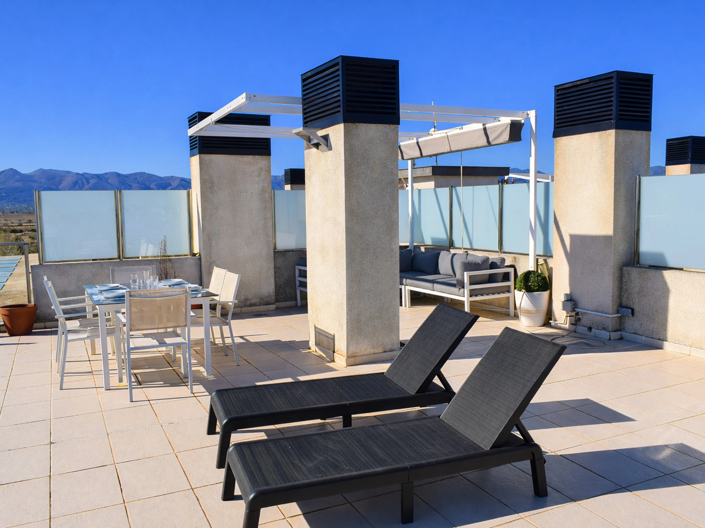 Este solárium convierte el ático en una opción ideal para quienes valoran la privacidad, el espacio exterior y la posibilidad de tomar el sol sin salir de casa. Es perfecto para familias que quieren que los niños jueguen al aire libre con seguridad, para amantes del sol que buscan tranquilidad o para jinetes y acompañantes que desean relajarse tras las competiciones.