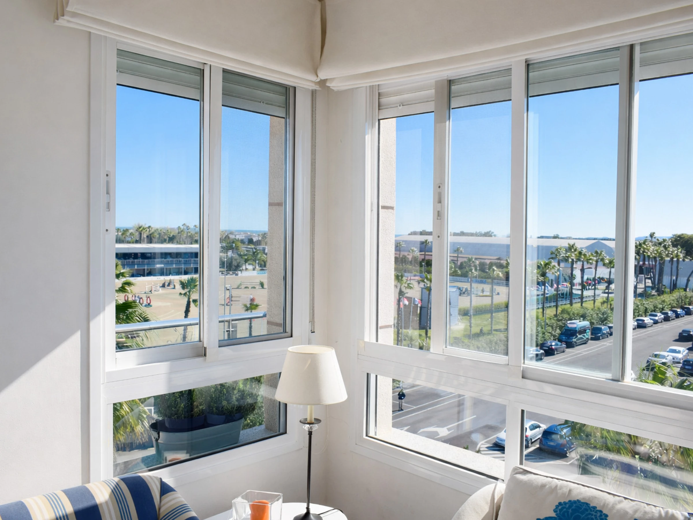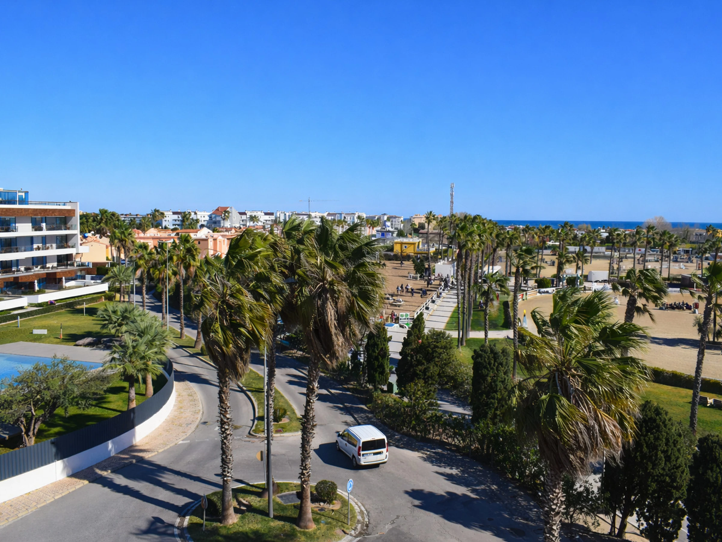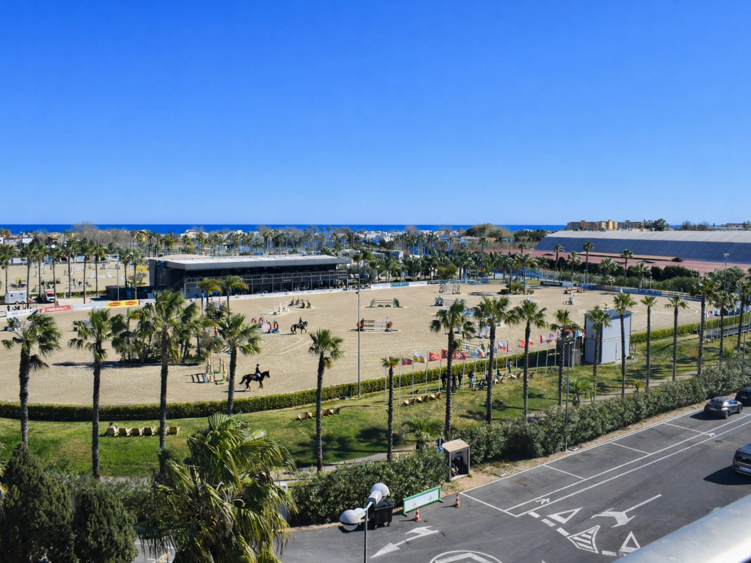 Situado en la Avenida Matisse, dentro de Oliva Nova Golf y literalmente frente al [hidden] (Mediterranean Equestrian Tour), este ático ofrece vistas directas a las pistas ecuestres, al mar Mediterráneo y a las montañas del entorno. La ubicación es inmejorable tanto para quienes participan en competiciones hípicas como para quienes desean disfrutar del ambiente internacional que caracteriza esta zona durante todo el año.
