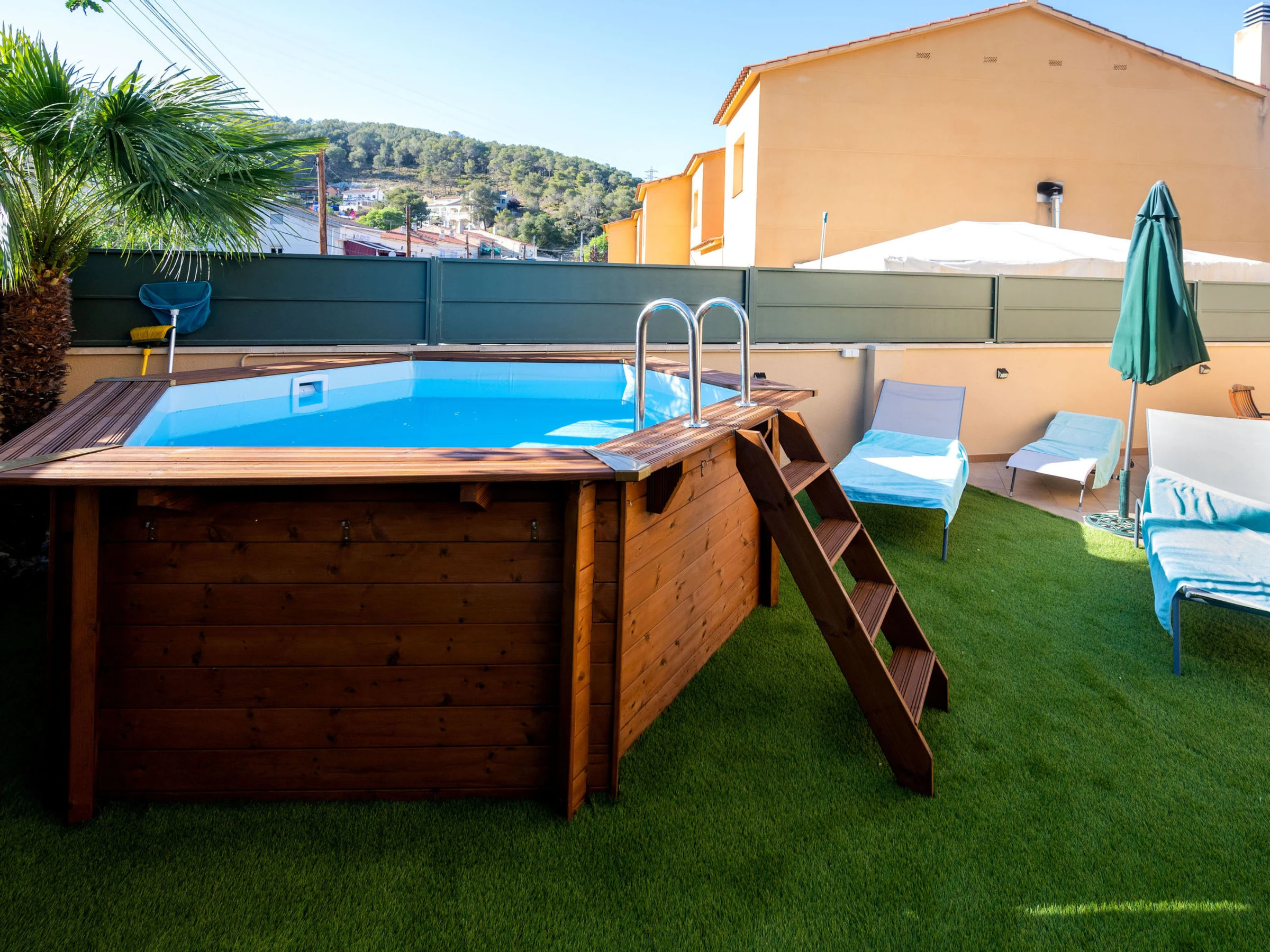 Casa adosada moderna, confortable de 2 plantas. Lugar tranquilo, soleado area residencial (villas). Privado: terreno (vallada), Piscina elevada (3,5 m diámetro, 120 cm de profundidad, Disponible por temporada: [hidden] - [hidden] Terraza-jardín, muebles de jardín, barbacoa, Aparcamiento (cubierto), posibilidad de aparcamiento en la calle. Tienda, supermercado 200 m, restaurante, bar 120 m, panadería 200 m, parada autobús "Can Milà" 100 m, estación de tren "Sitges" 10 km. Atracciones en los alrededores: Barcelona 46 km, Sitges 9 km, Tarragona 63 km, Port Aventura 75 km. El propietario no acepta grupos de adolescentes/jóvenes. Vecindario muy sensible a ruidos. Se ruega respetar la tranquilidad y normas de buen comportamiento.