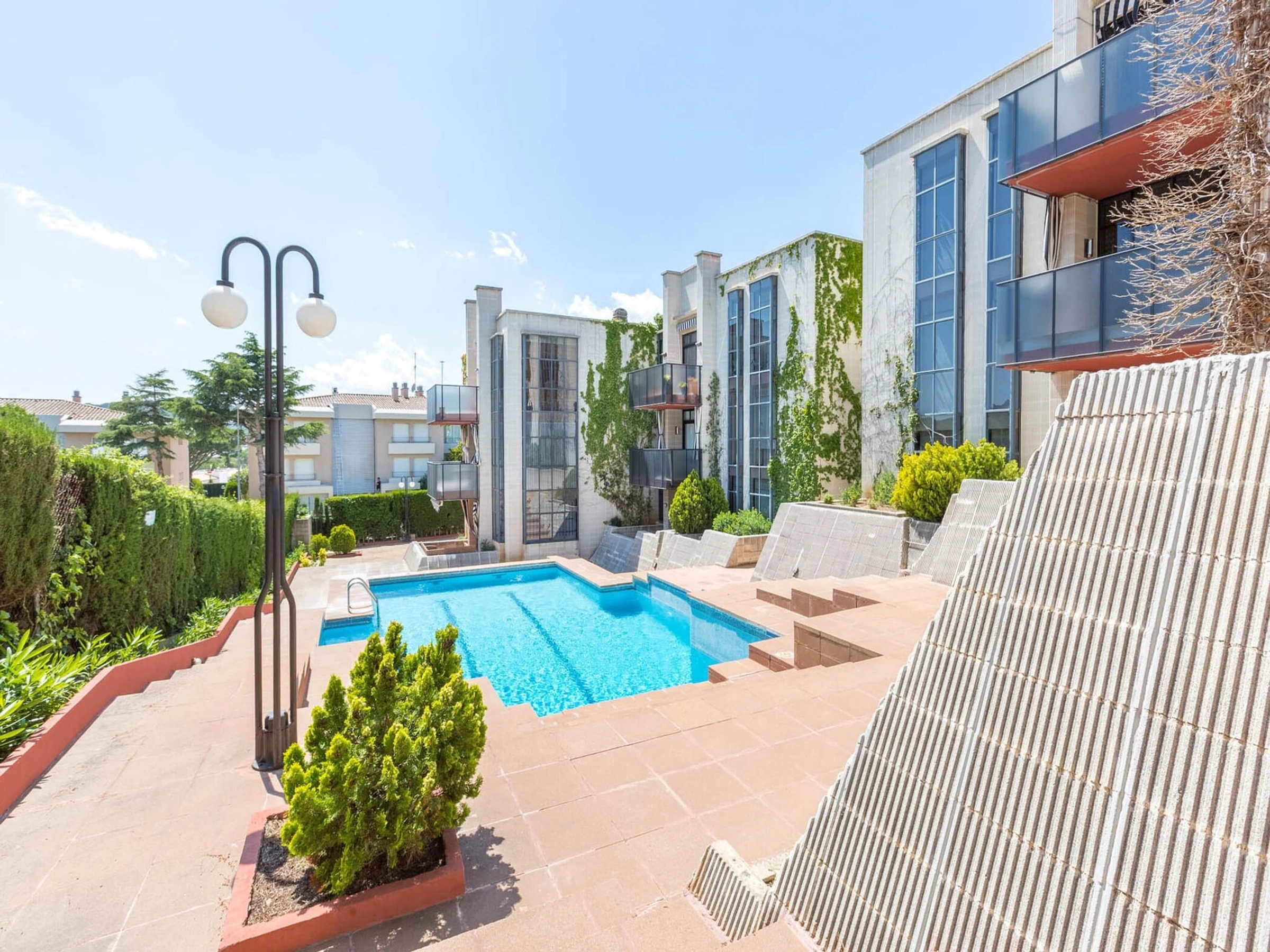 Este espacioso apartamento ofrece un refugio cómodo para hasta ocho huéspedes, con cuatro habitaciones bien equipadas. Ubicado en una zona ideal para familias, ofrece un ambiente acogedor para una estancia relajante. Los huéspedes pueden disfrutar del aire fresco en la terraza privada o aprovechar la piscina comunitaria. Las comodidades modernas, como lavadora, plancha y wifi, garantizan una experiencia sin complicaciones. Hay un televisor disponible para entretenimiento y el estacionamiento en el mismo edificio agrega comodidad adicional. El apartamento está diseñado para ofrecer comodidad y practicidad para familias o grupos.