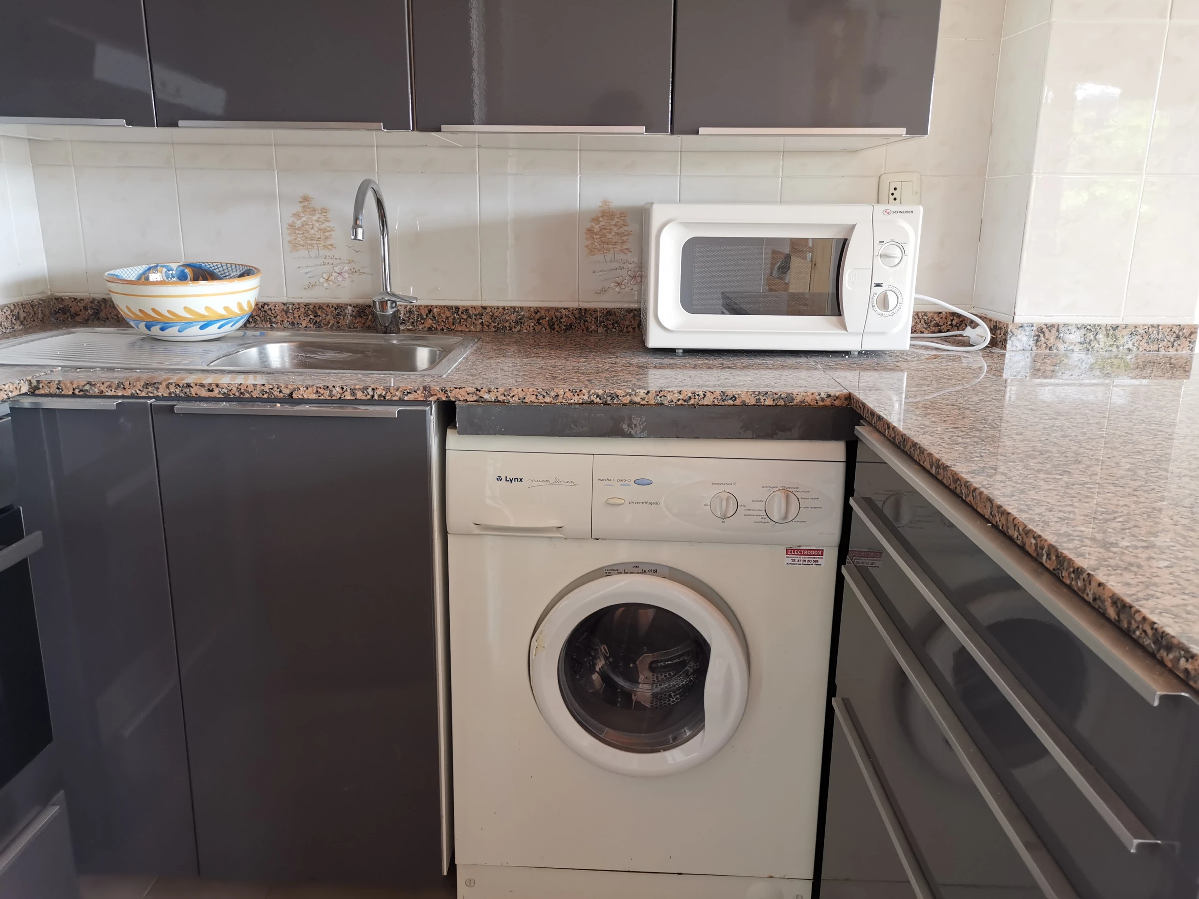 Dispone de jardín, terraza, lavadora, plancha, aire acondicionado en todo el alojamiento, piscina comunitaria+infantil, parking aire libre en mismo edificio, 1 Televisor.