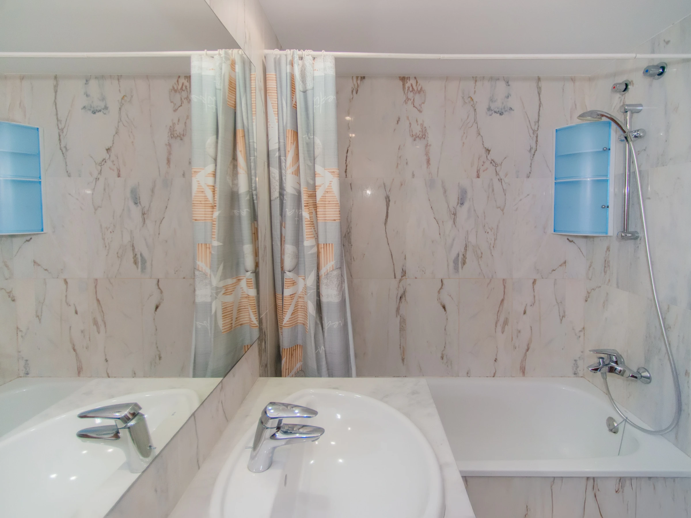 Los dos cuartos de baño ofrecen comodidad: uno con bañera y el otro con ducha, para que todos puedan prepararse para un día activo.