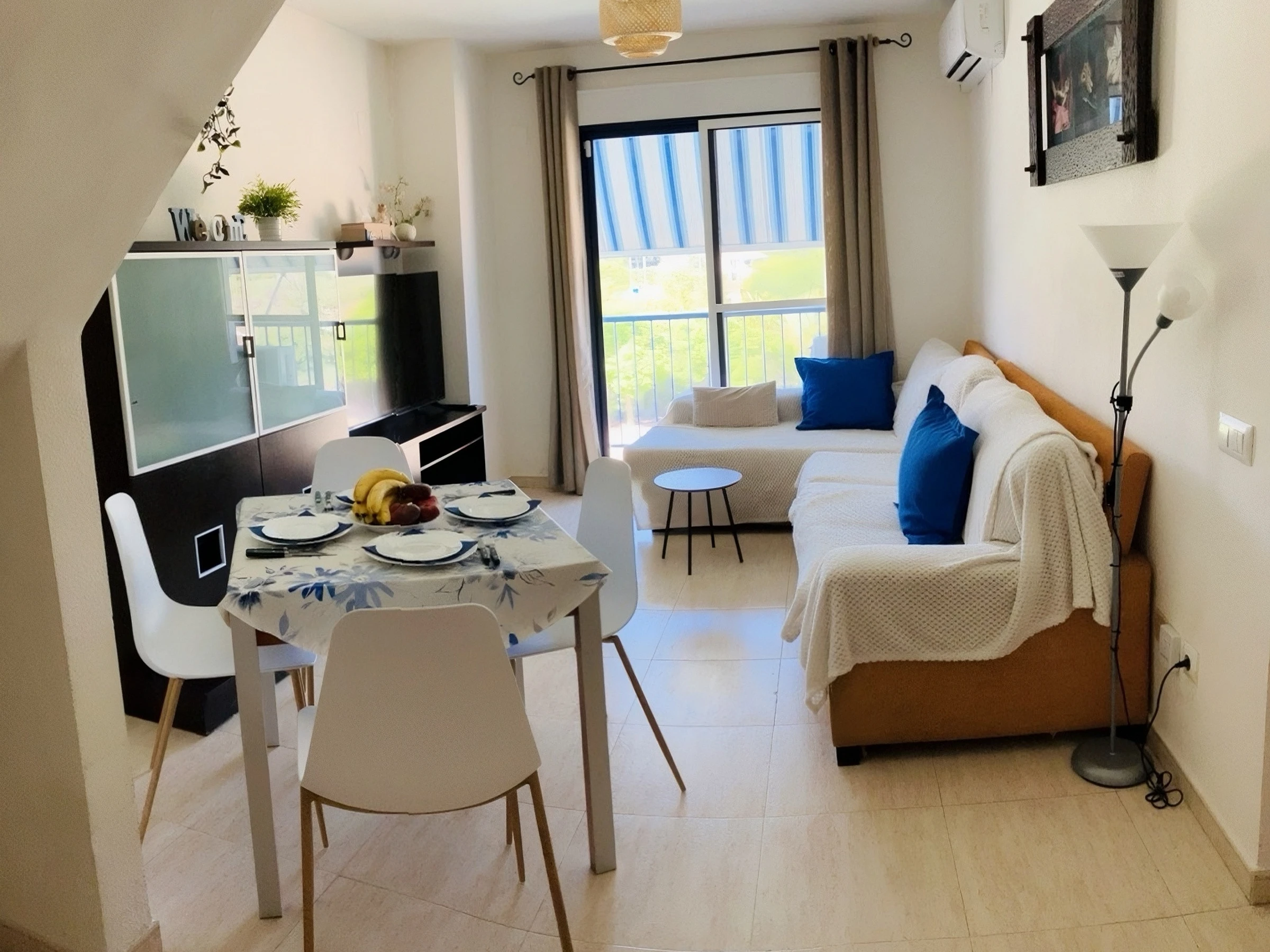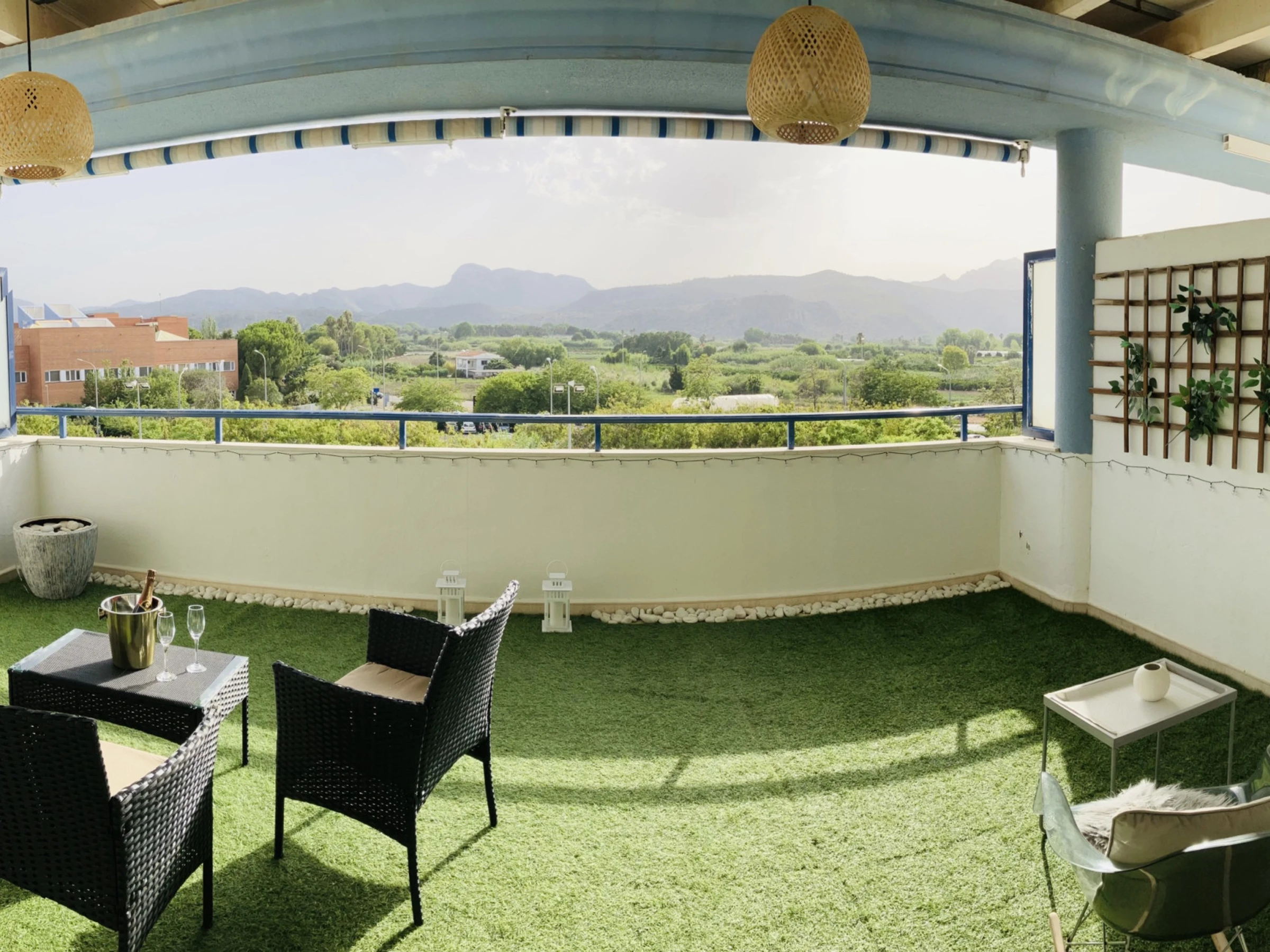 Cuenta con una terraza superior ático, equipada con toldos, de orientación SurOeste equipada con mesa y sillas, perfecta para relajarse al aire libre y pasar unas veladas y tardes inolvidables. Ofrece servicio WIFI, ventilador de techo en el dormitorio principal, y AC en salón-comedor y dorm. principal. Incluye plaza de garaje.