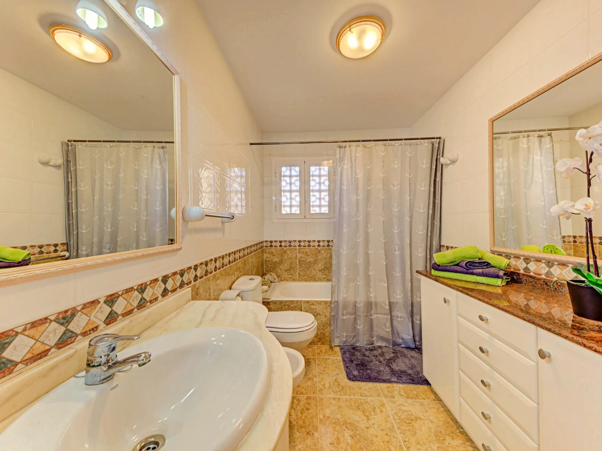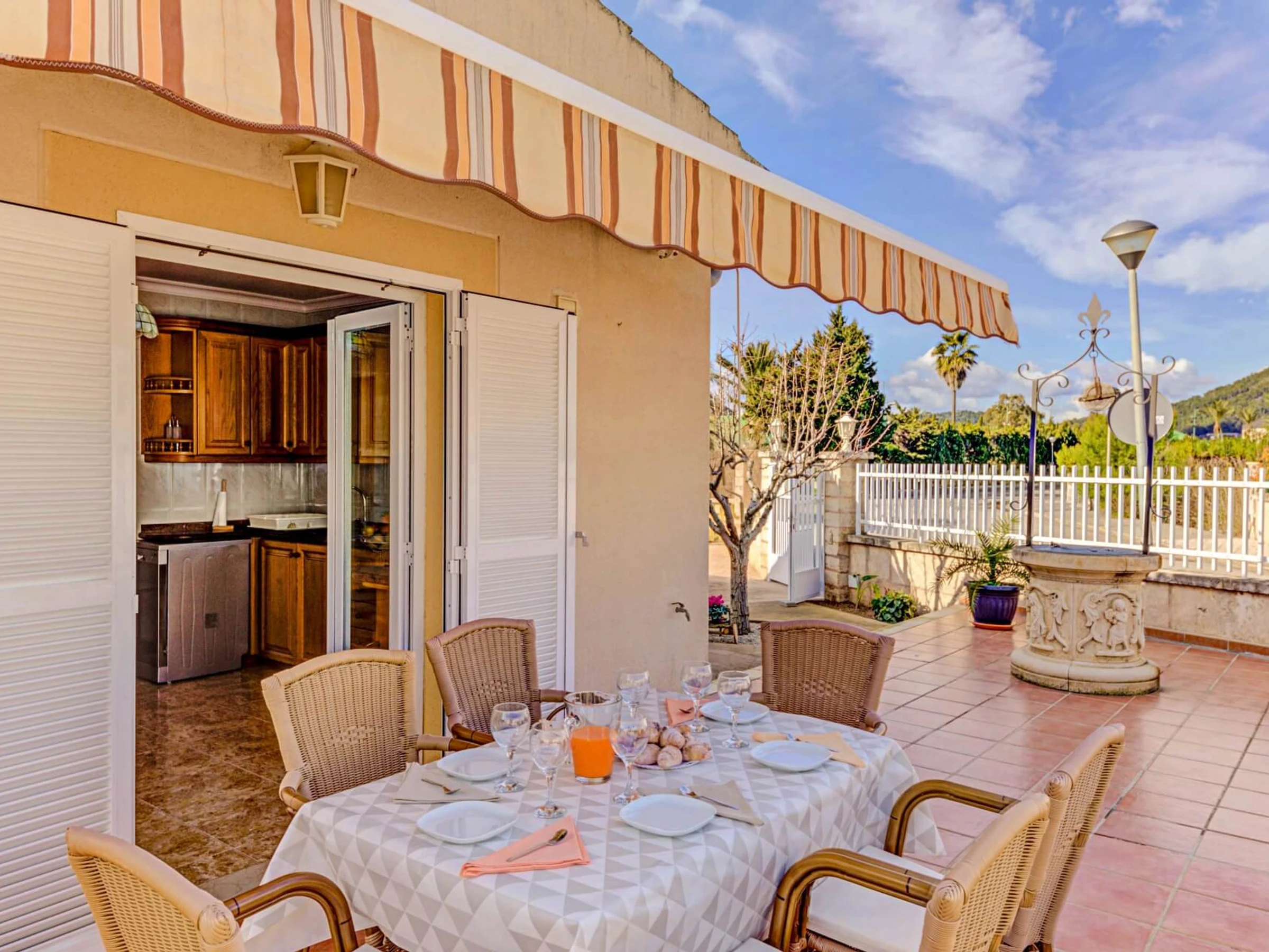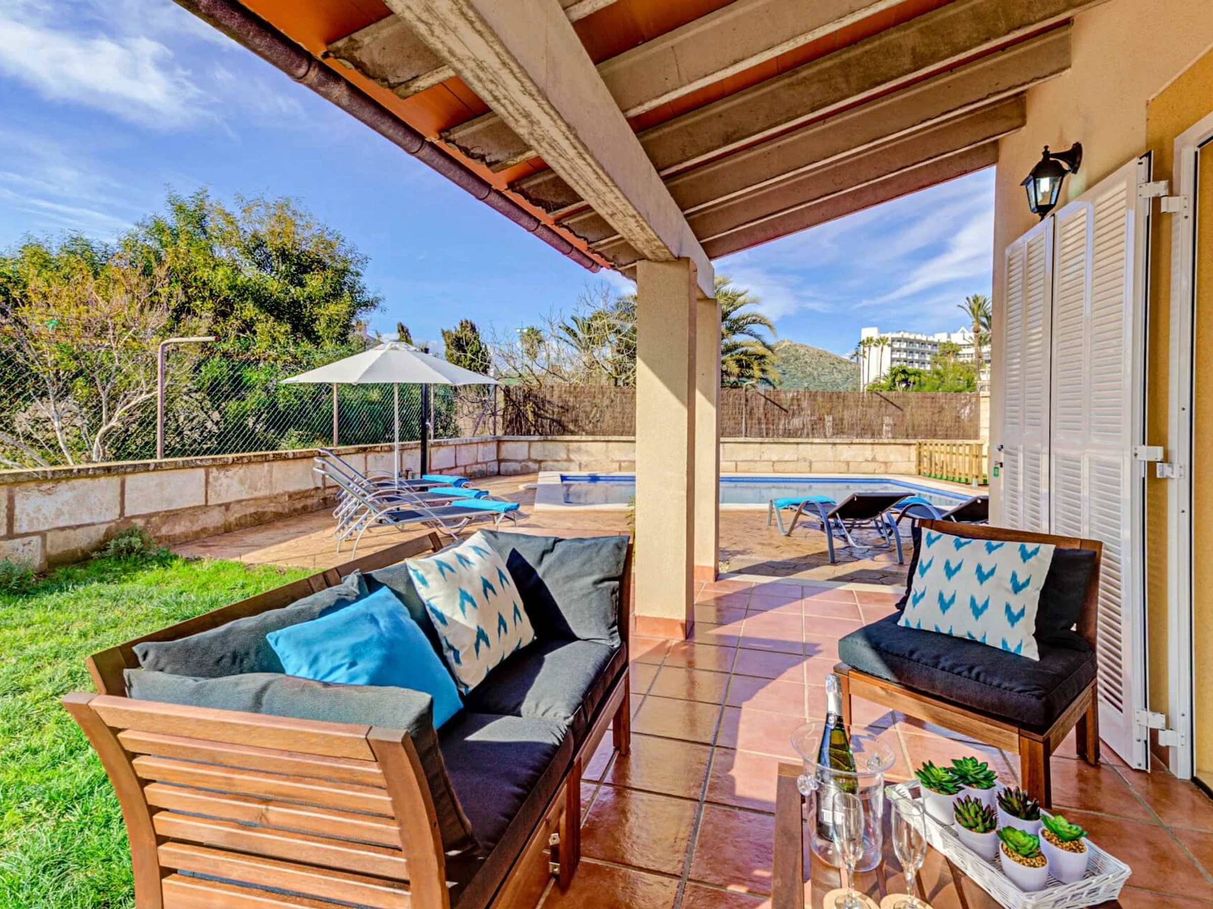 En el exterior, la villa está rodeada de agradables jardines y terrazas pavimentadas, perfectas para tomar el sol y disfrutar de la brisa mallorquina. La piscina privada mide 6,5 m x 3,7 m (profundidad entre 1,1 m y 1,4 m) y está equipada con 6 tumbonas. Hay zonas de estar cómodas bajo la terraza con sombra, así como muchas oportunidades para comer al aire libre.