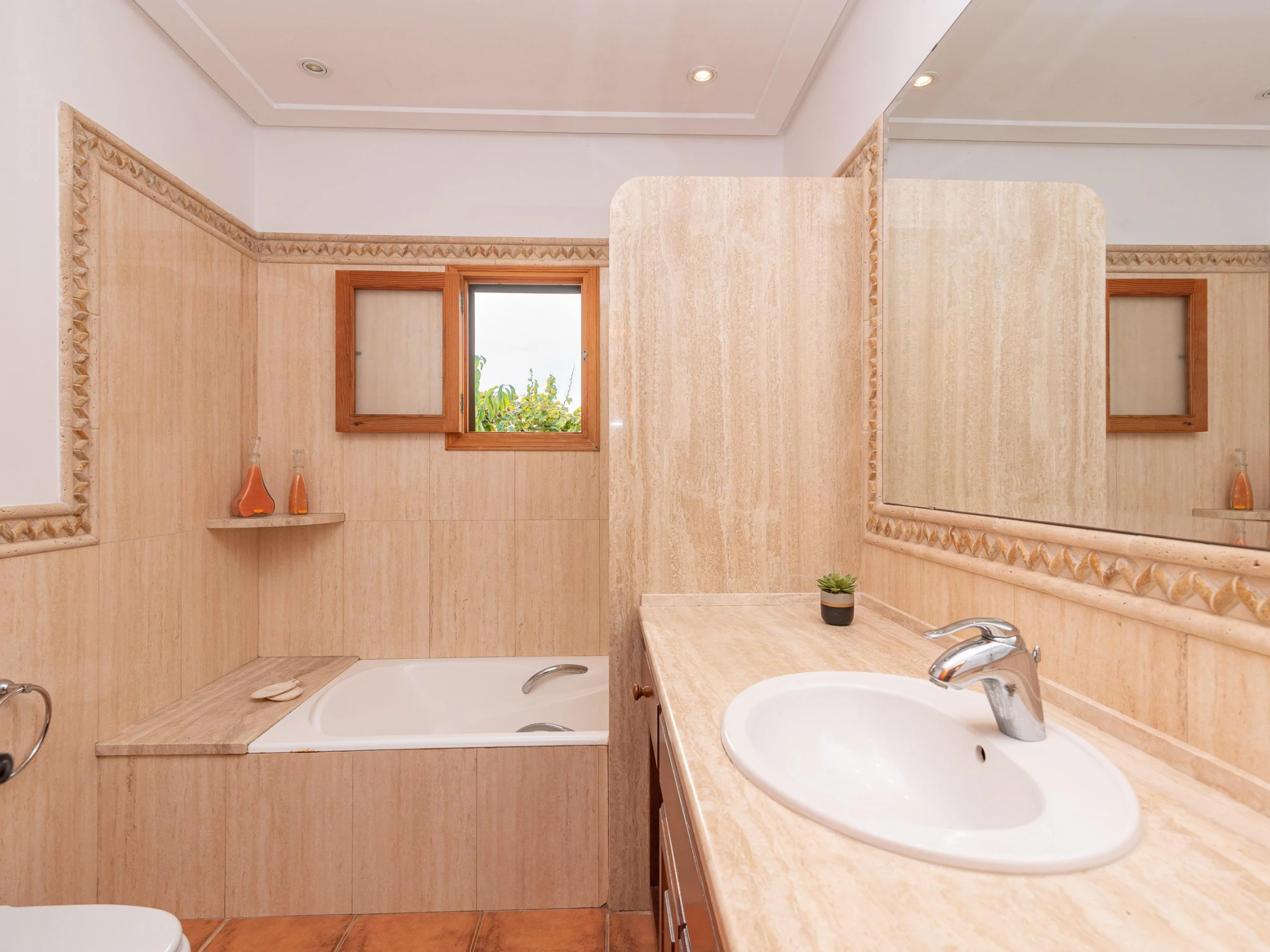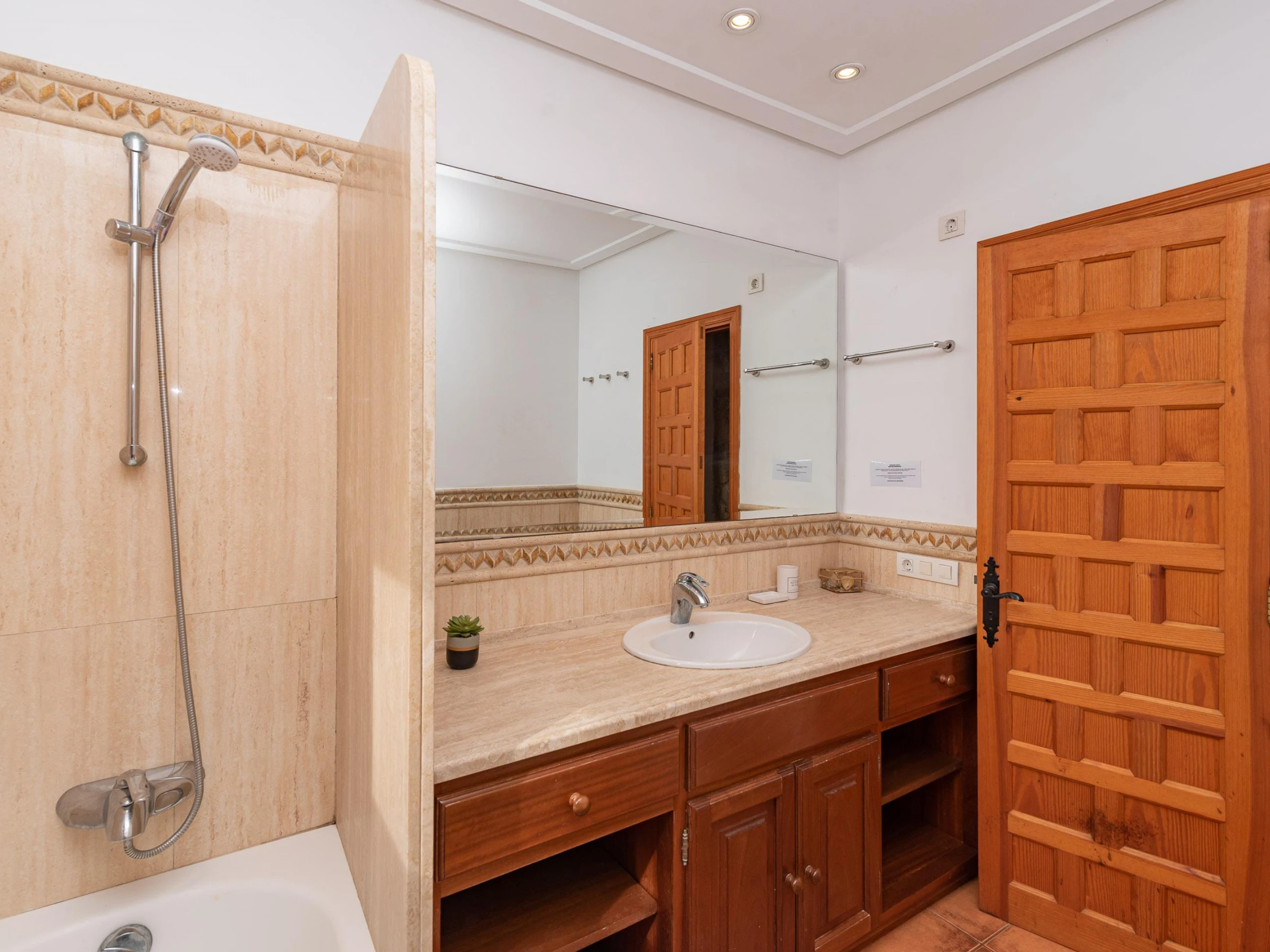 La villa cuenta con 3 acogedores dormitorios y 2 baños, distribuidos de manera práctica para ofrecerte comodidad y privacidad. Uno de los dormitorios es una habitación doble con baño en suite, mientras que las otras dos son individuales y comparten un baño.