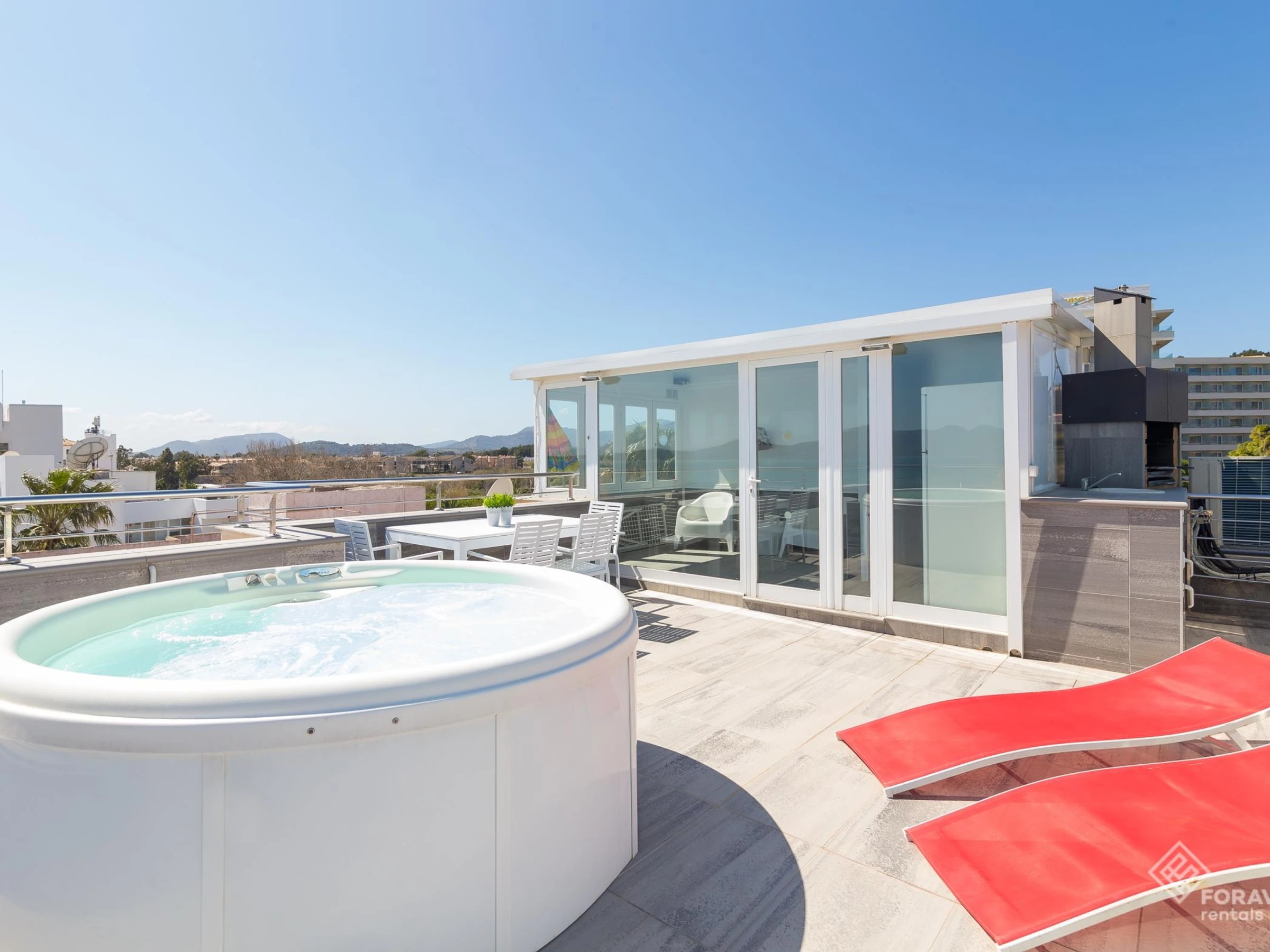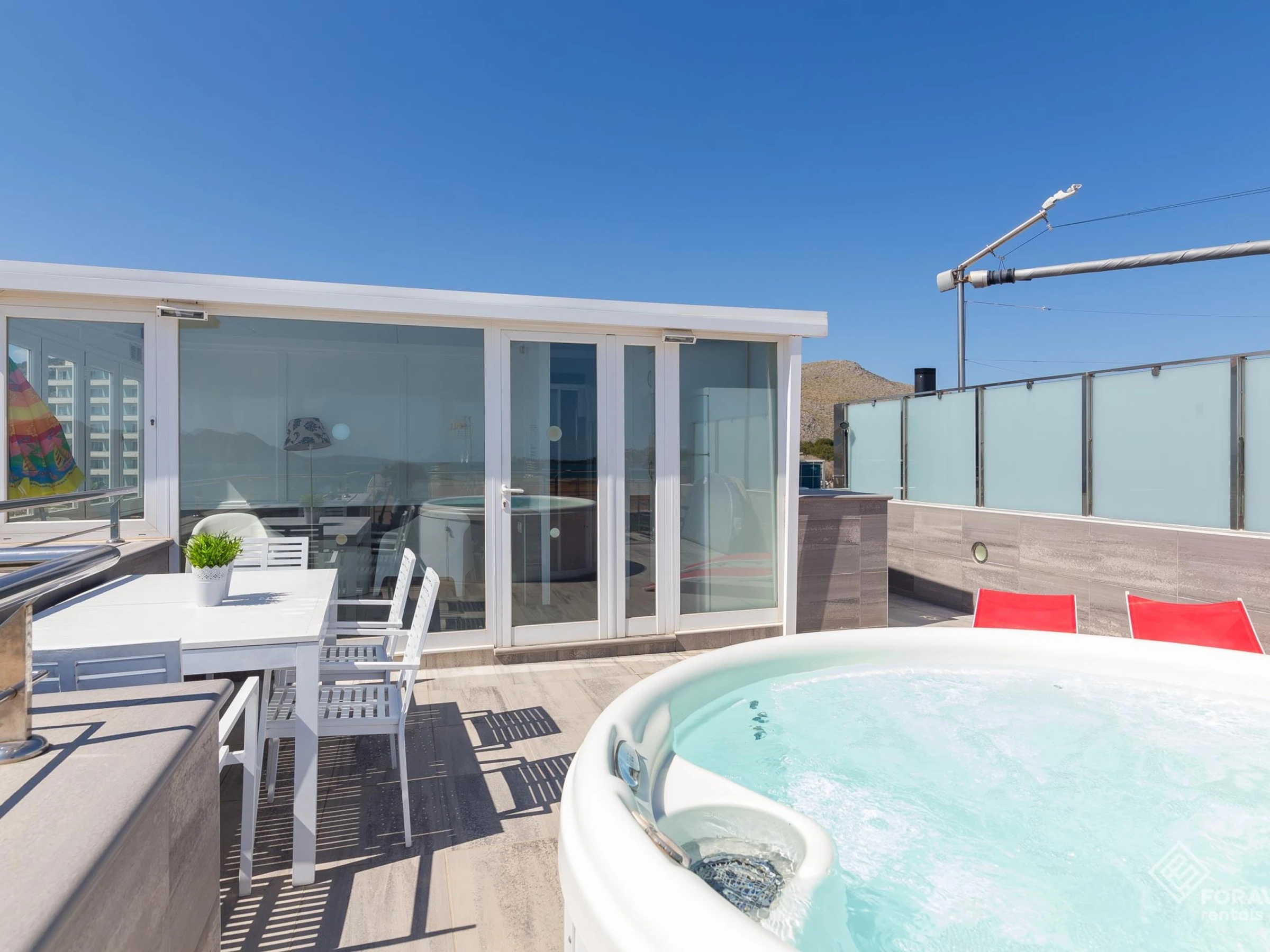 Este fantástico apartamento se encuentra en Port de Pollença, una de las zonas turísticas más cotizadas por su ambiente familiar y tranquilo. Recientemente reformado, el alojamiento está decorado con gran gusto y cuenta con todo lo necesario para que paséis unas fantásticas vacaciones en la playa. Pero sin duda lo más impresionante de 'Tamarells 11' es su espectacular terraza con vistas a la playa ubicada en el ático. El 'rooftop' del alojamiento está completamente amueblado y dispone de un fantástico jacuzzi donde relajarse y disfrutar del maravilloso clima que ofrece la isla.