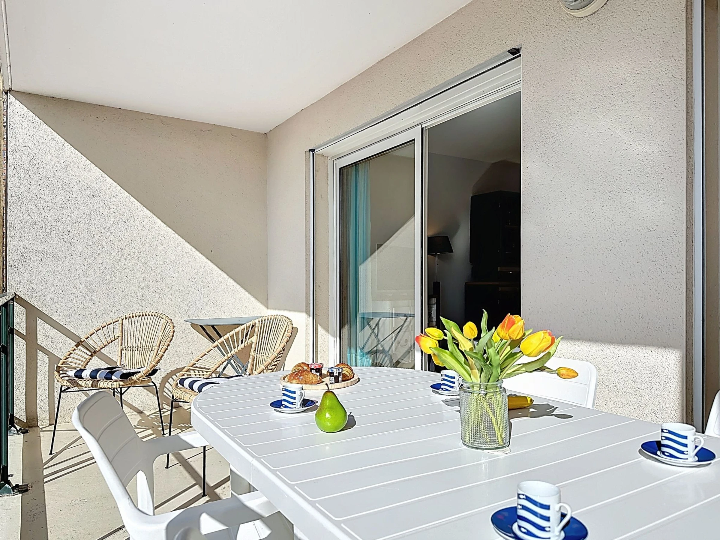 "Le Cabestan - Appt n°5", apartamento de 3 estancias 60 m2 en el 1° piso. Con mobiliario bonito y moderno: salón-comedor con TV (pantalla plana). 1 dorm. con 1 cama de matrimonio (1 x 160 cm, 200 cm de longitud). 1 dorm. con 2 camas (90 cm, 190 cm de longitud). Cocina (horno, lavavajillas, 3 Placas de inducción, tostadora, hervidor de agua eléctrico, microondas, cafetera eléctrica, Cápsulas de café (Nespresso) extra). Ducha, WC separado. Calefacción eléctrica. Balcón 10 m2, orientación sur. Muebles de balcón, tumbonas (2). El alojamiento dispone de: lavadora, trona, cuna, secador de pelo. Internet (Wifi, gratis). Plaza de aparcamiento n. 2 (vallada, 1 coche). A tener en cuenta: apartamento para no fumadores. Detector de humo. Oferta de un particular según el art. 155, IV del CGI. [hidden]