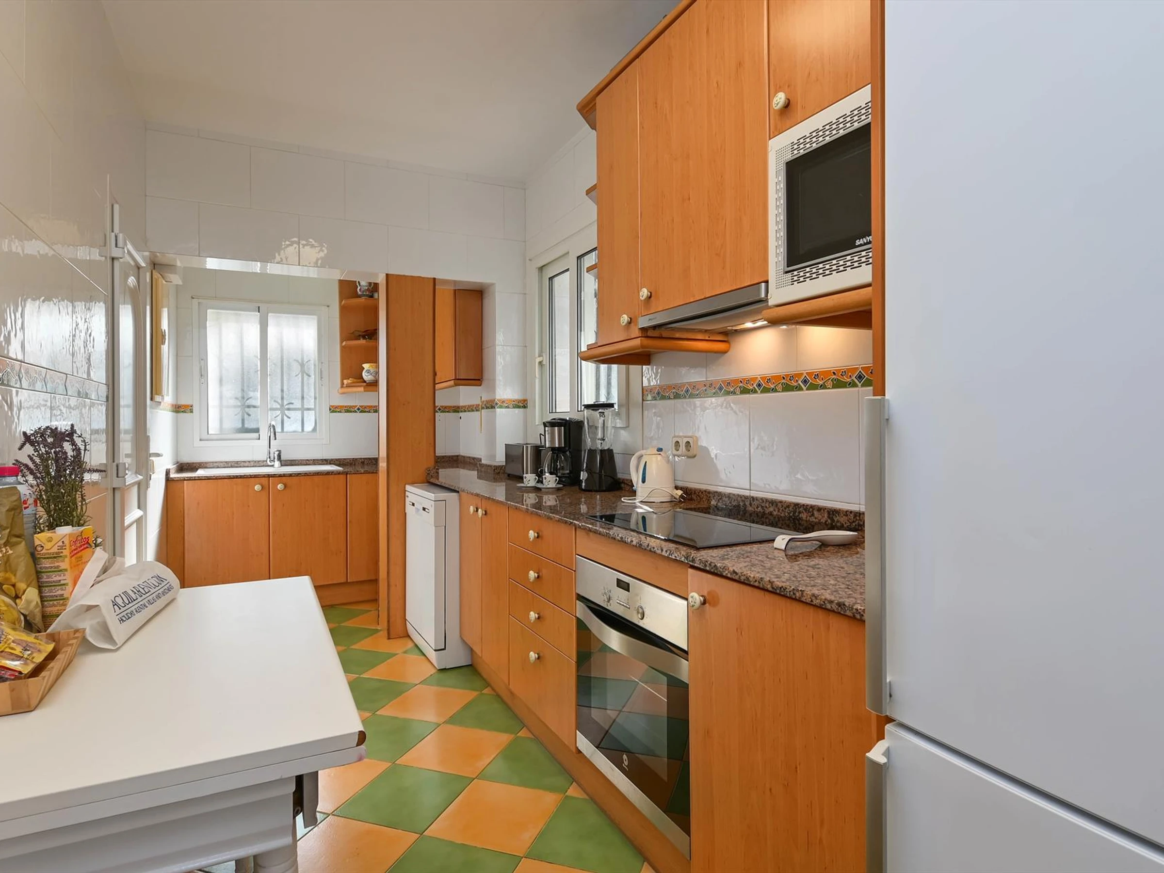 CocinaCocina con vitrocerámica, horno eléctrico, microondas, lavavajillas, frigorífico combi, cafetera, hervidor eléctrico, batidora, tostadora y exprimidor.