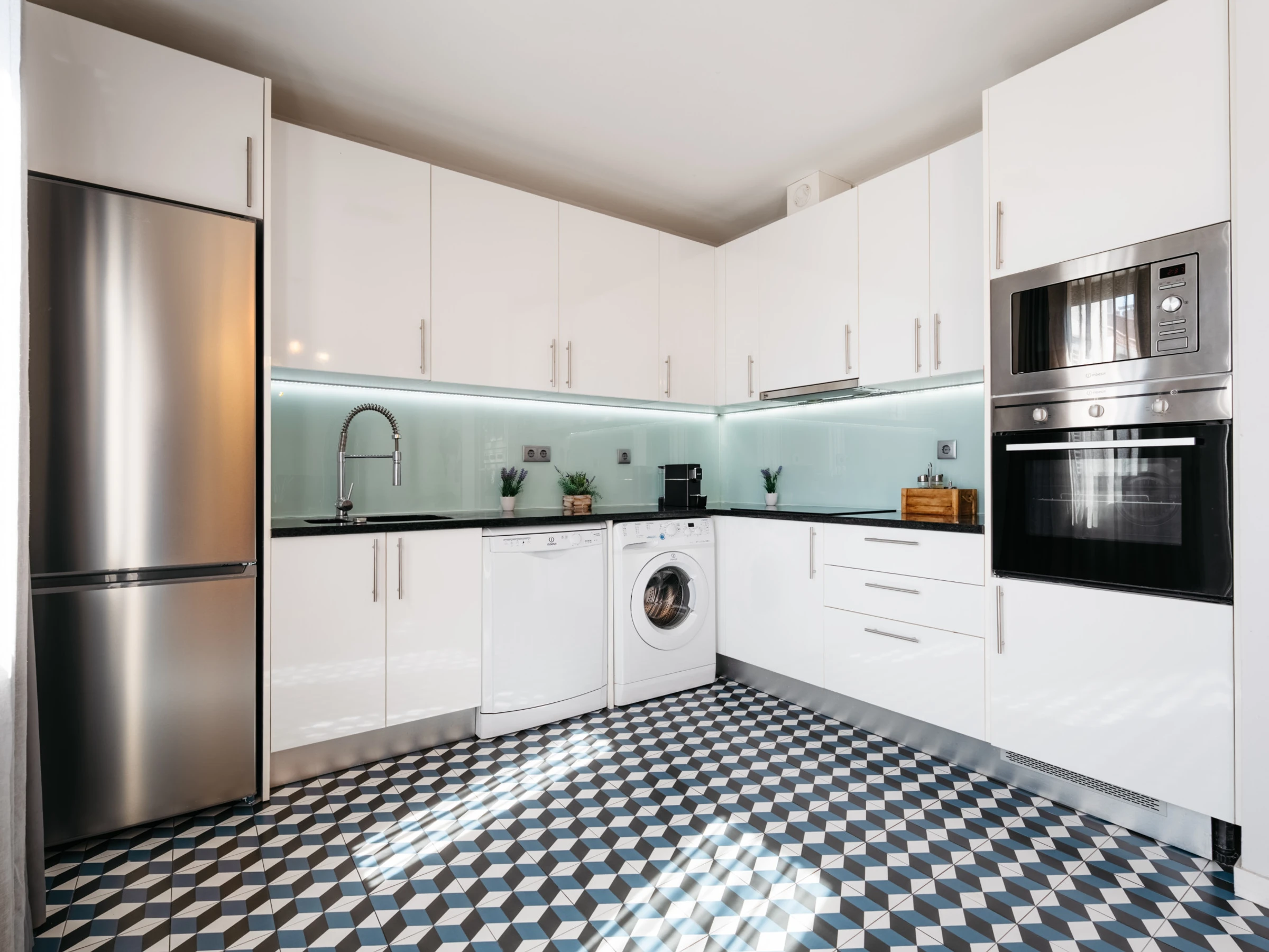 • Utensilios de cocina, placa de inducción, congelador, freidora, hervidor eléctrico, frigorífico, exprimidor, tostadora, horno y microondas