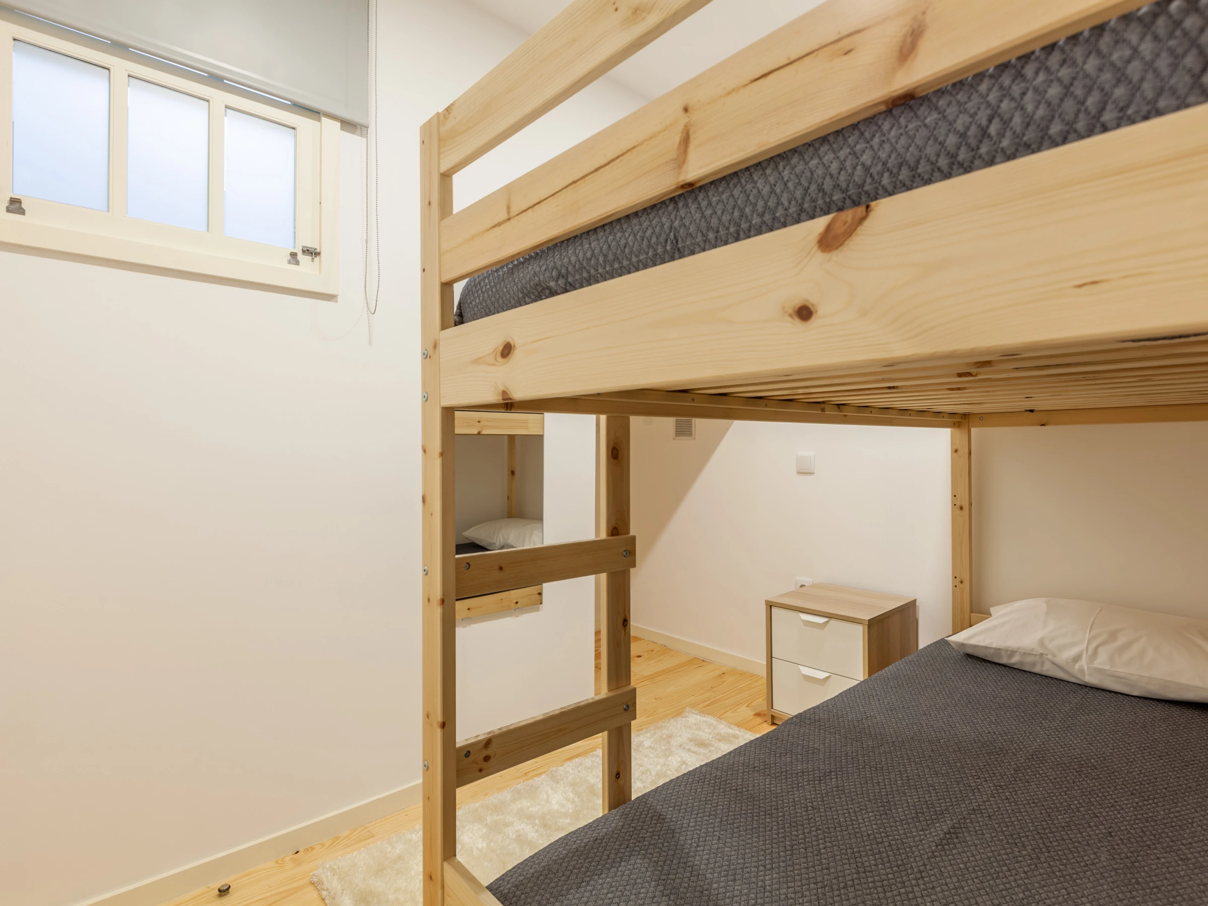 Este apartamento es cómodo, luminoso y práctico. Tiene 17m². Es un apartamento de un dormitorio con una litera en la habitación, en el que pueden caber 2 personas. Dispone de un balcón y de una terraza compartida de 20m² donde poder descansar o comer tranquilamente.