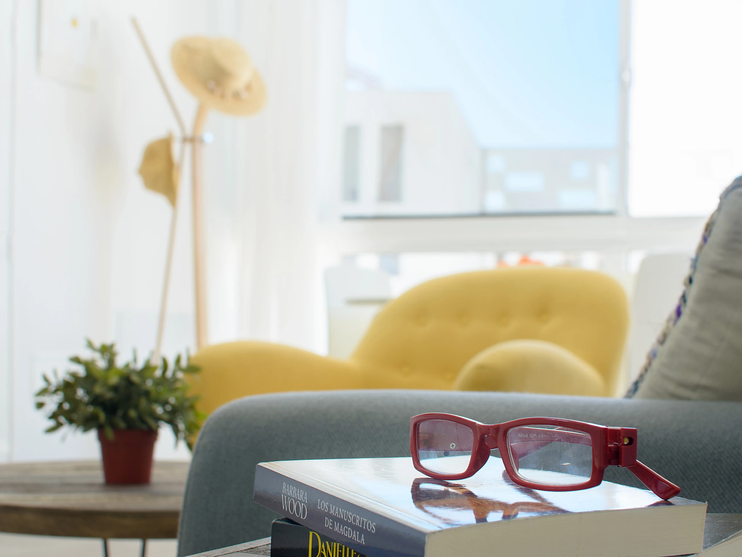 El salón ofrece un ambiente cómodo y acogedor, con sofá, aire acondicionado (frío/calor), Smart TV con canales vía satélite y conexión WiFi de alta velocidad (fibra óptica de 600 MB). También cuenta con un agradable espacio de comedor ideal para disfrutar de tus comidas.