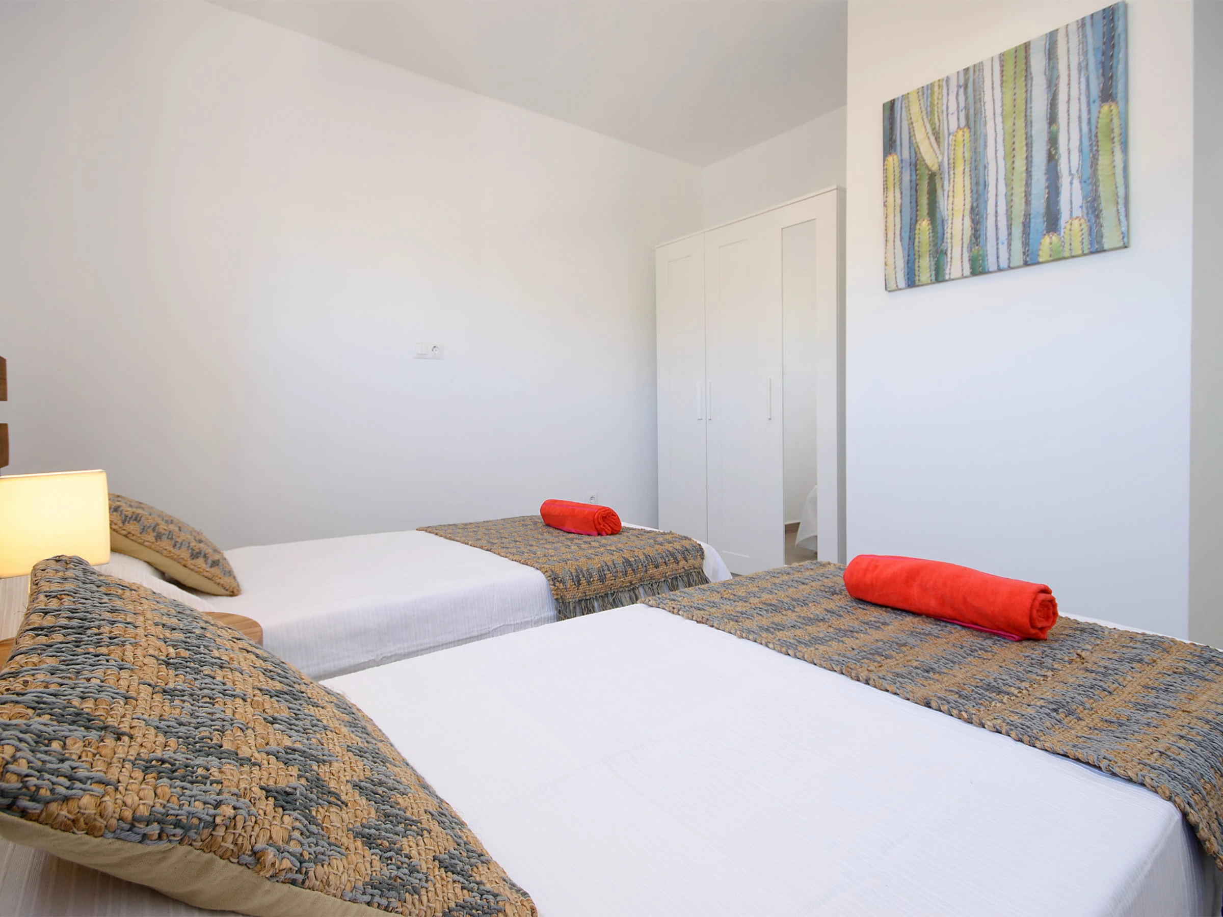 El dormitorio, funcional y confortable, dispone de dos camas individuales, mientras que el baño cuenta con una práctica ducha. Existe además la posibilidad de aparcamiento gratuito en la calle.