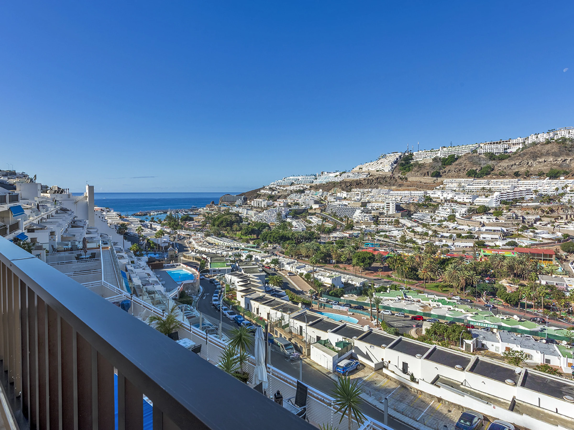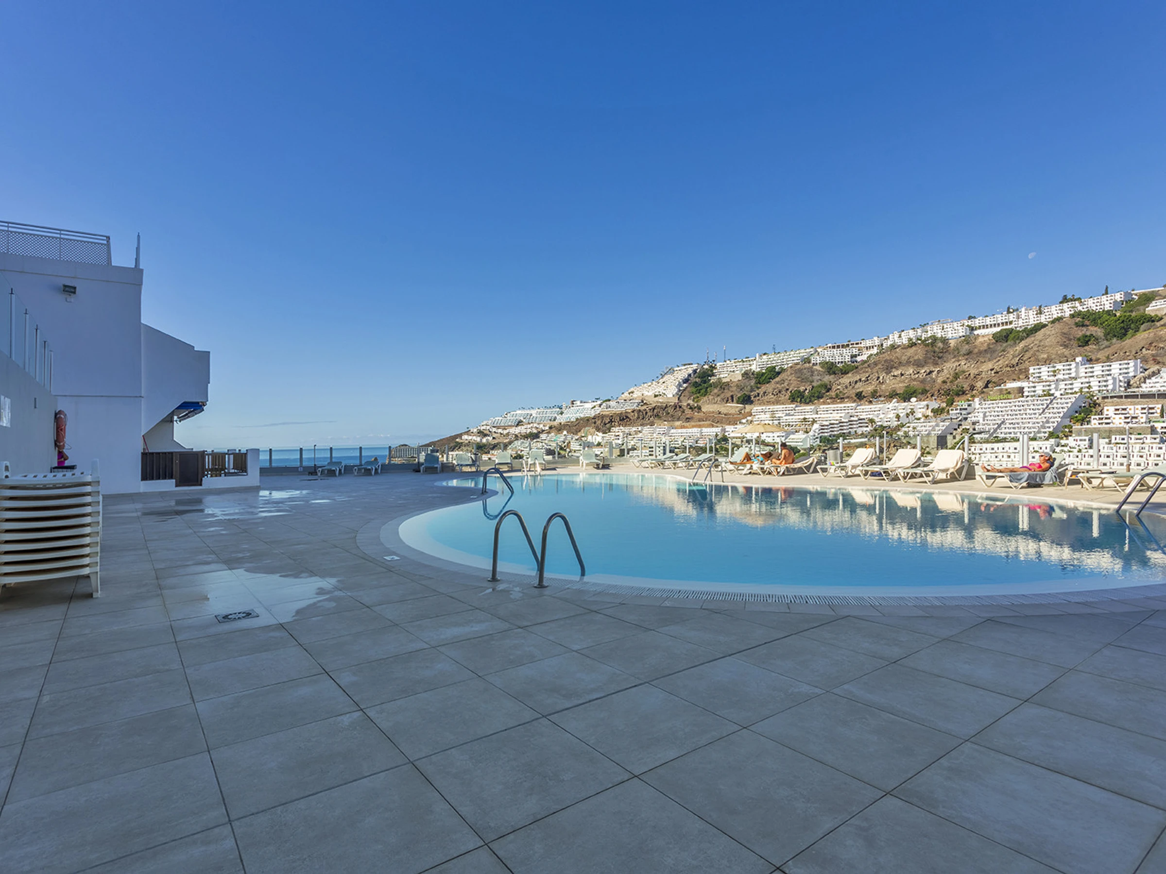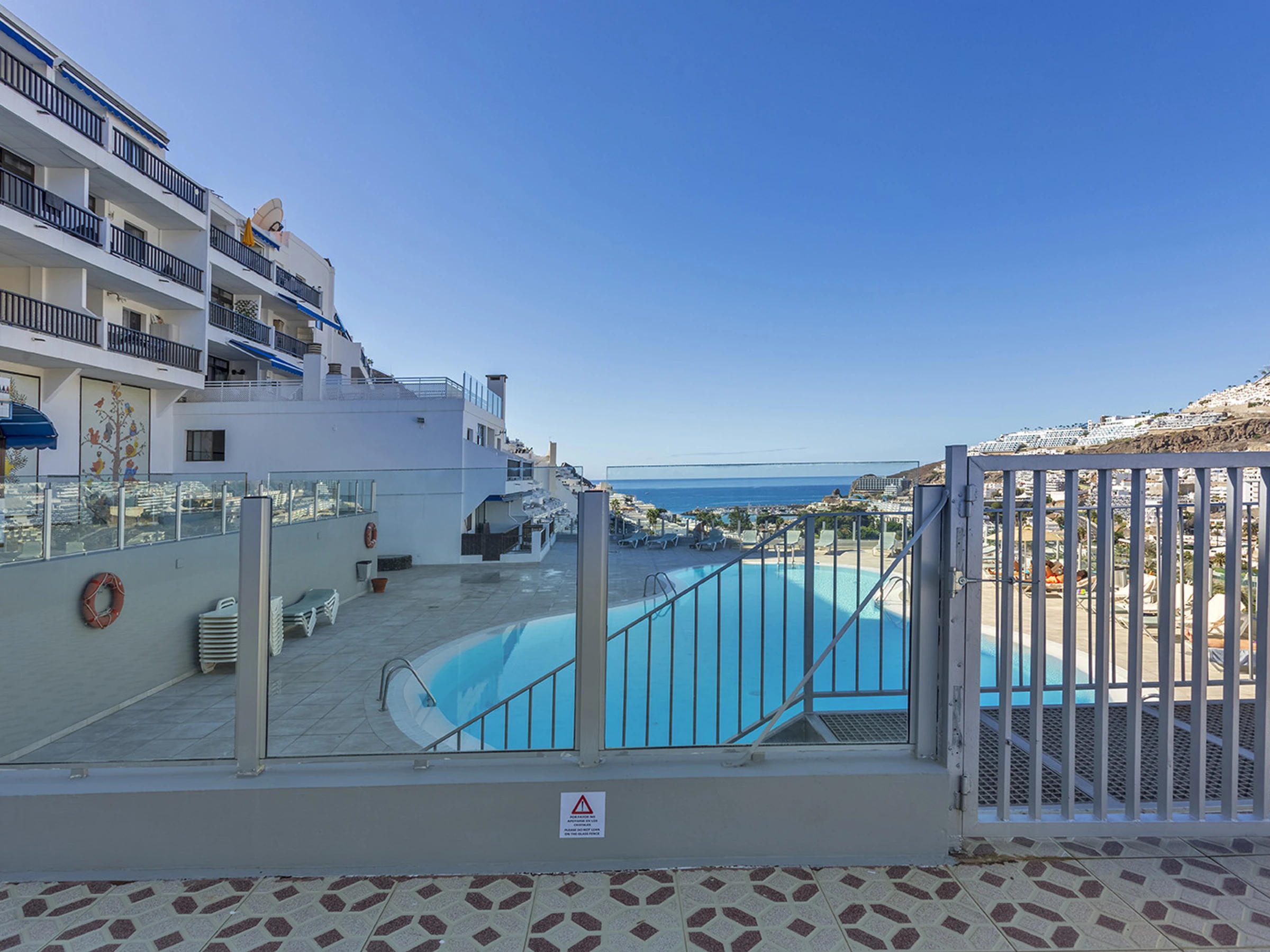 Estupendo apartamento completamente reformado y equipado con calidad y buen gusto, situado en la segunda planta de un gran complejo residencial con piscina climatizada y varios ascensores. El complejo se encuentra a pocos minutos a pie de las zonas comerciales y de la famosa playa de Puerto Rico. La propiedad consta de un amplio dormitorio con cama doble, baño con ducha, lavadora, cocina equipada, salón con sofá cama y televisión. El apartamento dispone de wifi y una estupenda terraza con vistas al mar y a la urbanización. En total pueden alojarse 4 personas (1 cama doble y 1 sofá cama doble).