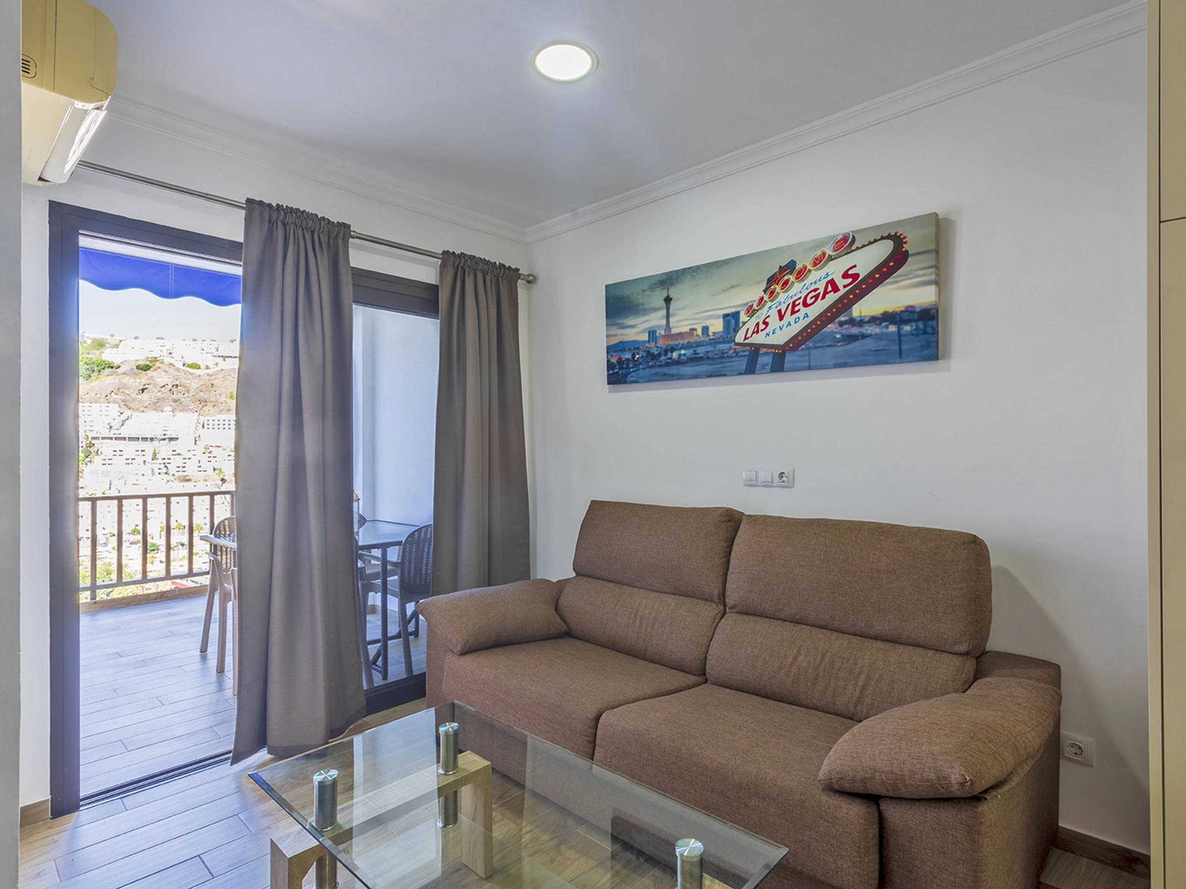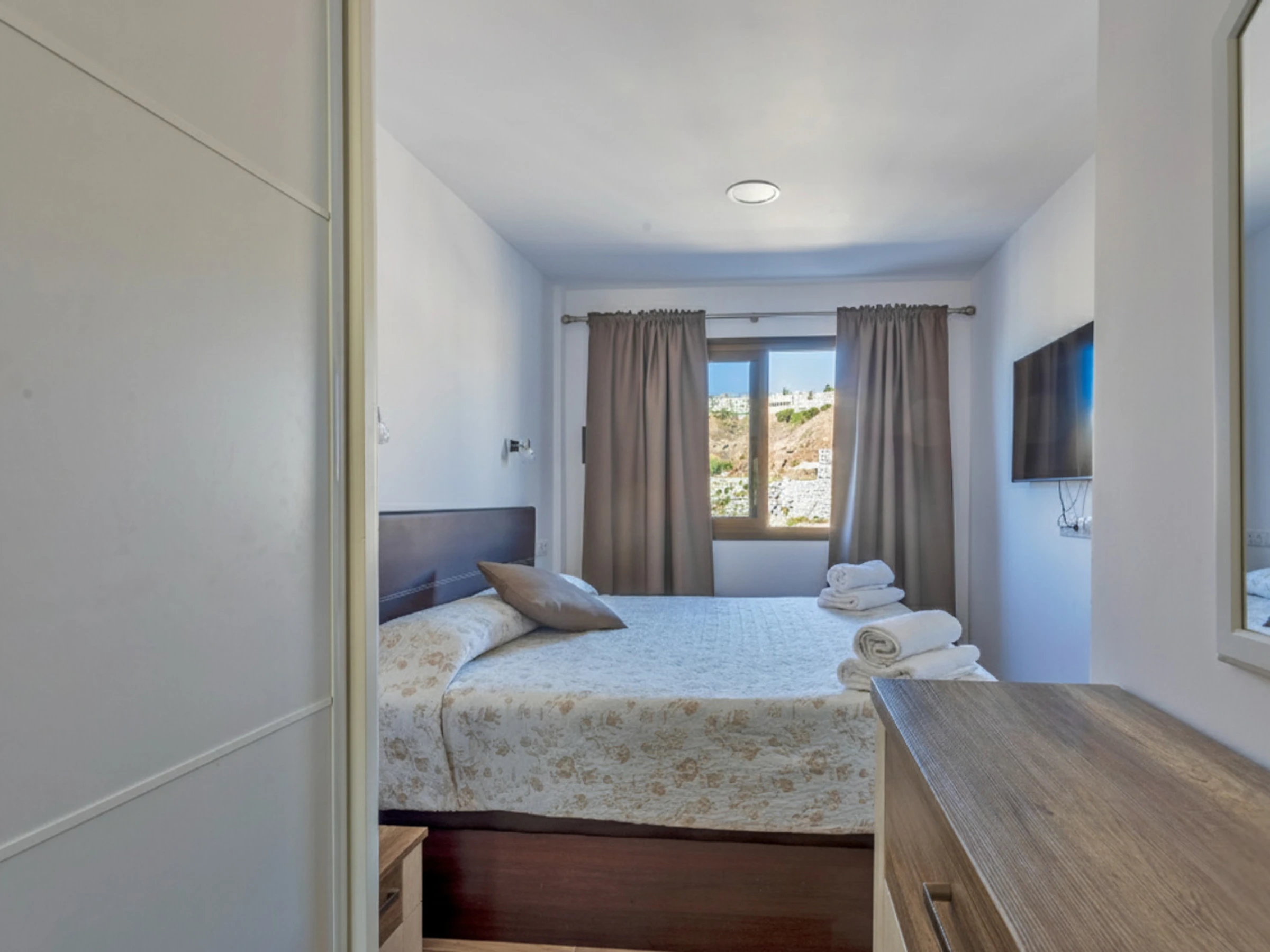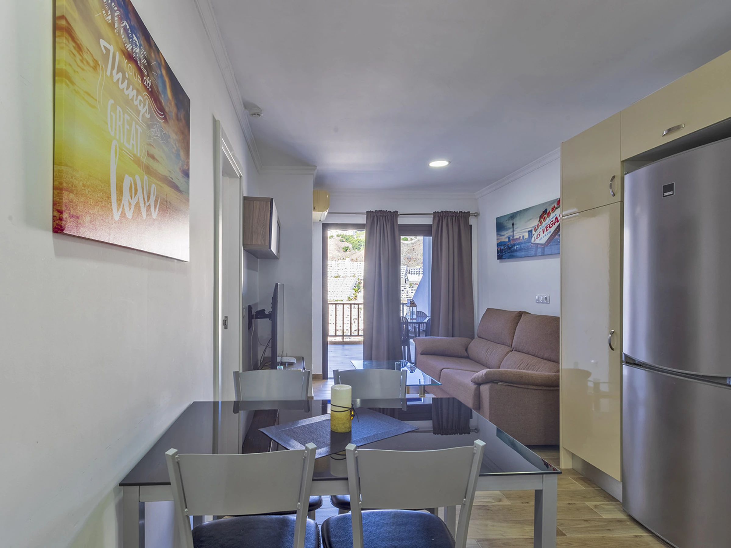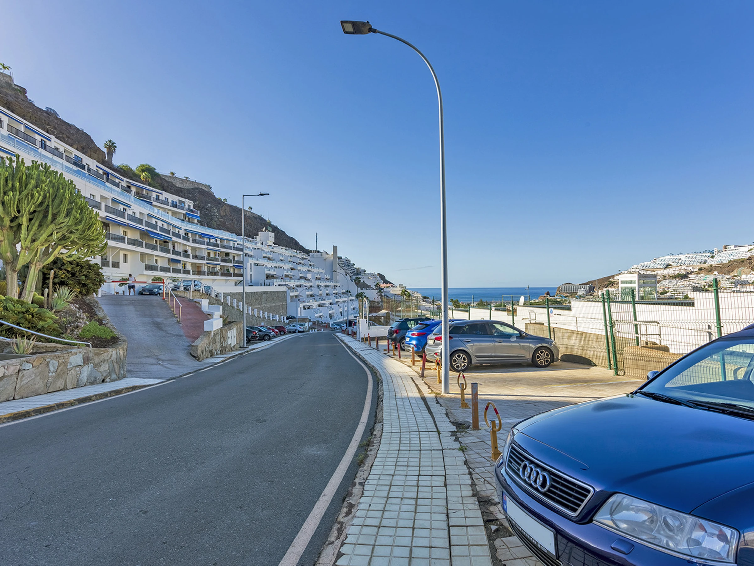 Estupendo apartamento completamente reformado y equipado con calidad y buen gusto, situado en la segunda planta de un gran complejo residencial con piscina climatizada y varios ascensores. El complejo se encuentra a pocos minutos a pie de las zonas comerciales y de la famosa playa de Puerto Rico. La propiedad consta de un amplio dormitorio con cama doble, baño con ducha, lavadora, cocina equipada, salón con sofá cama y televisión. El apartamento dispone de wifi y una estupenda terraza con vistas al mar y a la urbanización. En total pueden alojarse 4 personas (1 cama doble y 1 sofá cama doble).