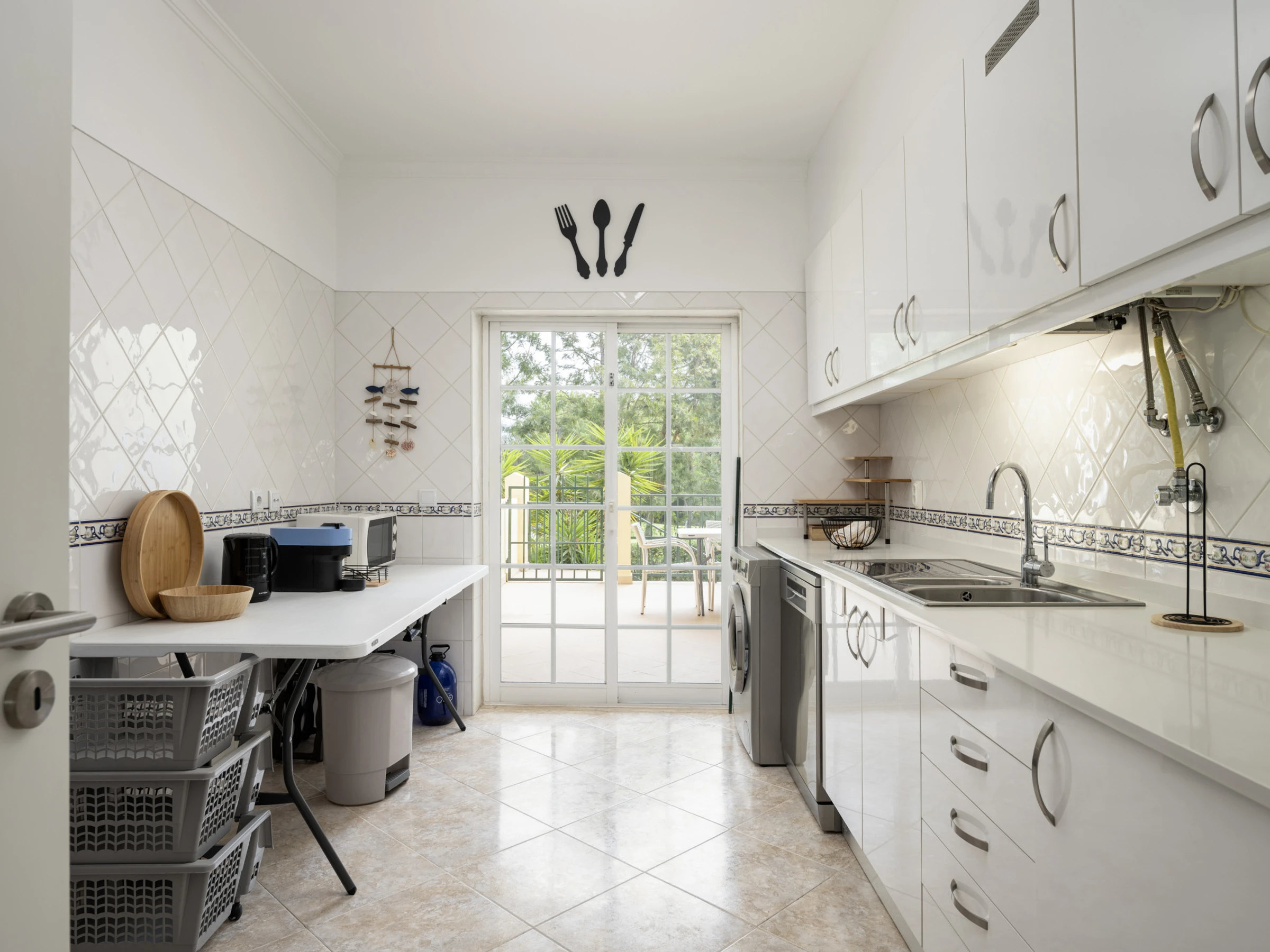 La cocina totalmente equipada es un verdadero punto fuerte, con electrodomésticos modernos como lavadora, frigorífico, lavavajillas, horno, microondas, cafetera y mucho más. Perfecta para quienes les gusta preparar comidas en casa.