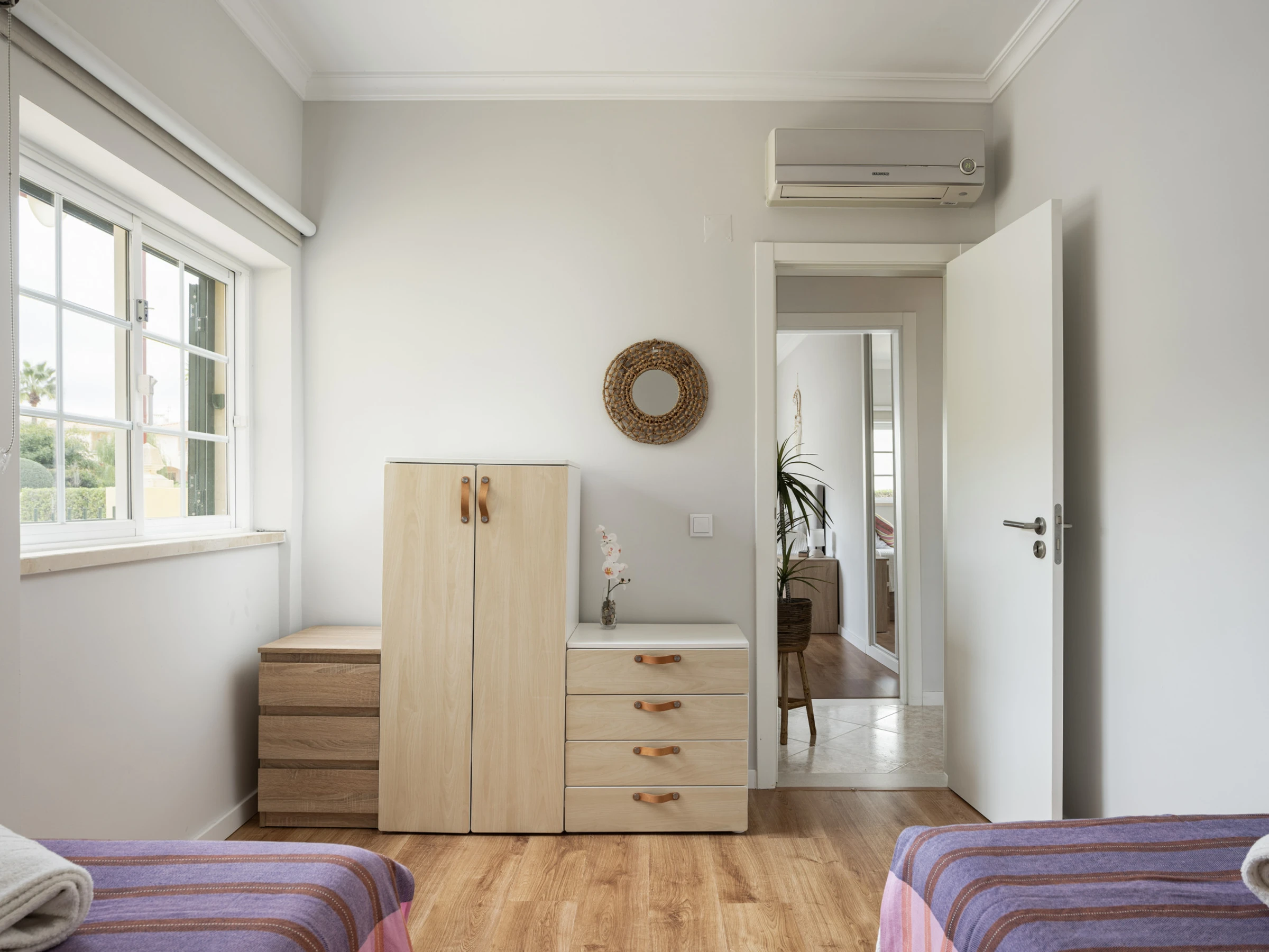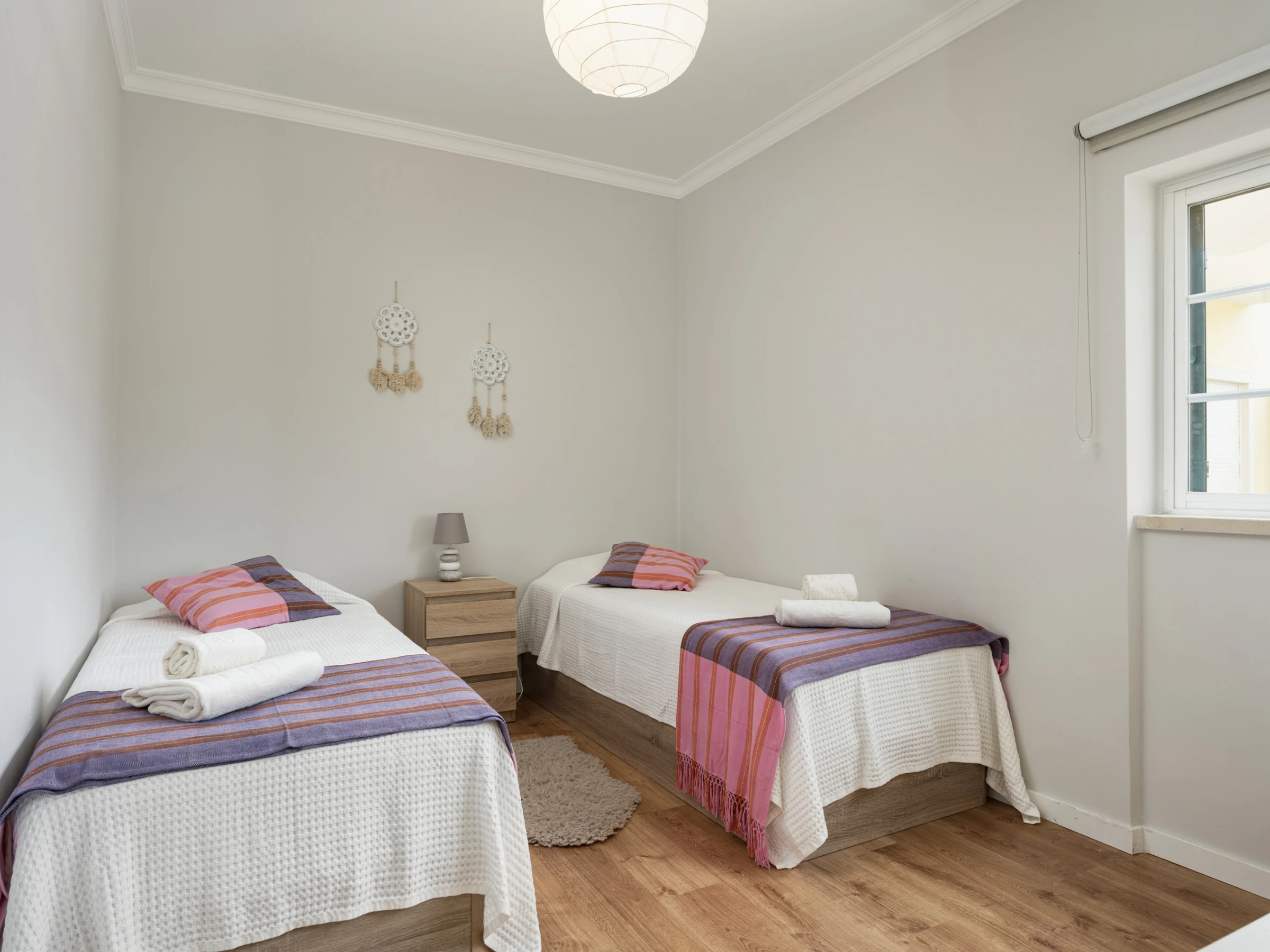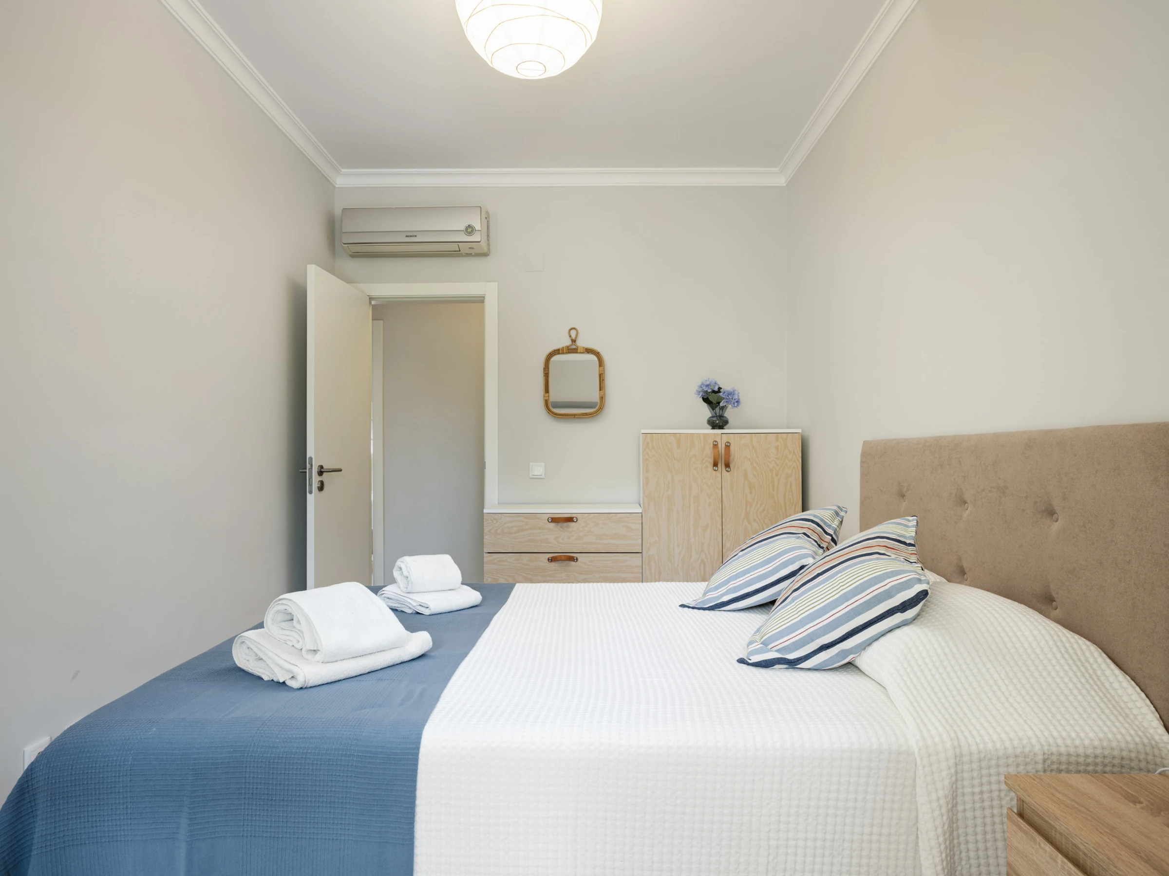 El apartamento cuenta con 3 habitaciones cómodas, con 2 camas de matrimonio y 2 camas individuales, garantizando un descanso tranquilo para todos los huéspedes. Dos cuartos de baño con ducha facilitan la rutina diaria y proporcionan privacidad.