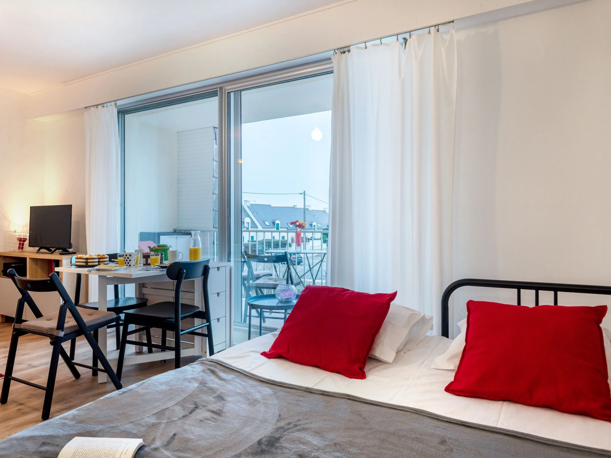 Residencia "Trouz Ar Mor". En las afueras de la localidad, a 1.6 km del centro, a 50 m del mar, a 50 m de la playa. Aparcamiento. Tienda, tienda de comestibles, restaurante, bar 700 m, panadería 1 km, café 1 km, parada autobús 400 m, playa de arena "Grande Plage de Quiberon" 1 km. Campo de golf (9 hoyos) 4.7 km, escuela de vela 3 km, tenis 1.5 km, pista de tenis cubierta 2 km, centro ecuestre 4 km. Atracciones en los alrededores: Carnac 18 km, Auray 28 km, Vannes 46 km, Côte sauvage 10 m, Belle ile en mer. La entrega de llaves se realiza por la agencia en Quiberon, 2 km.