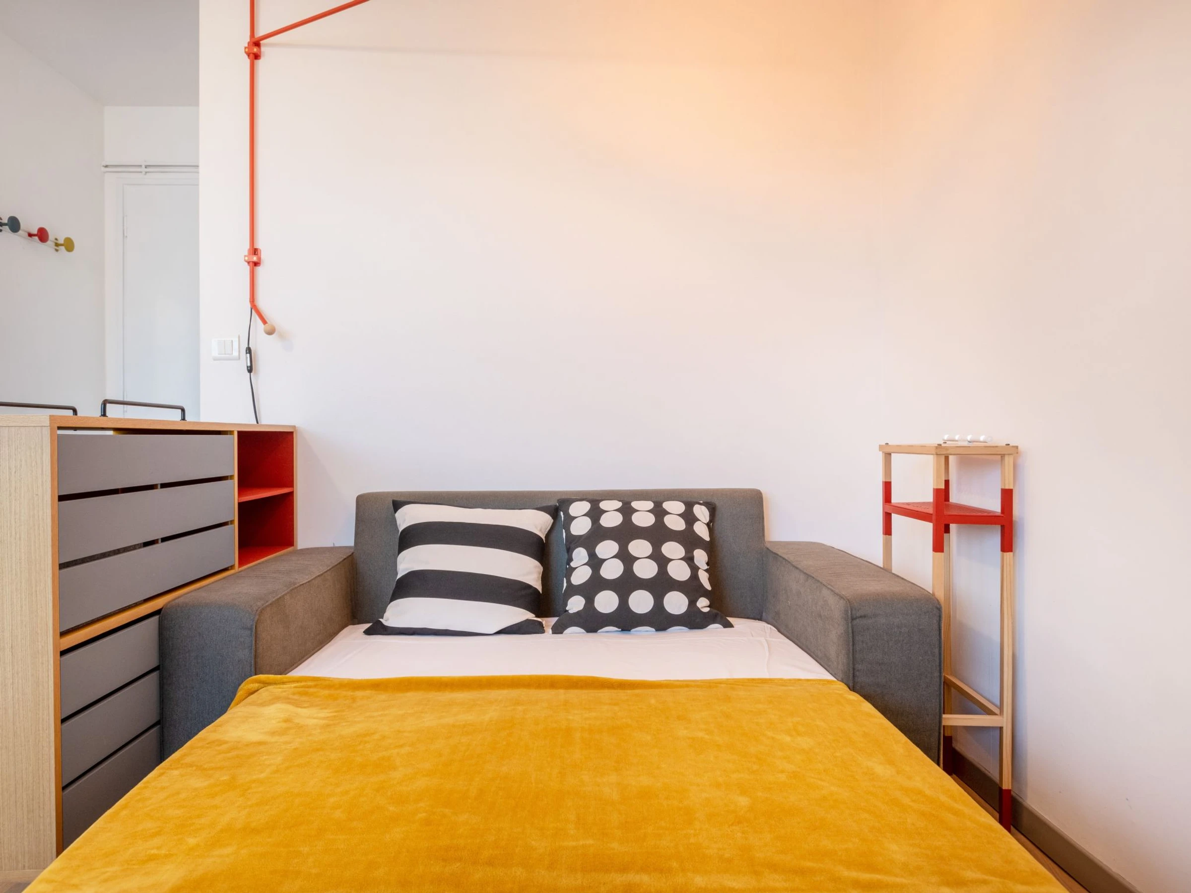 Estudio 30 m2 en el 2° piso. Vivienda adecuada para 2 adultos + 1 niño. Con mobiliario confortable: salón-comedor con 1 sofá-cama (120 cm, 190 cm de longitud), 1 cama-nido (2 pers. 2 x 80 cm, 190 cm de longitud), TV (pantalla plana). Salida a la terraza. Cocina (horno, 2 placas de vitrocerámica, hervidor de agua eléctrico, cafetera eléctrica). Ducha/WC. Calefacción eléctrica. Terraza pequeña 7 m2, orientación sur. El alojamiento dispone de: Internet (Wifi, gratis). Plaza de aparcamiento n. 208. A tener en cuenta: 1 mascota pequeña / perro. Detector de humo. Oferta de un particular según el art. 155, IV del CGI.