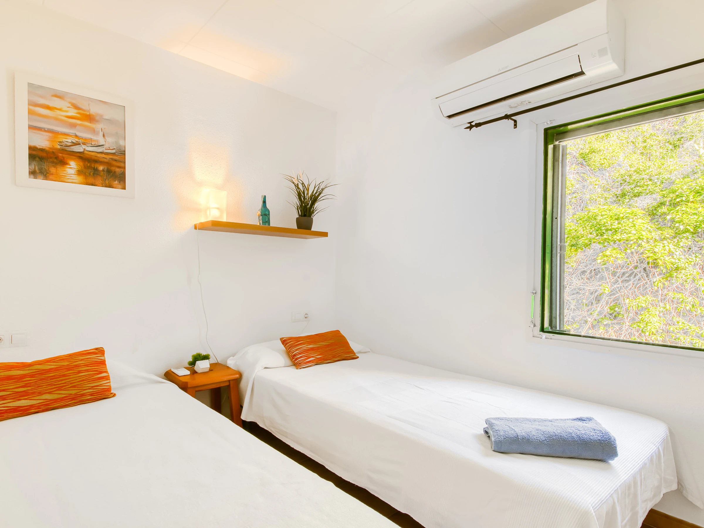 Consta de dos habitaciones, una con camas de matrimonio y un baño con ducha y lavadora.