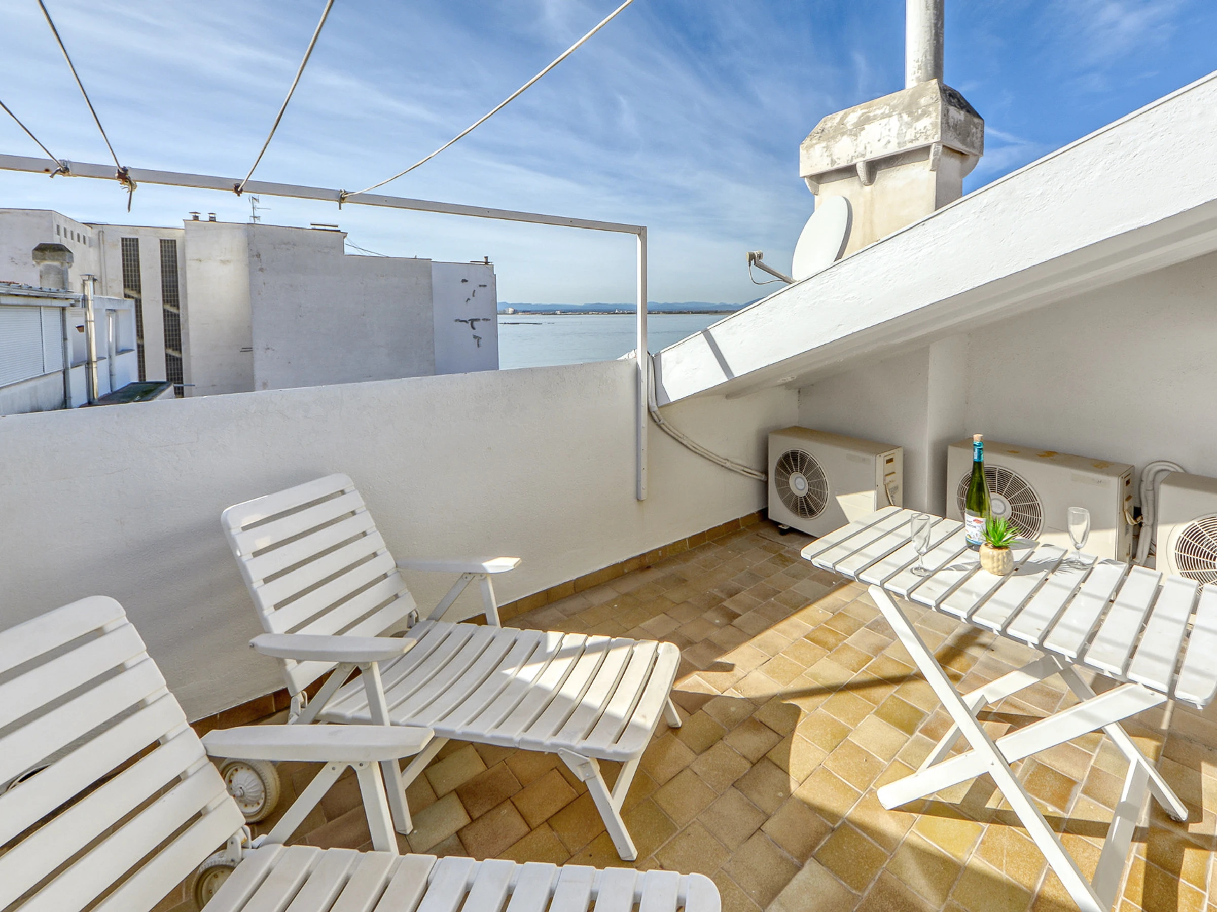 El exclusivo ático en Roses es una propiedad excepcional con 3 dormitorios y capacidad para 6/7 personas, y ofrece vistas únicas al mar, brindándote la oportunidad de disfrutar de tus comidas o tomar algo en la terraza mientras disfrutas del entorno. El alojamiento consta de 120 m² de espacio habitable, además de una terraza de 6 m² en la primera planta y otra de 10 m² en la segunda planta.